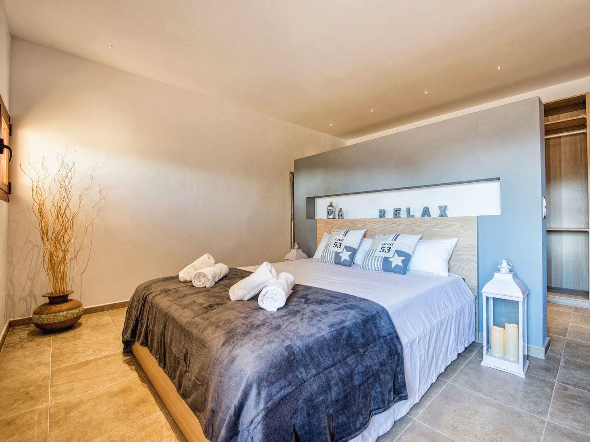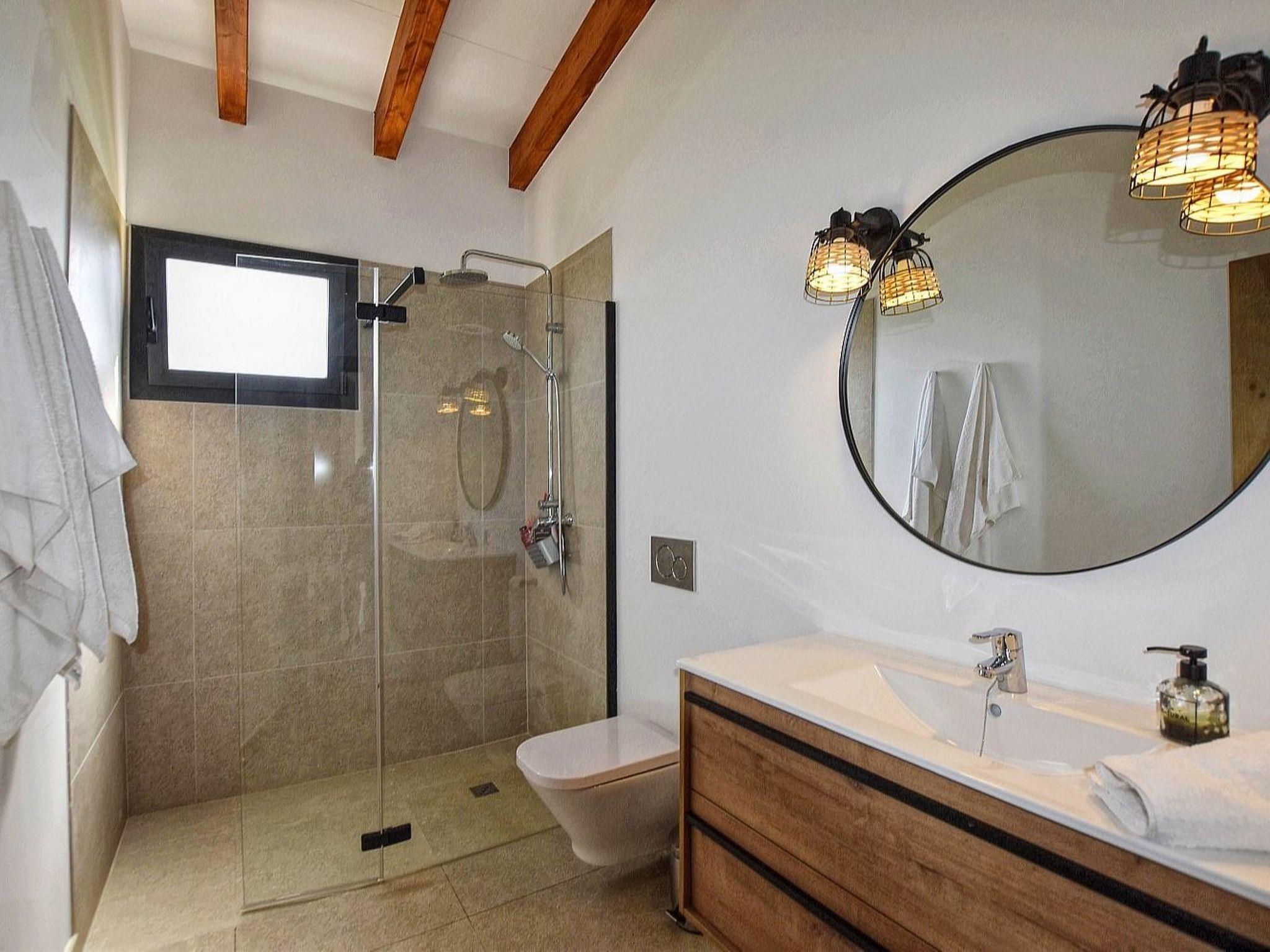 The finca is especially suitable for families and groups and consists of a main house (220 m²) with four bedrooms and four bathrooms for a total of 8 persons and an adjacent guest house (80 m²) for another 4 guests with two more bedrooms and the fifth bathroom. All bedrooms are air-conditioned, five of them have double beds and one of the bedrooms has two single beds.