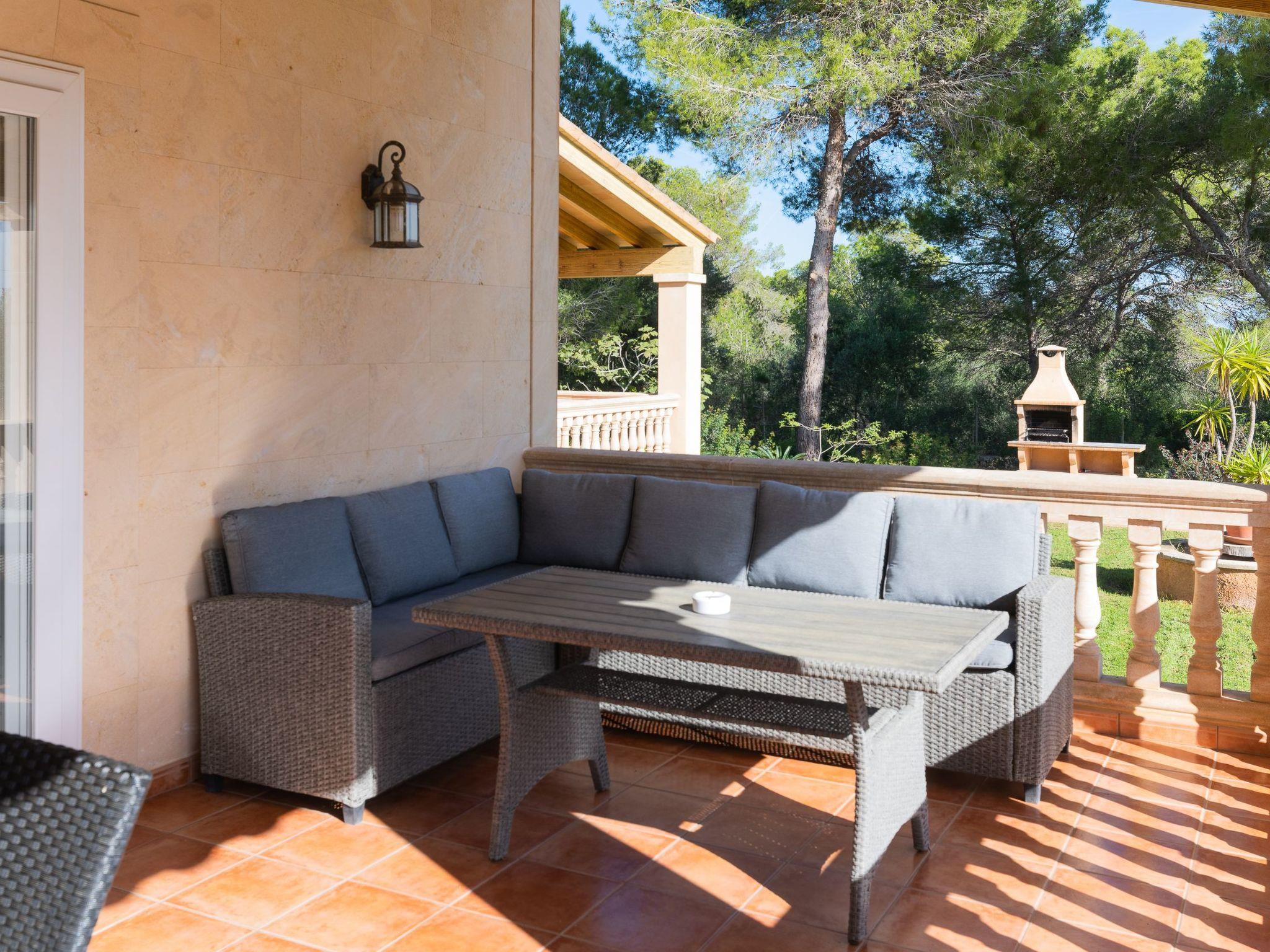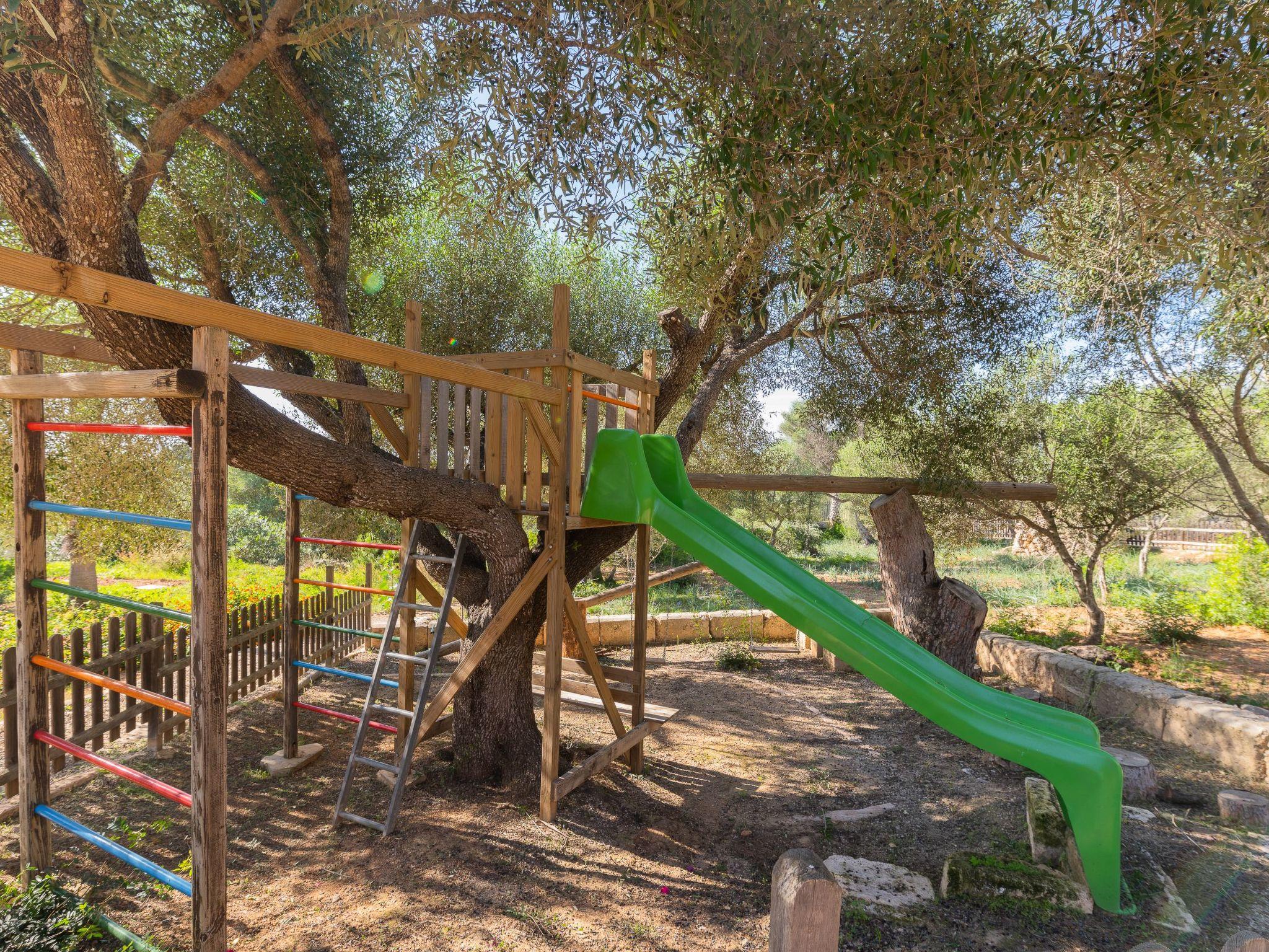 The inviting veranda with another dining table and chill-out area overlooks the pool and Calas de Mallorca with the coast in the background. There is a walled-in barbecue for cosy barbecue evenings. The highlight for the little ones is the great private children's playground with swing, slide and play area.