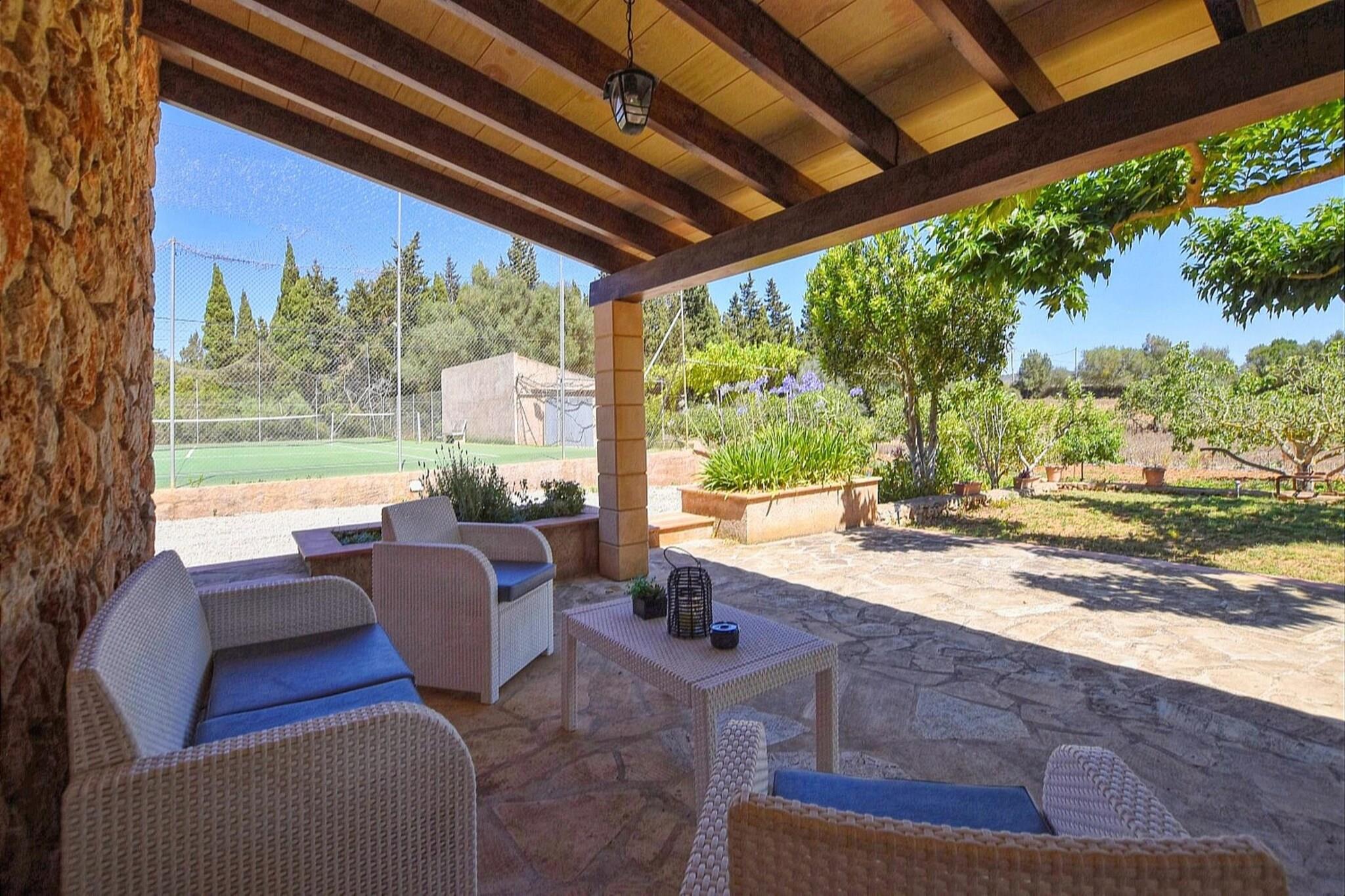 Velkommen til dit ideelle feriested i Manacor, hvor komfort og afslapning venter i dette pragtfulde to-etagers hjem. Når du træder ind på første sal, bliver du mødt af et rummeligt åbent køkken, fuldt udstyret med moderne hårde hvidevarer og klar til kulinariske eventyr. Tilstødende venter det indbydende opholds- og spiseområde med et tv, et spisebord til fælles måltider og et hyggeligt opholdsområde. Aircondition og opvarmning sikrer komfort året rundt, uanset om du søger skygge fra solen eller varme under køligere aftener. Gå op på anden sal for at opdage komfortable soveværelser, som er gennemtænkt designet til fredelige nætter og foryngende søvn. Beliggende midt i fredfyldte omgivelser tilbyder denne ejendom en perfekt blanding af moderne bekvemmeligheder og ro. Den smukke havstrand ligger kun 21 km væk, hvilket gør den til en bekvem tilflugtssted for både solsøgende og vandentusiaster. Mens afsondret nok til fred og privatliv, er dette feriehus bekvemt placeret kun 5 km fra restauranter og shopping, så du nemt kan udforske det lokale køkken og forkæle dig med detailterapi. Træd udenfor ind i din private oase, hvor afslapning og rekreation mødes problemfrit. Nyd en forfriskende dukkert i den funklende private swimmingpool, perfekt til at køle af under middelhavssolen. For sportsentusiaster venter en privat tennisbane, som giver mulighed for venskabskampe og aktive forfølgelser. De udendørs faciliteter fortsætter med at imponere med en terrassevarmer, ideel til køligere aftener tilbragt med stjernekiggeri eller til intime samtaler. En grillplads inviterer dig til at nyde grillede lækkerier med dine kære, mens et solarium tilbyder et roligt sted at solbade og nyde de varme spanske stråler. Flere siddeområder i hele udendørsrummet sikrer, at alle kan finde deres yndlingssted at slappe af.