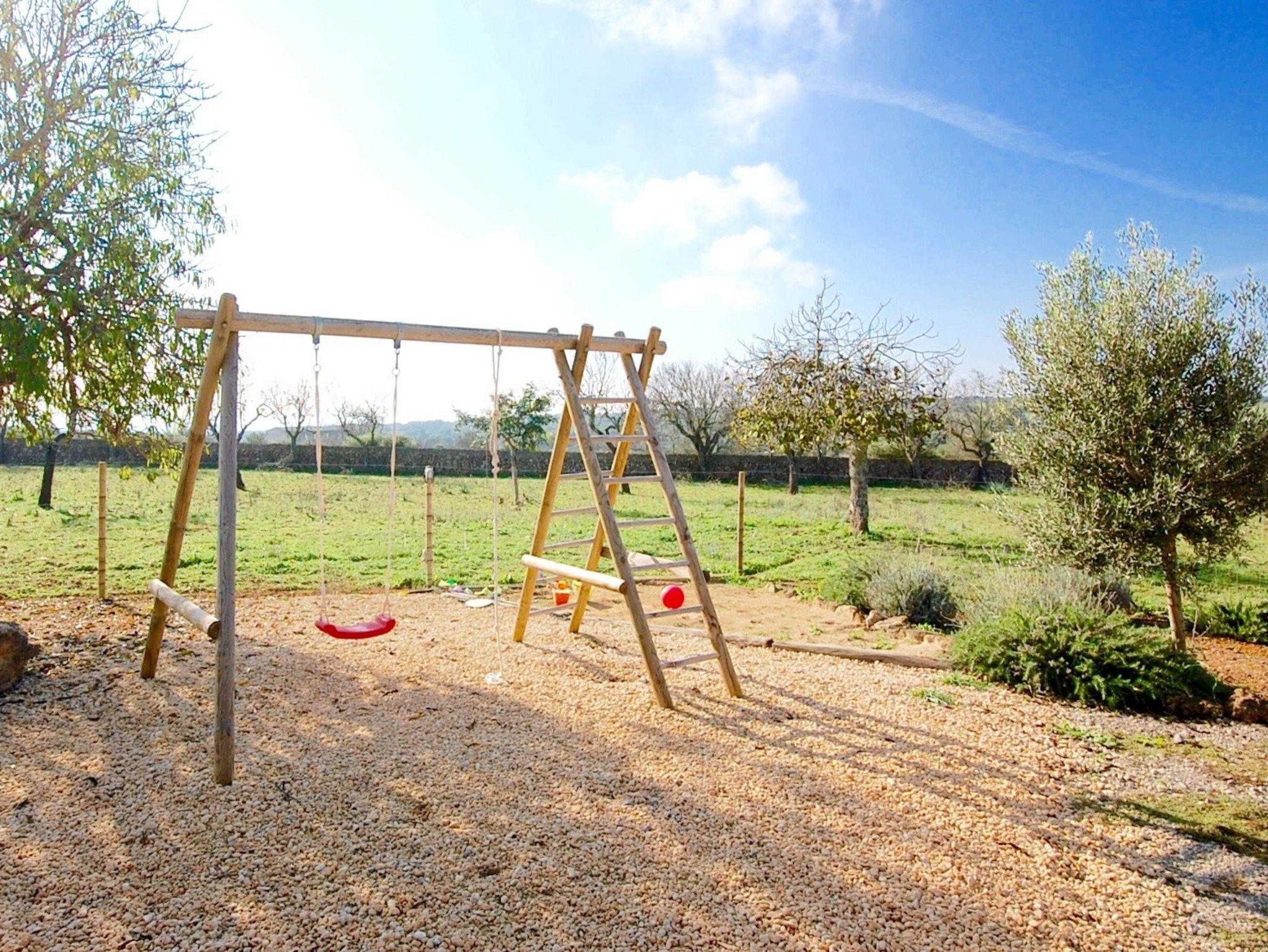 Die Finca verströmt mit ihren Natursteinwänden einen einzigartigen mallorquinischen Charme und vermittelt das Gefühl von Heimat und Geborgenheit. Der Außenbereich lädt nicht nur zum Entspannen und Genießen der wunderschönen Umgebung ein, sondern bietet auch einen kleinen, privaten Spielplatz, auf dem die Kinder sich austoben können. Ein perfekter Ort für unvergessliche Momente inmitten der Natur Mallorcas.