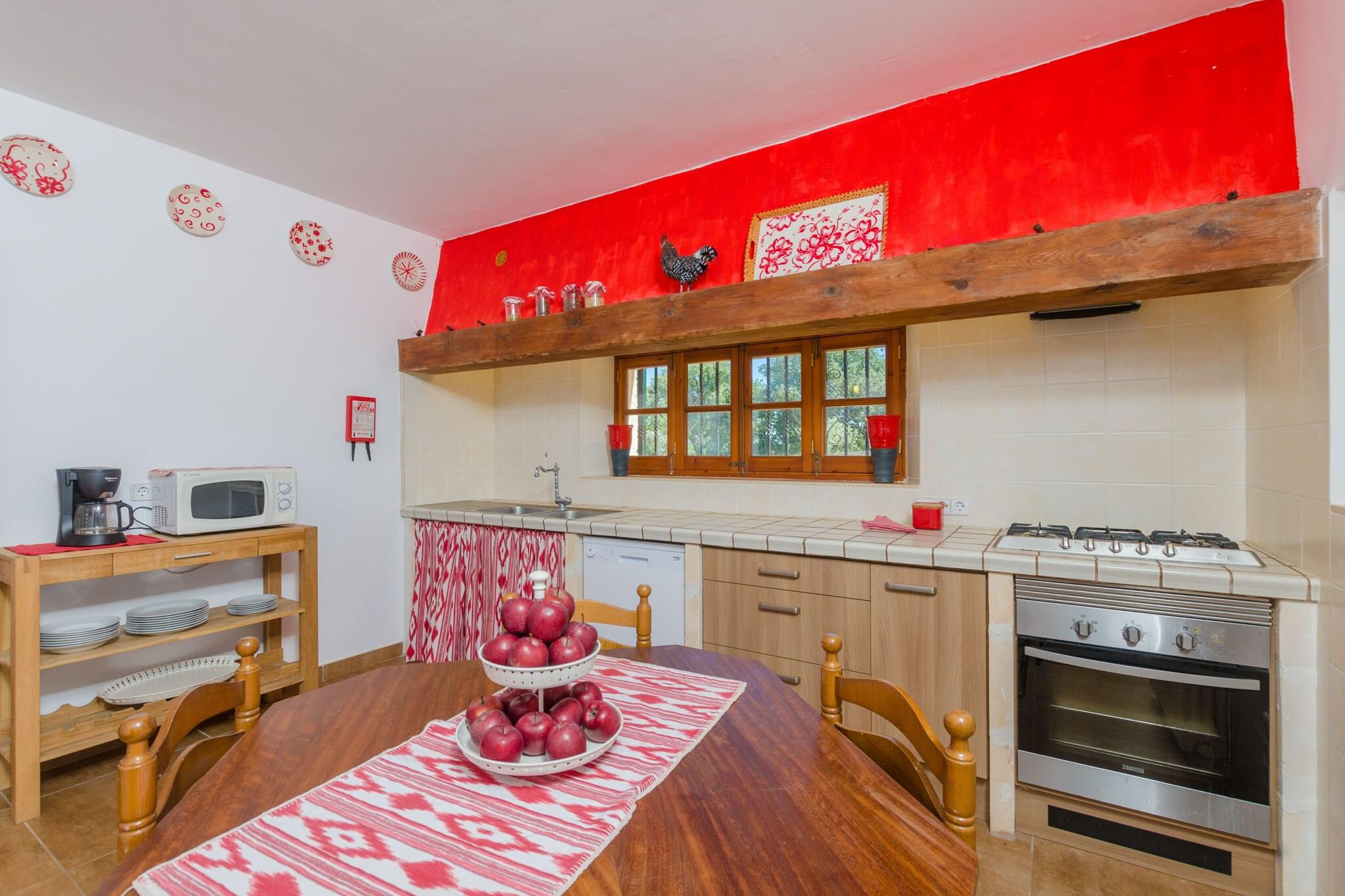 De schoonheid en privacy van dit landgoed zijn absoluut. De tuin ziet er zeker uit als iets uit een tijdschrift met een fascinerende stenen constructie, groene gazons en uitzicht op het landschap en de bergen rondom een ??prachtig chloorbad van 7 x 3,5 m met een diepte van 1 tot 1,45 m. Daarnaast nodigen een eenvoudige pergola met 8 ligstoelen en een gemeubileerde veranda om te eten uit om te genieten van de warme temperaturen. Een tweede terras, bedekt met riet, heeft een tafel met twee kanten, ideaal om vroeg te ontbijten of gewoon in alle rust een boek te lezen. Bij binnenkomst vindt u een grote woonkamer, voorzien van satelliettelevisie en een decoratieve houtkachel, waar u heerlijk kunt ontspannen en tot rust kunt komen na een lange dag het eiland verkennen. Vervolgens begeeft u zich naar de aparte eetkamer en de keuken, uitgerust met een gasfornuis en een tafel met stoelen, ook om aan te eten of te genieten van een aperitief. De wasruimte beschikt over een strijkijzer, een wasmachine en een strijkplank. Op dezelfde verdieping hebben ze een badkamer met douche en een slaapkamer met twee eenpersoonsbedden, een kledingkast en ruimte voor een kinderbedje/kinderstoel. Als u de trap opgaat, komt u bij nog een badkamer met ligbad en nog drie slaapkamers, waarvan twee met een kast en de andere met een kleedkamer. Eén heeft twee eenpersoonsbedden, de andere met een tweepersoonsbed en de laatste met een tweepersoonsbed, een en-suite badkamer met douche en directe toegang tot een zonnig gemeubileerd terras. Gelegen op 3 km van Manacor, is het een werkelijk bevoorrechte plek. Dit kleine stadje staat bekend om zijn parelfabriek en talrijke hoogwaardige meubelwinkels. In het centrum kunt u boodschappen doen en onze Mallorcaanse gerechten uitproberen in de uitstekende restaurants. Als u zin ??heeft om te wandelen en lange wandelingen te maken, heeft u het charmante pad Vía Verda, dat veel wordt bewandeld door wandelaars en fietsers. Wat de stranden betreft, de dichtstbijzijnde is S'Illot, op 20,3 km afstand, hoewel we u aanraden de paradijselijke baaien van Cala Magrana, Cala Romántica of Cala Mendia te bezoeken. Voor eventuele extra kosten kunt u contact opnemen met de adverteerder. Wij accepteren geen huisdieren. Het vieren van evenementen is niet toegestaan. Er is buiten parkeergelegenheid voor 4 auto's. Afstanden Strand: 20,3 km - S'illot Luchthaven: 48,1 km - Son Sant Joan Golfbaan: 17,5 km - Pula Golf Stad: 3 km - Manacor Treinstation: 3 km - Manacor Bushalte: 3 km - Manacor Veerboot: 43,7 km - Puerto de Alcúdia Ziekenhuis: 5 km - Manacor-ziekenhuis Toeristenvergunning: ETV/3375
