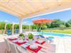Stue, Køkken(komfur, kaffemaskine), soveværelse(2x enkeltseng), soveværelse(enkeltseng, enkeltseng), soveværelse(dobbeltseng), soveværelse(dobbeltseng), badeværelse, badeværelse, badeværelse, ovn, mikrobølgeovn, opvaskemaskine , køle-fryseskab, badekar, bruser, bruser, håndvask, håndvask, håndvask, toilet, toilet, toilet, bidet, bidet, have, havemøbler, 8x solstole, grill, Parasol, swimmingpool, barneseng, barnestol