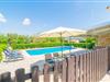 Stue, spisestue, Køkken(komfur, ovn, mikrobølgeovn), soveværelse(2x enkeltseng), soveværelse(dobbeltseng), soveværelse(dobbeltseng), badeværelse, badeværelse, kaffemaskine, opvaskemaskine , køle-fryseskab, badekar, bruser, håndvask, håndvask, toilet, toilet, bidet, klimaanlæg, klimaanlæg, klimaanlæg, have, havemøbler, 4x solstole, grill, 2x Parasol, swimmingpool, barneseng, barnestol
