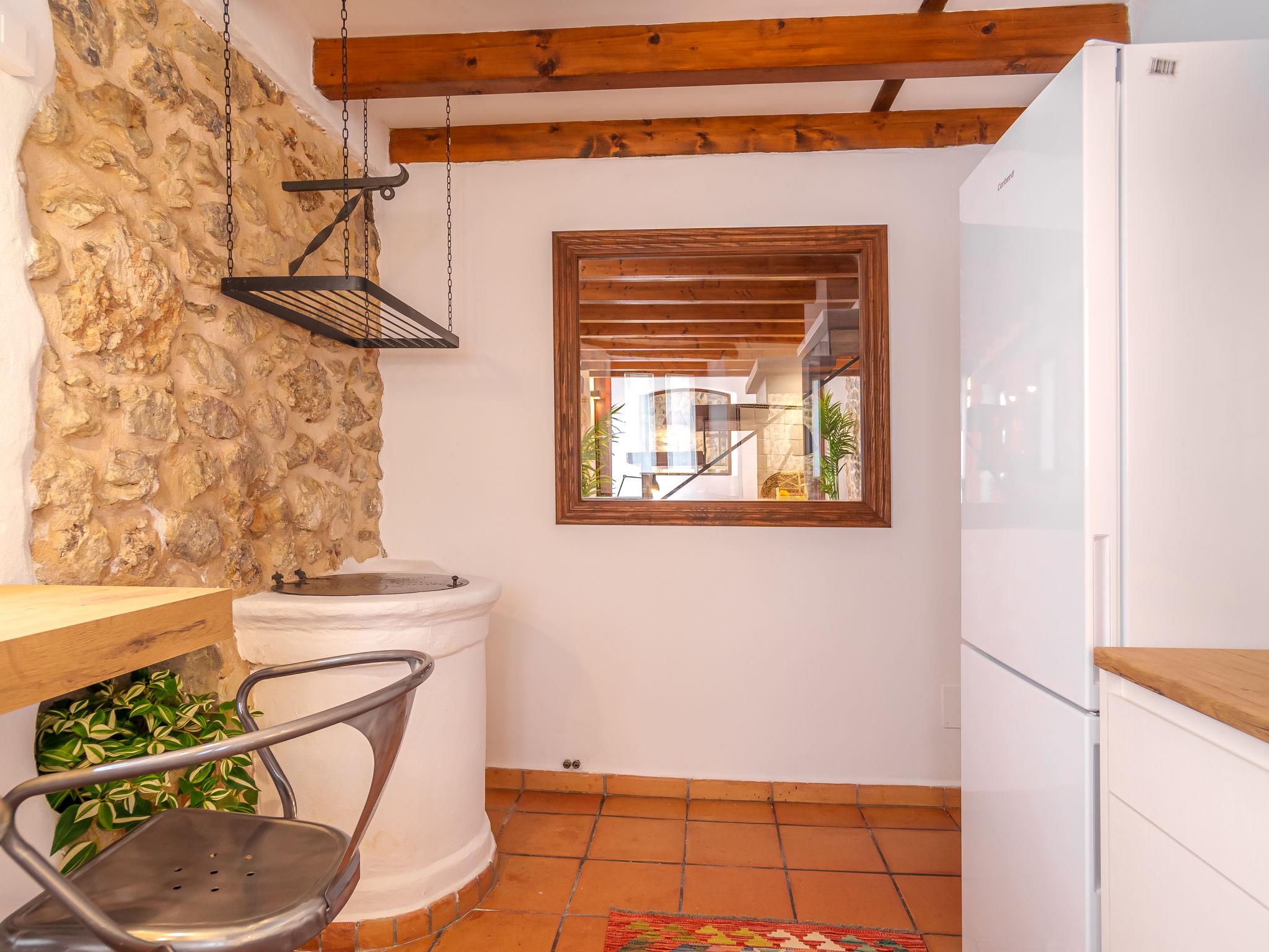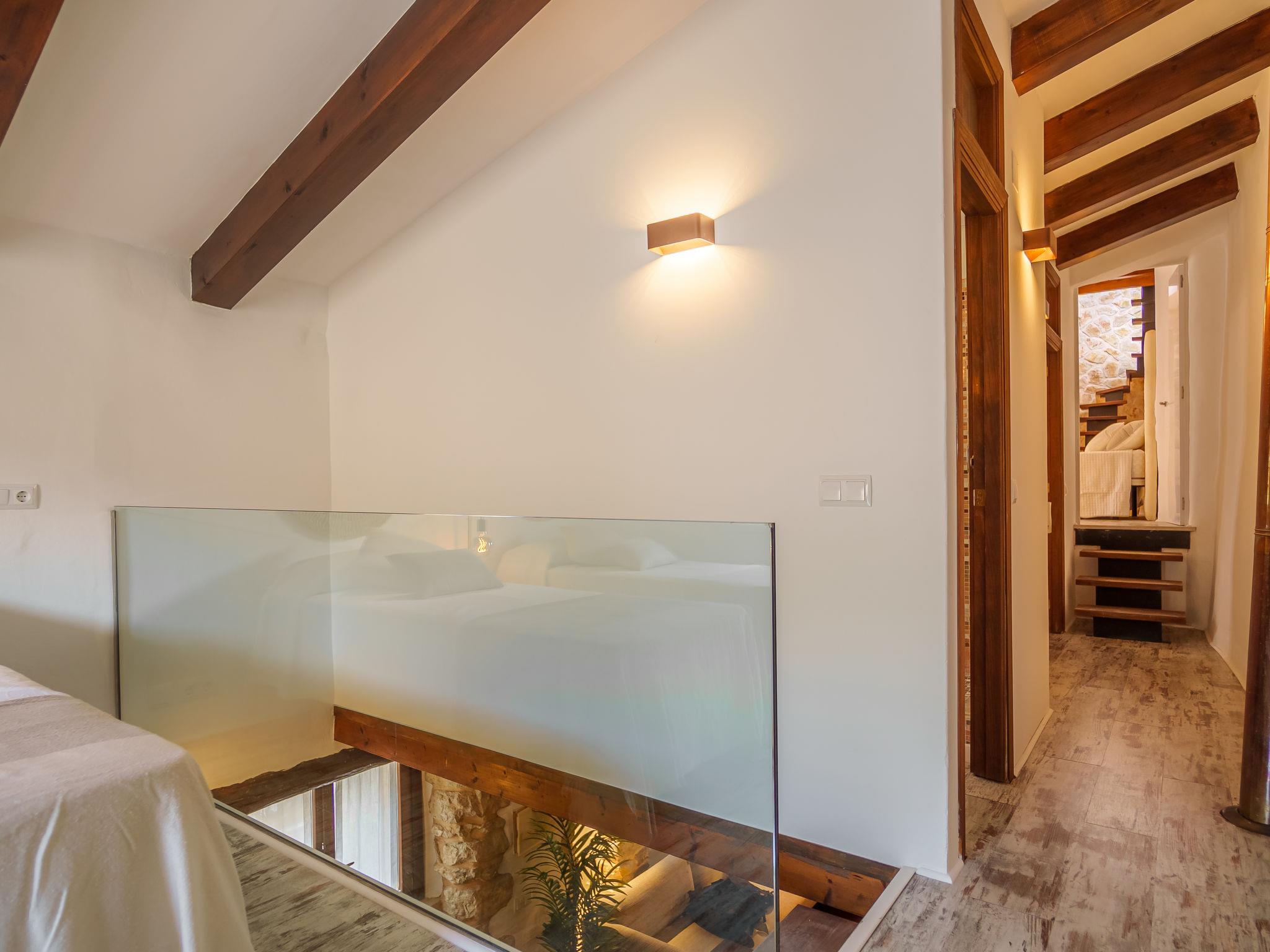 "Biniarroi Charm & Quality", 5-room house 110 m2 on 2 levels. Object suitable for 5 adults. Fully renovated, very comfortable and beautiful furnishings: dining room with panoramic window with dining table. Large living room with panoramic window with open-hearth fireplace (only for decoration), digital TV, flat screen, air conditioning and forced-air heating. Kitchen (oven, dishwasher, 3 ceramic glass hob hotplates, toaster, kettle, microwave, freezer, electric coffee machine). Sep. WC. Upper floor: 1 large double bedroom with 1 french bed (150 cm, length 200 cm), shower/WC, air conditioning and forced-air heating. Exit to the terrace. 1 room with 1 bed (90 cm, length 200 cm), fan. 1 open double bedroom with panoramic window with 2 beds (100 cm, length 200 cm), air conditioning and forced-air heating. Shower/WC. Small terrace. Facilities: washing machine, dryer, iron, children's high chair, baby cot for up to 2 year olds, hair dryer. Internet (WiFi, free). Please note: non-smoking house. Fire extinguisher. ETV9344 // Reg. Nr.: ESFCTU00000702200013809800000000000000000000ETV/93448