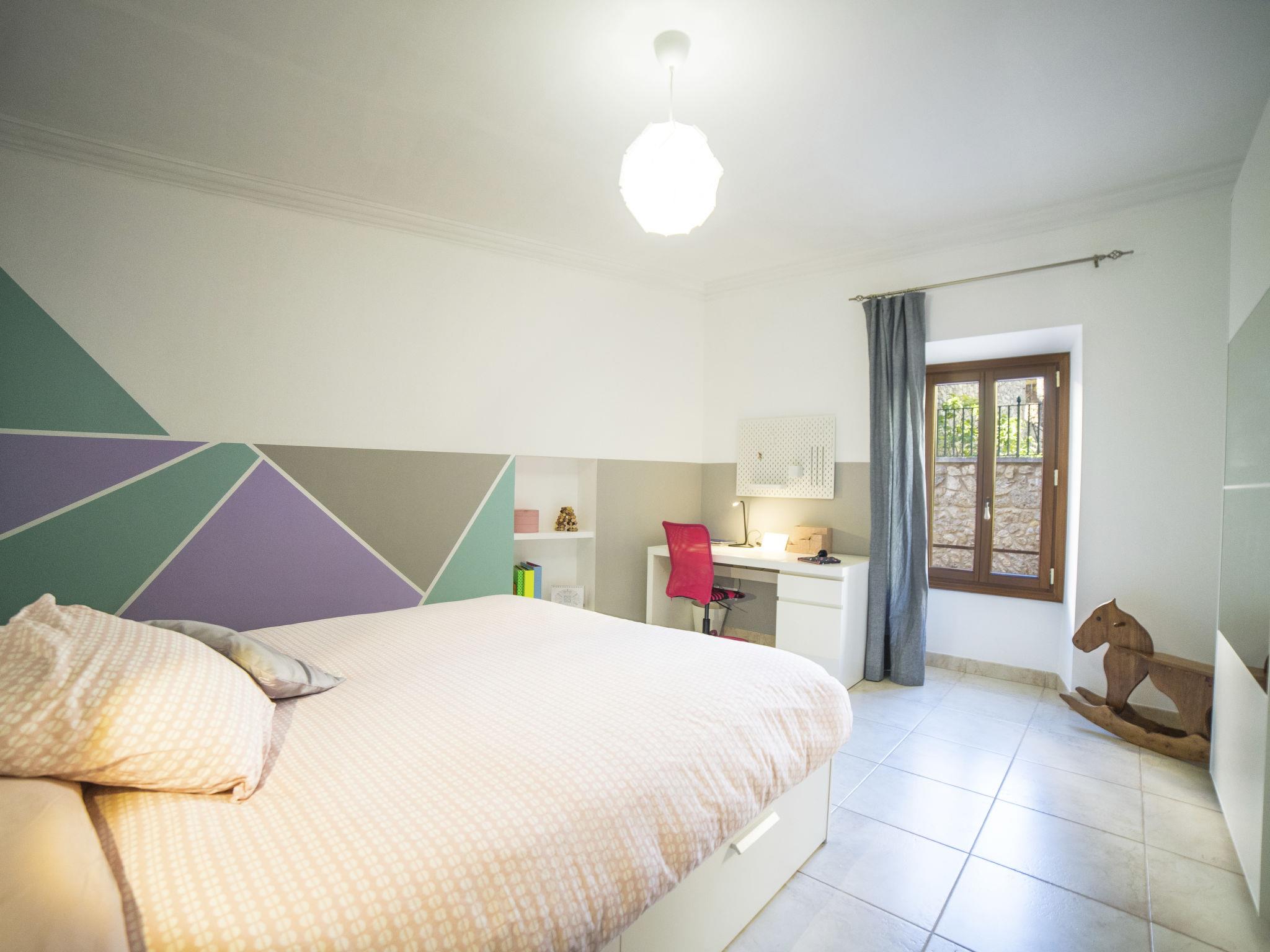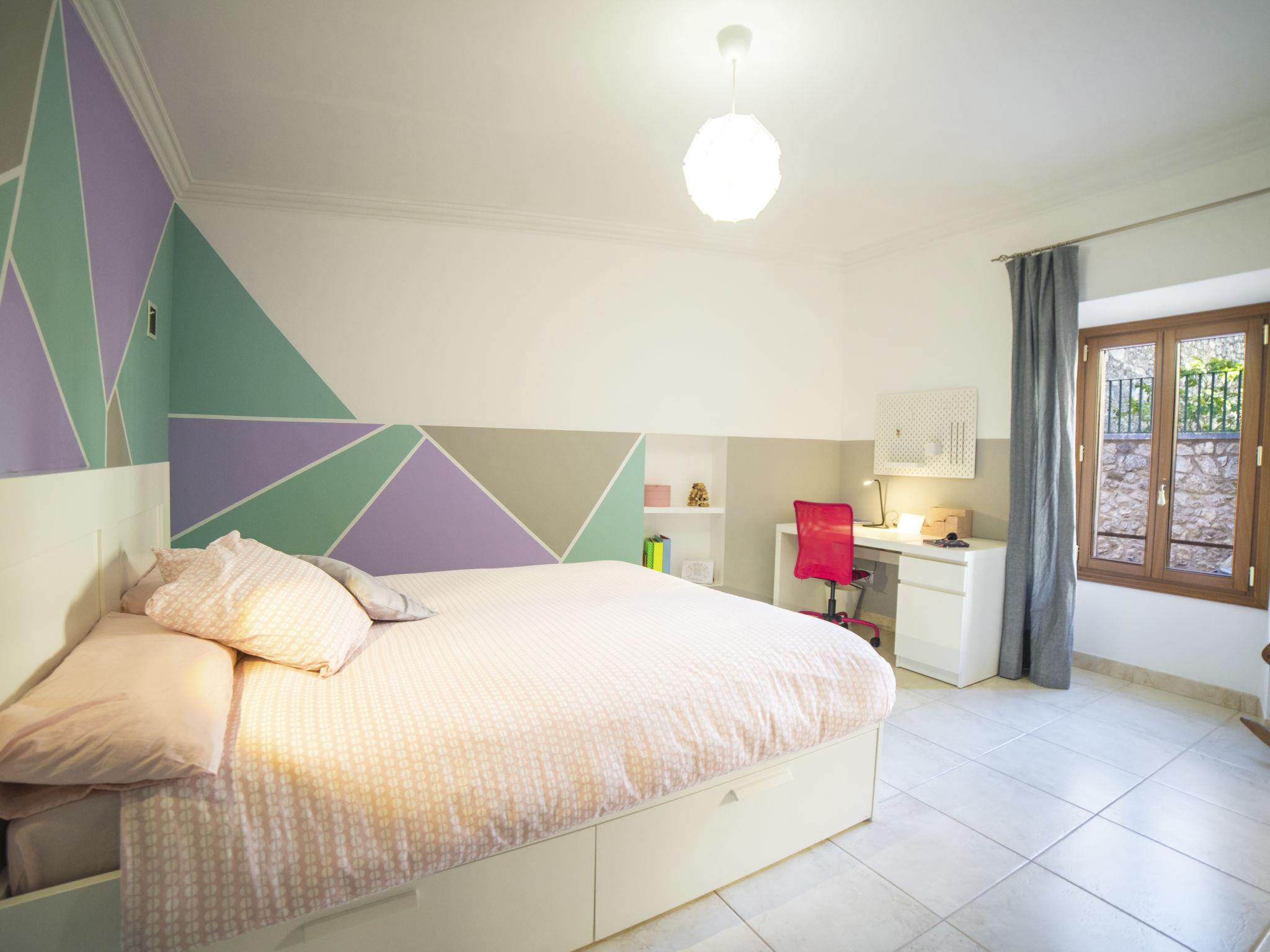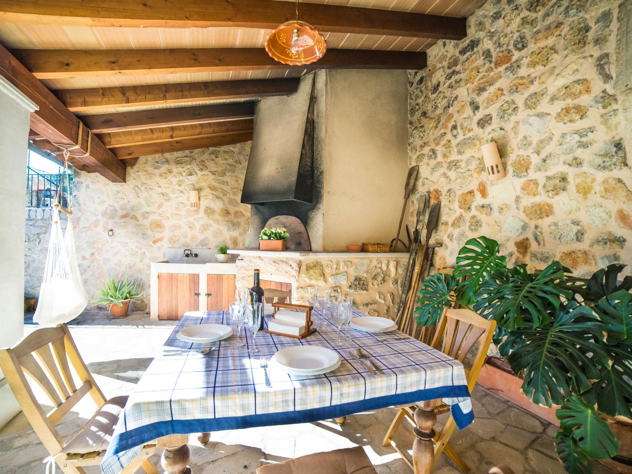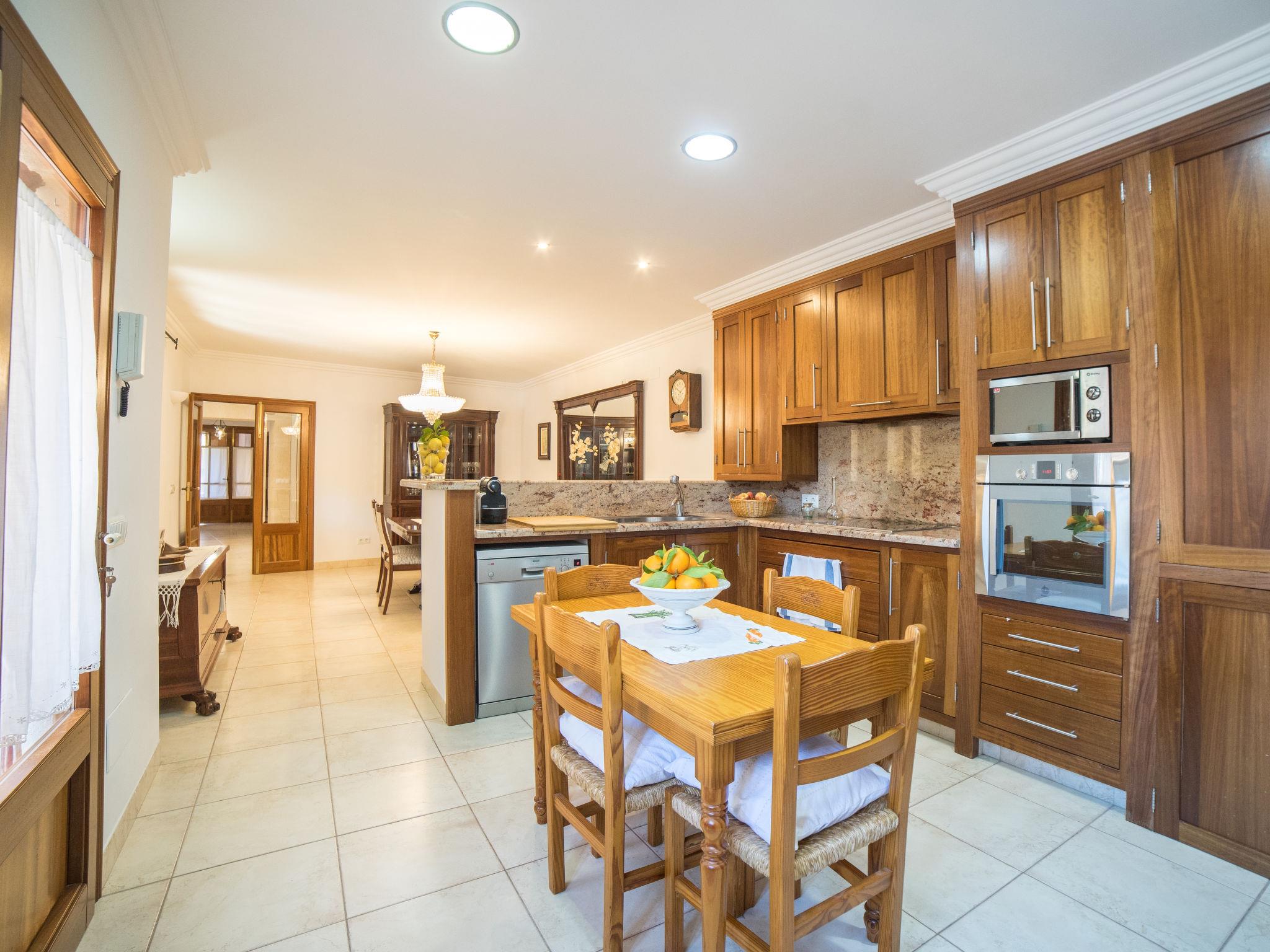 Mancor de la Vall: Very large, beautiful house "Son Trobat", 2 storeys, renovated. In a central, quiet position, 900 m from the edge of the forest, 30 km from the sea. Private: outdoor shower, table tennis, arbour, pergola, terrace, garden furniture, barbecue. In the house: internet access, WiFi, table tennis, storage room for bicycles, air conditioning, burglar alarm system, washing machine, tumble dryer. Public car park, public parking on the road. Grocery 150 m, supermarket 300 m, shopping centre 20 km, restaurant, bar 50 m, bakery 100 m, pub garden 50 m, bus stop 300 m, sandy beach "Port Alcudia" 30 km. Sports harbour 32 km, golf course (18 hole) 30 km, tennis 500 m, riding stable 2.5 km, walking paths from the house, cycle lane 900 m. Nearby attractions: Monasterio de Santa Llucia 1.5 km, Monasterio de Lluc. Hiking paths: Puig de Santa Llucia - Biniarroi, Puig de Massanella, Lluc - Serra de Tramuntana. Please note: suitable for families, suitable for seniors. Object suitable for 8 adults. Loading and unloading of baggage is possible at the holiday house. Airfield 50 km from the property.