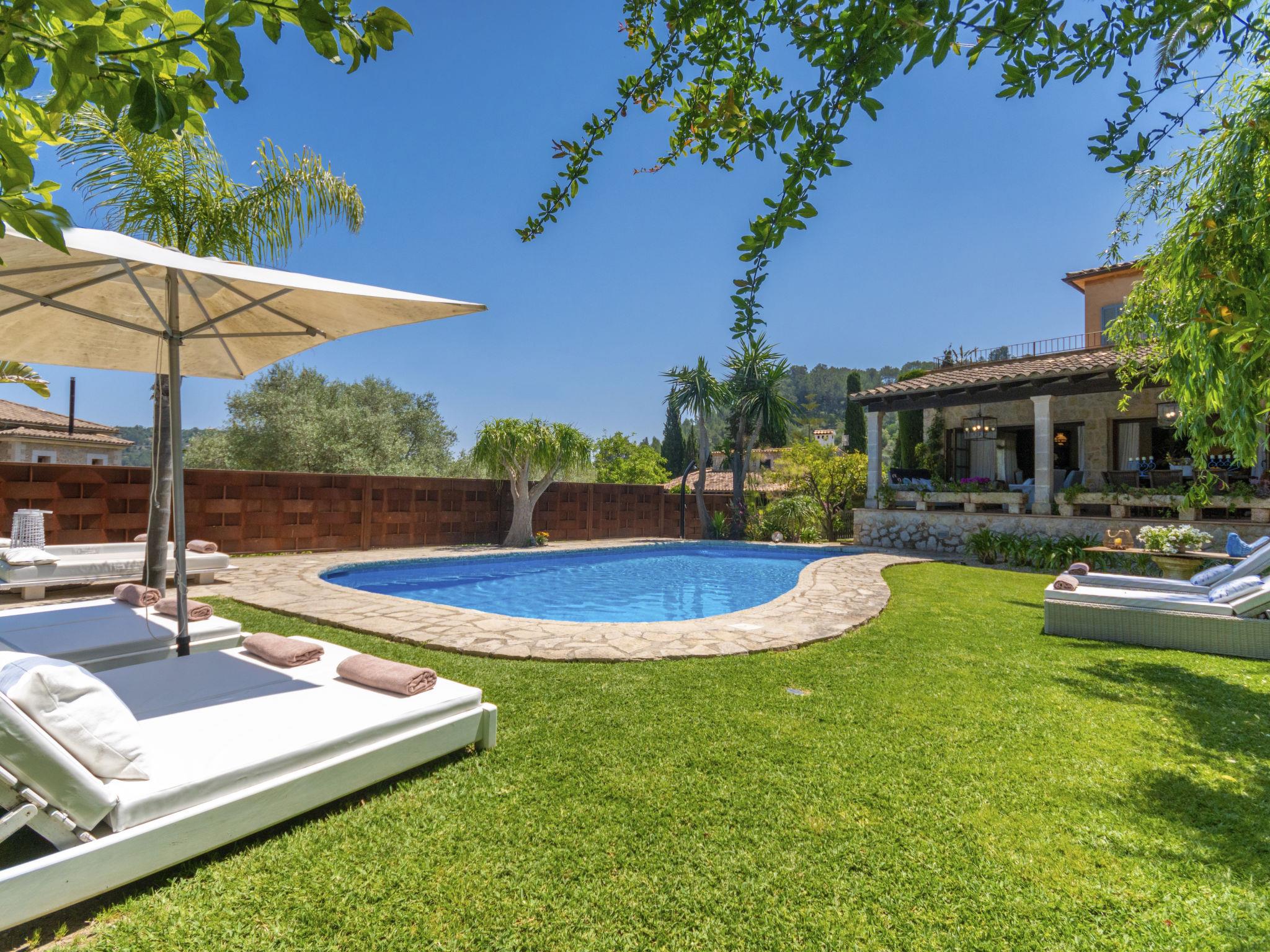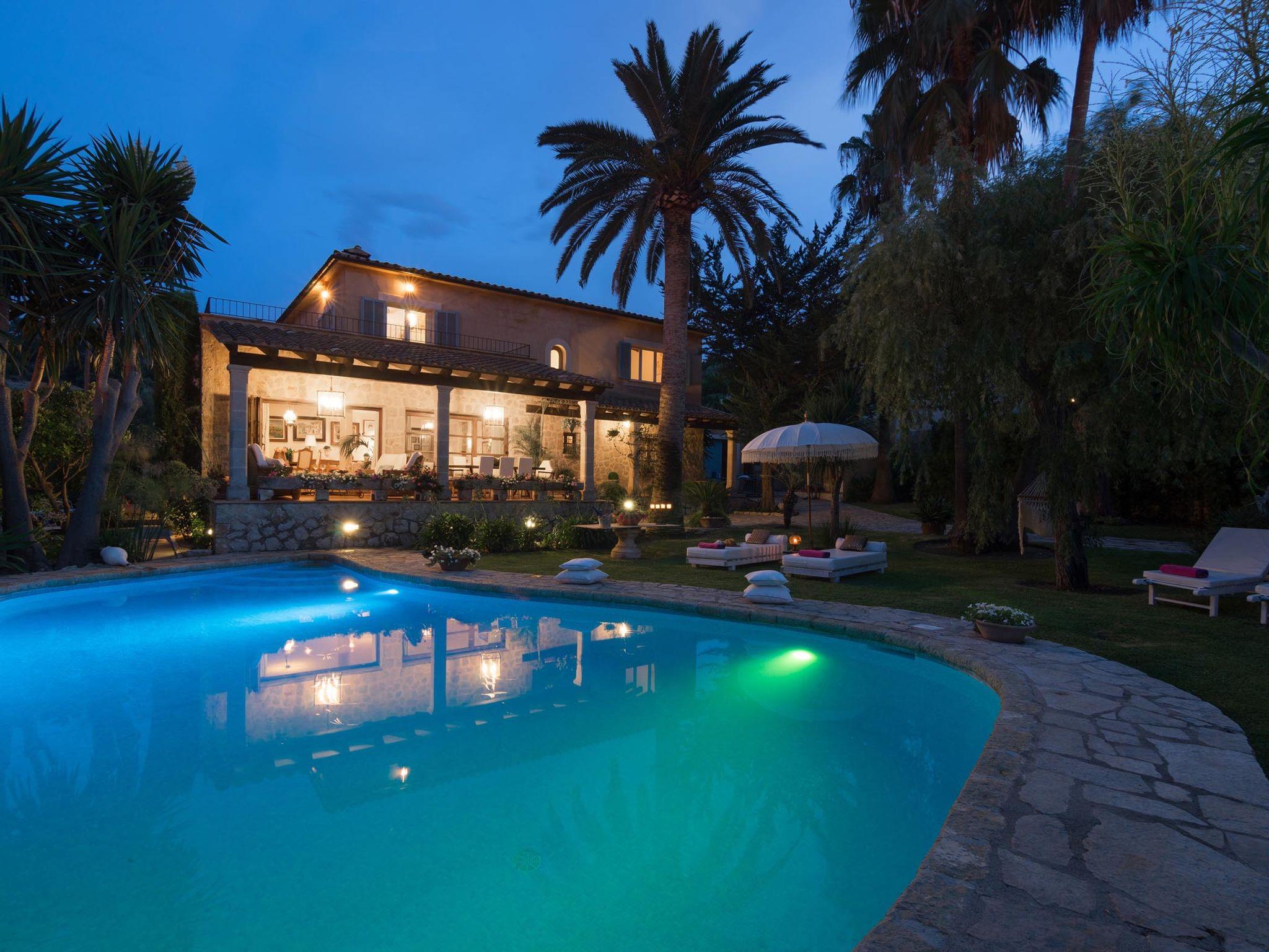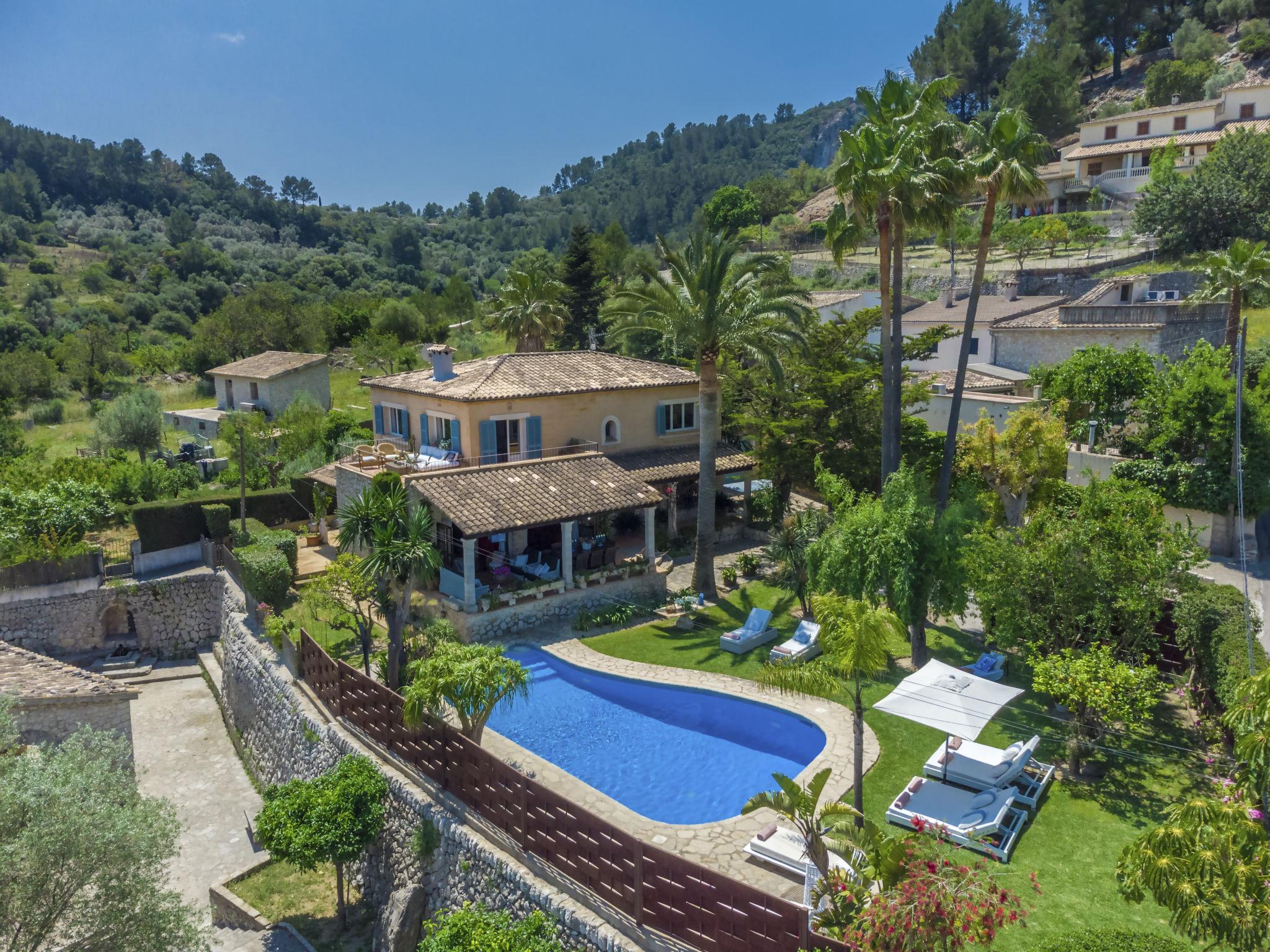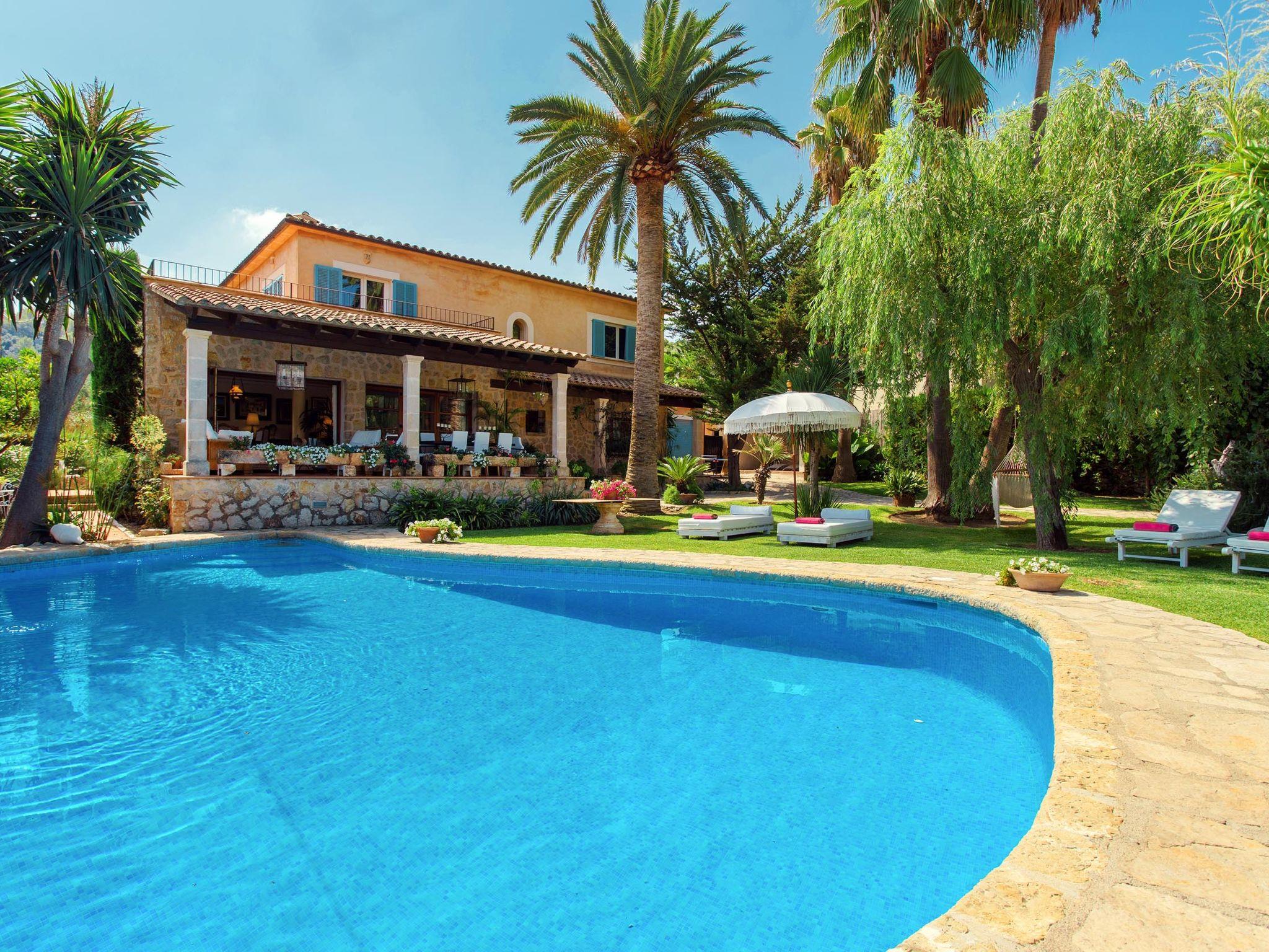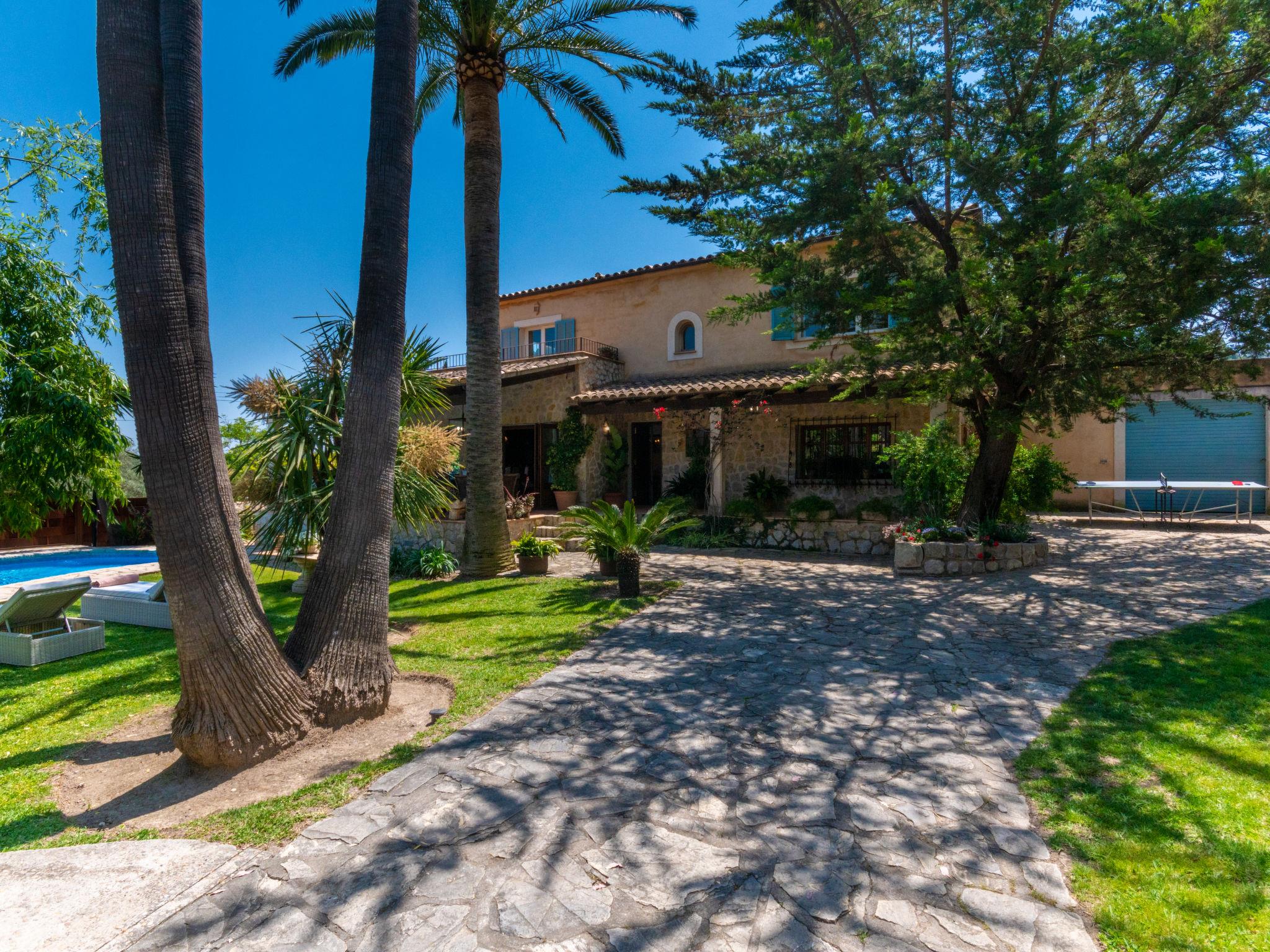 Large, very beautiful, comfortable villa "La Font", 2 storeys. In the resort, 600 m from the centre, in a quiet, sunny position, excellent location: right in the centre but still quiet, 500 m from the edge of the forest, 30 km from the sea, 30 km from the beach. Private: beautiful garden with lawn and flowers, swimming pool angular (9 x 5 m, depth 100 - 180 cm, seasonal availability: 01.Jan. - 31.Dec.). Outdoor shower, table tennis, patio, arbour, pergola, garden furniture, barbecue. In the house: internet access, WiFi, storage room for bicycles, central heating system, air conditioning, washing machine. Parking at the house on the premises. Shop 5 km, grocery 500 m, supermarket 400 m, shopping centre 15 km, restaurant 500 m, bar, bakery 400 m, pub garden 500 m, 5 minute walk to the centre, bus stop 600 m, railway station 5 km, sandy beach 30 km. Sports harbour 30 km, marina 30 km, golf course (18 hole) 30 km, tennis 600 m, walking paths from the house 500 m, cycle lane 500 m. Nearby attractions: Inca, Selva, Caimari, Biniamar, Mallorca Fashion Outlet, Cinemas. 17 km. Hiking paths: Serra de Tramuntana, Lluc. Please note: car recommended. Suitable for families, suitable for seniors. Object suitable for 8 adults groups of teenagers on request only. Airfield 55 km from the property.