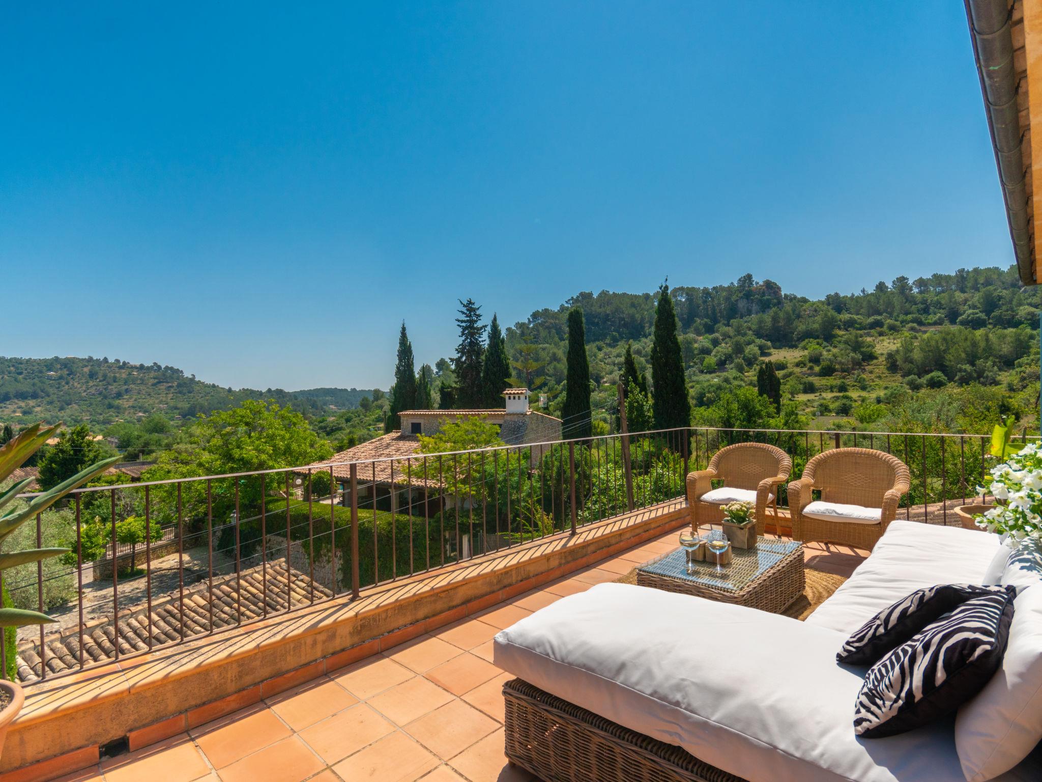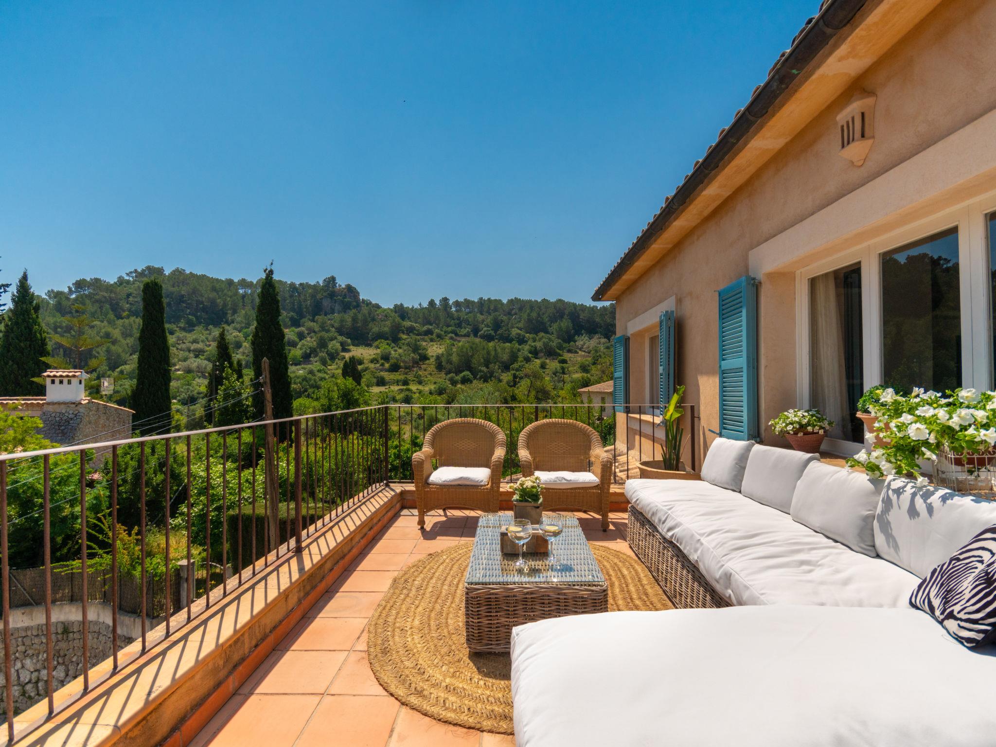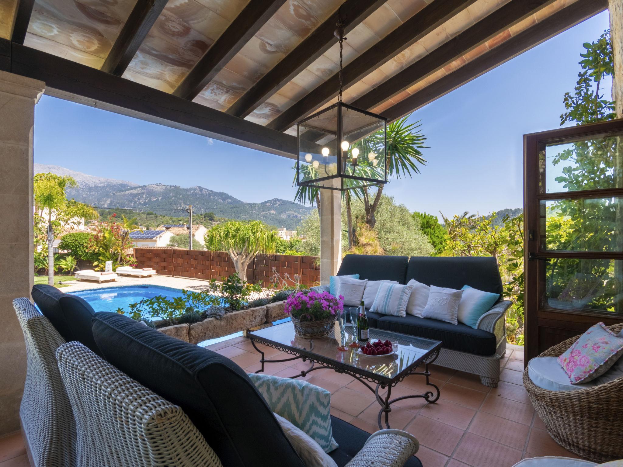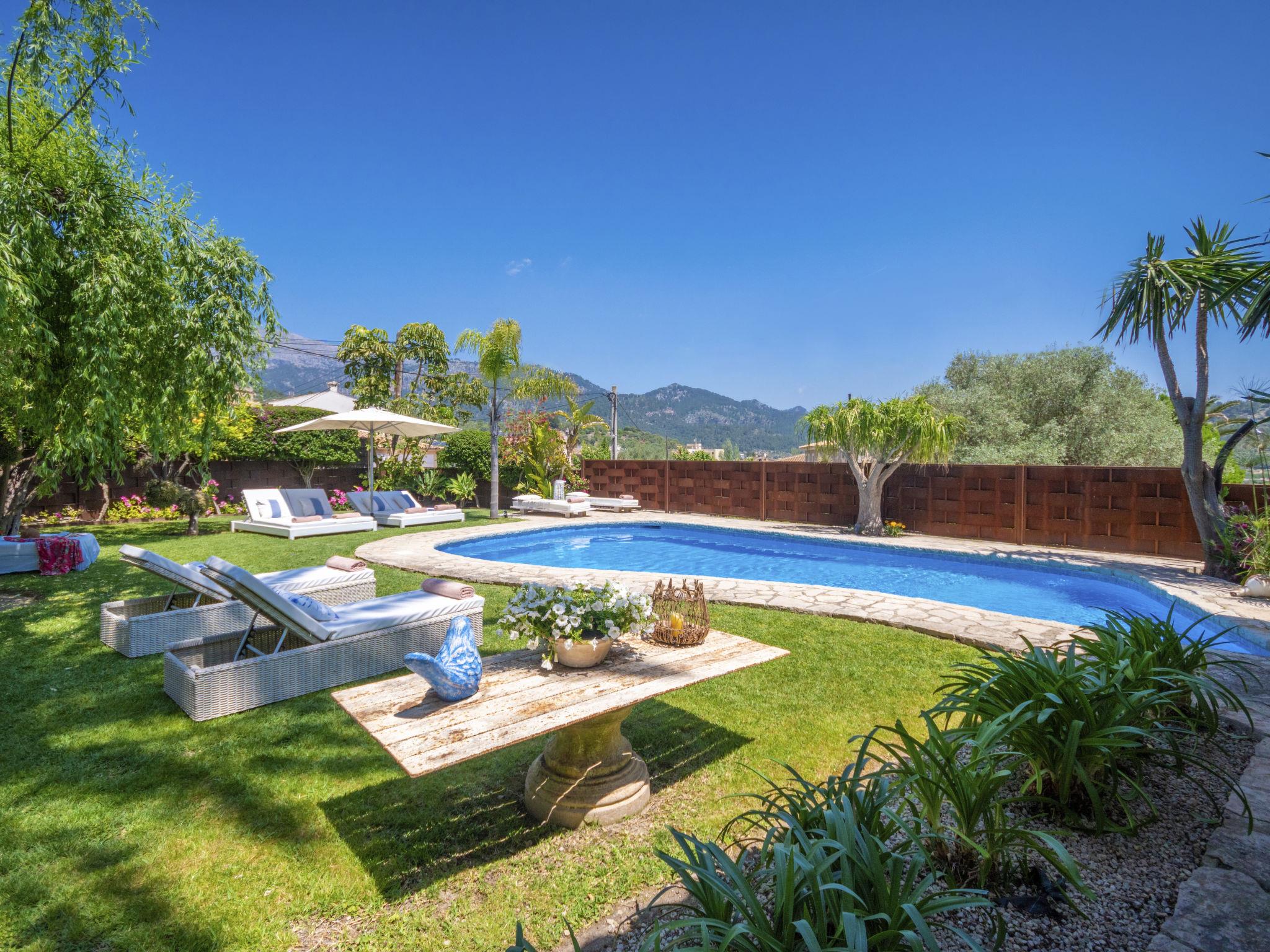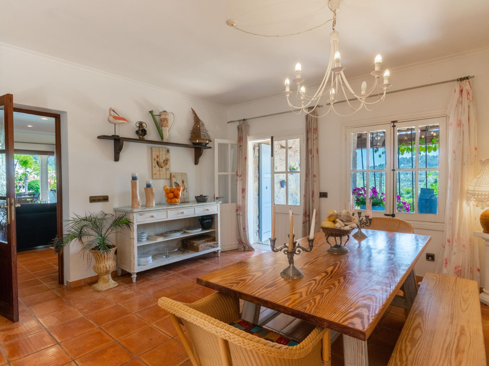 Large, very beautiful, comfortable villa "La Font", 2 storeys. In the resort, 600 m from the centre, in a quiet, sunny position, excellent location: right in the centre but still quiet, 500 m from the edge of the forest, 30 km from the sea, 30 km from the beach. Private: beautiful garden with lawn and flowers, swimming pool angular (9 x 5 m, depth 100 - 180 cm, seasonal availability: 01.Jan. - 31.Dec.). Outdoor shower, table tennis, patio, arbour, pergola, garden furniture, barbecue. In the house: internet access, WiFi, storage room for bicycles, central heating system, air conditioning, washing machine. Parking at the house on the premises. Shop 5 km, grocery 500 m, supermarket 400 m, shopping centre 15 km, restaurant 500 m, bar, bakery 400 m, pub garden 500 m, 5 minute walk to the centre, bus stop 600 m, railway station 5 km, sandy beach 30 km. Sports harbour 30 km, marina 30 km, golf course (18 hole) 30 km, tennis 600 m, walking paths from the house 500 m, cycle lane 500 m. Nearby attractions: Inca, Selva, Caimari, Biniamar, Mallorca Fashion Outlet, Cinemas. 17 km. Hiking paths: Serra de Tramuntana, Lluc. Please note: car recommended. Suitable for families, suitable for seniors. Object suitable for 8 adults groups of teenagers on request only. Airfield 55 km from the property.