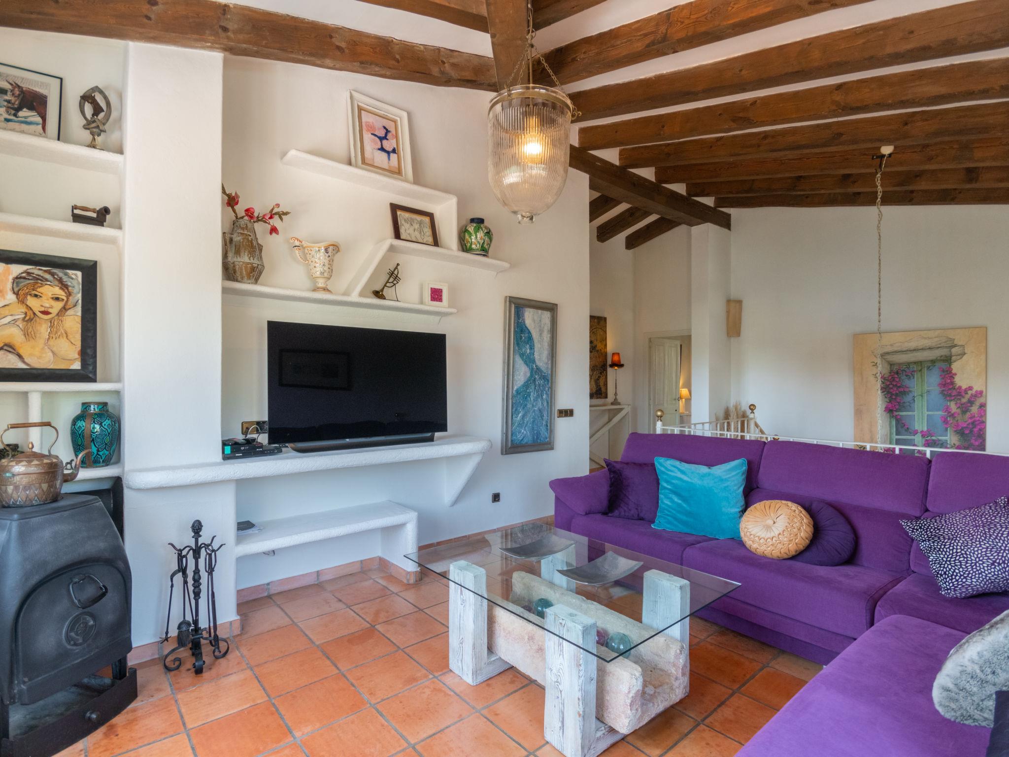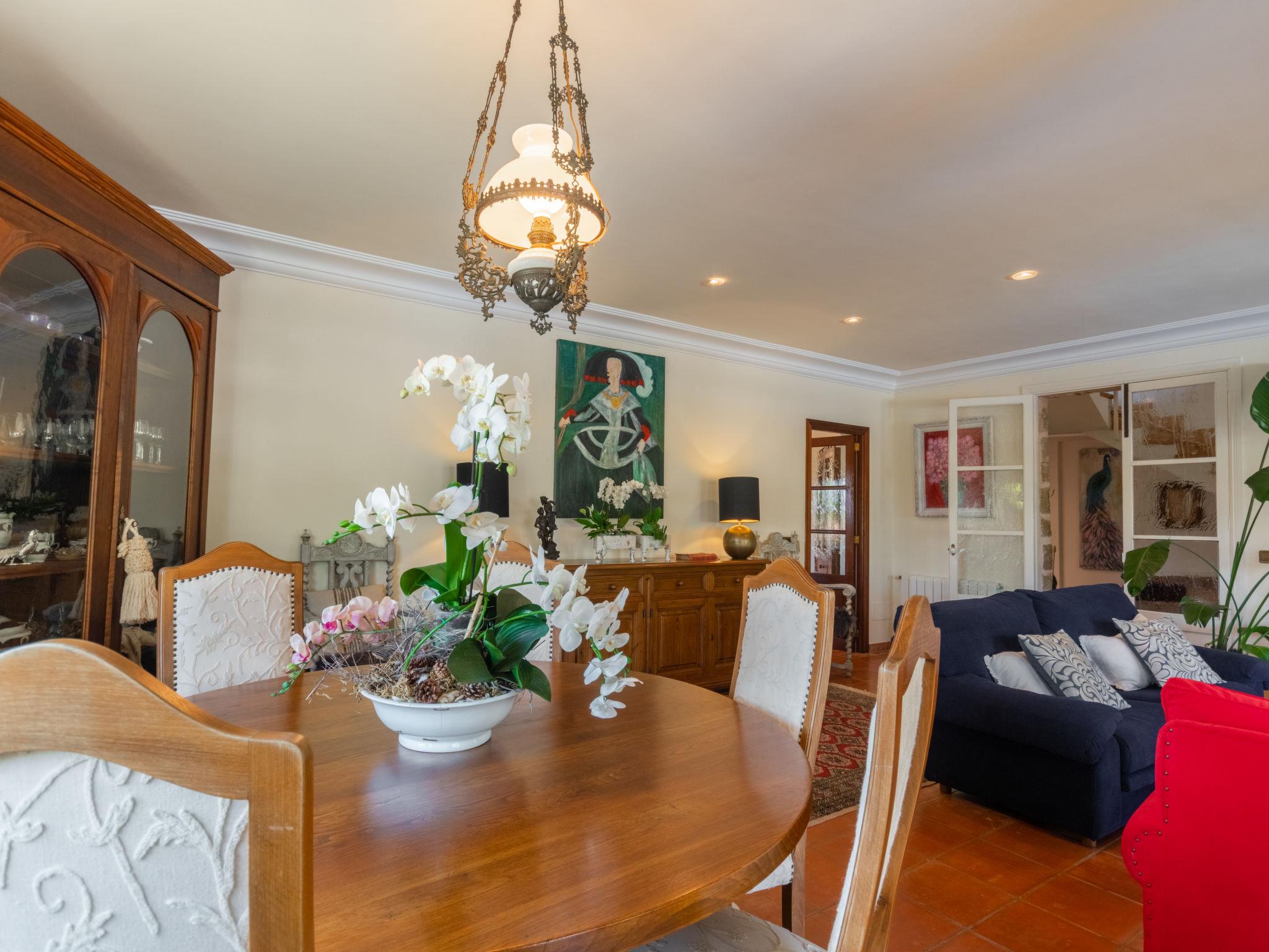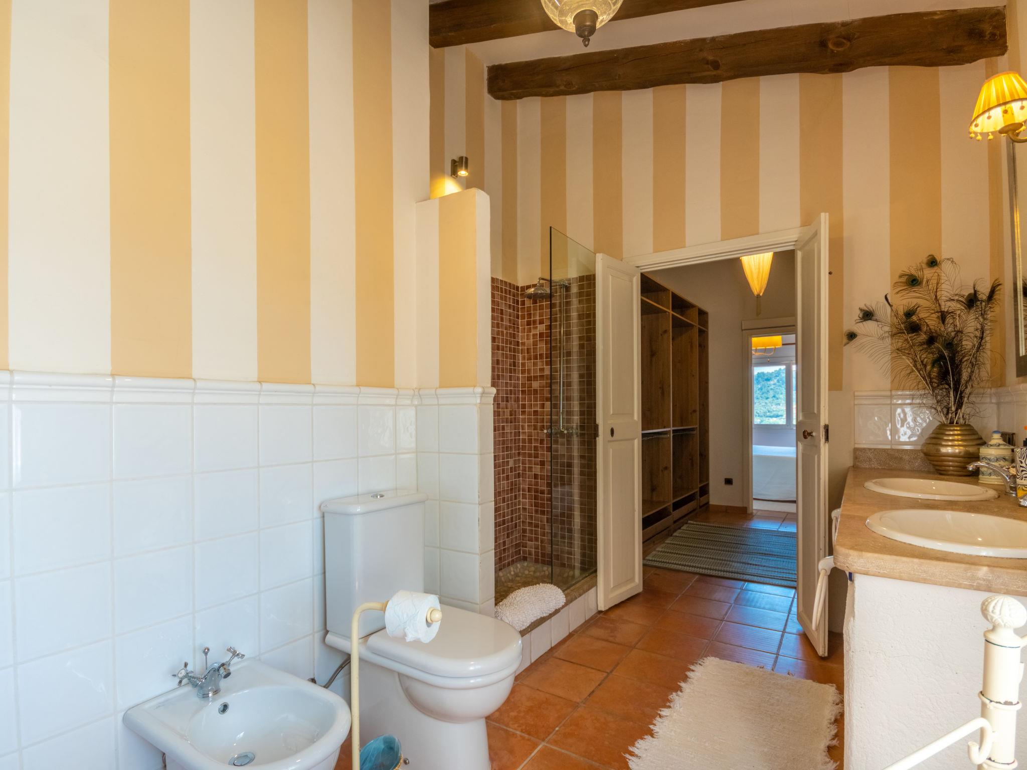 "La Font", 8-room villa 200 m2 on 2 levels. Object suitable for 8 adults. Spacious and bright, very beautiful and tasteful furnishings: open living room with panoramic window with dining table. Exit to the patio, to the swimming pool. Entrance hall. 1 large double bedroom with panoramic window with 1 french bed (150 cm, length 200 cm), air conditioning and forced-air heating. 1 large double bedroom with panoramic window with 2 beds (90 cm, length 190 cm), air conditioning and forced-air heating. Kitchen-/living room (oven, dishwasher, 3 ceramic glass hob hotplates, microwave, freezer, electric coffee machine) with bar, dining table. Exit to the patio. Bath/WC. Upper floor: 1 large double bedroom with panoramic window Dressing room with 1 french bed (180 cm, length 200 cm), shower/WC, air conditioning and forced-air heating. 1 large double bedroom with panoramic window with 1 french bed (180 cm, length 200 cm), shower/WC, air conditioning and forced-air heating. Large lounge with panoramic window with TV, satellite TV, flat screen and wood-burning stove. Exit to the terrace. Large terrace, large garden, lawn, porch. Terrace furniture, balcony furniture, barbecue, deck chairs, covered balcony, sitting area. Very beautiful view of the mountains, the countryside and the town. Facilities: washing machine, iron, children's high chair, baby cot, hair dryer. Internet (WiFi, free). Parking (fenced) at the house. Suitable for families. ETV3254 // Reg. Nr.: ESFCTU000007022000212200000000000000000000000ET/32546