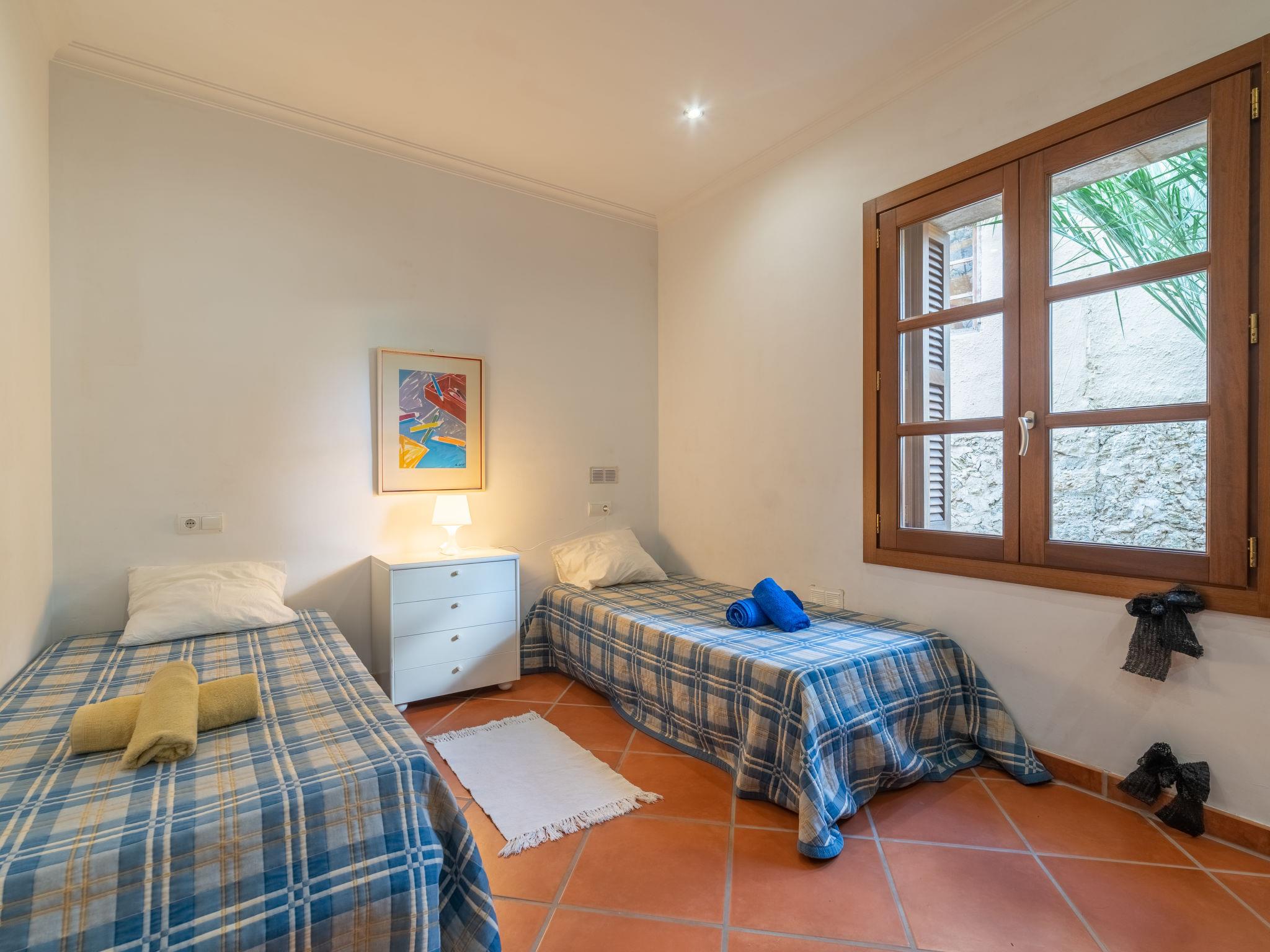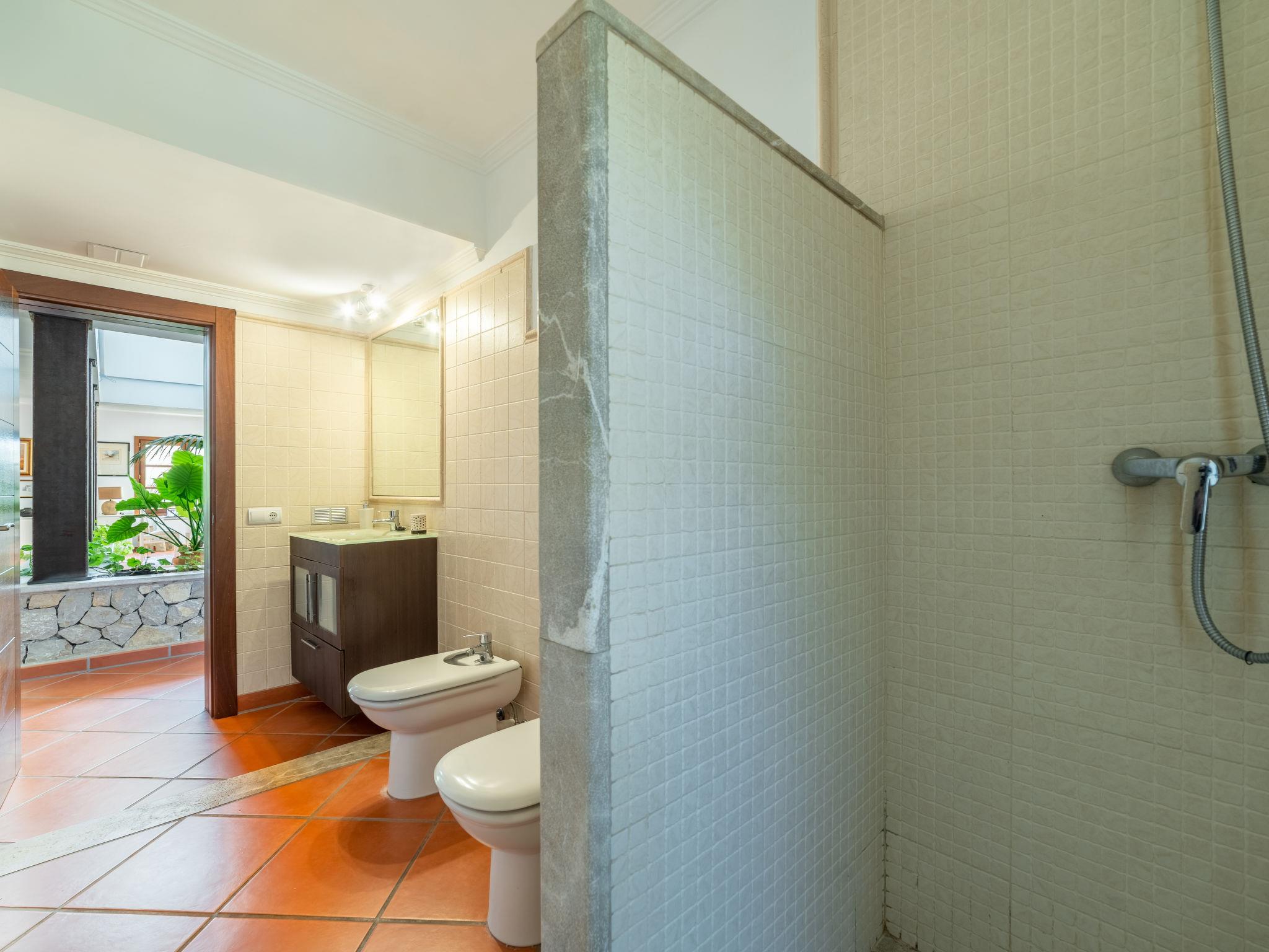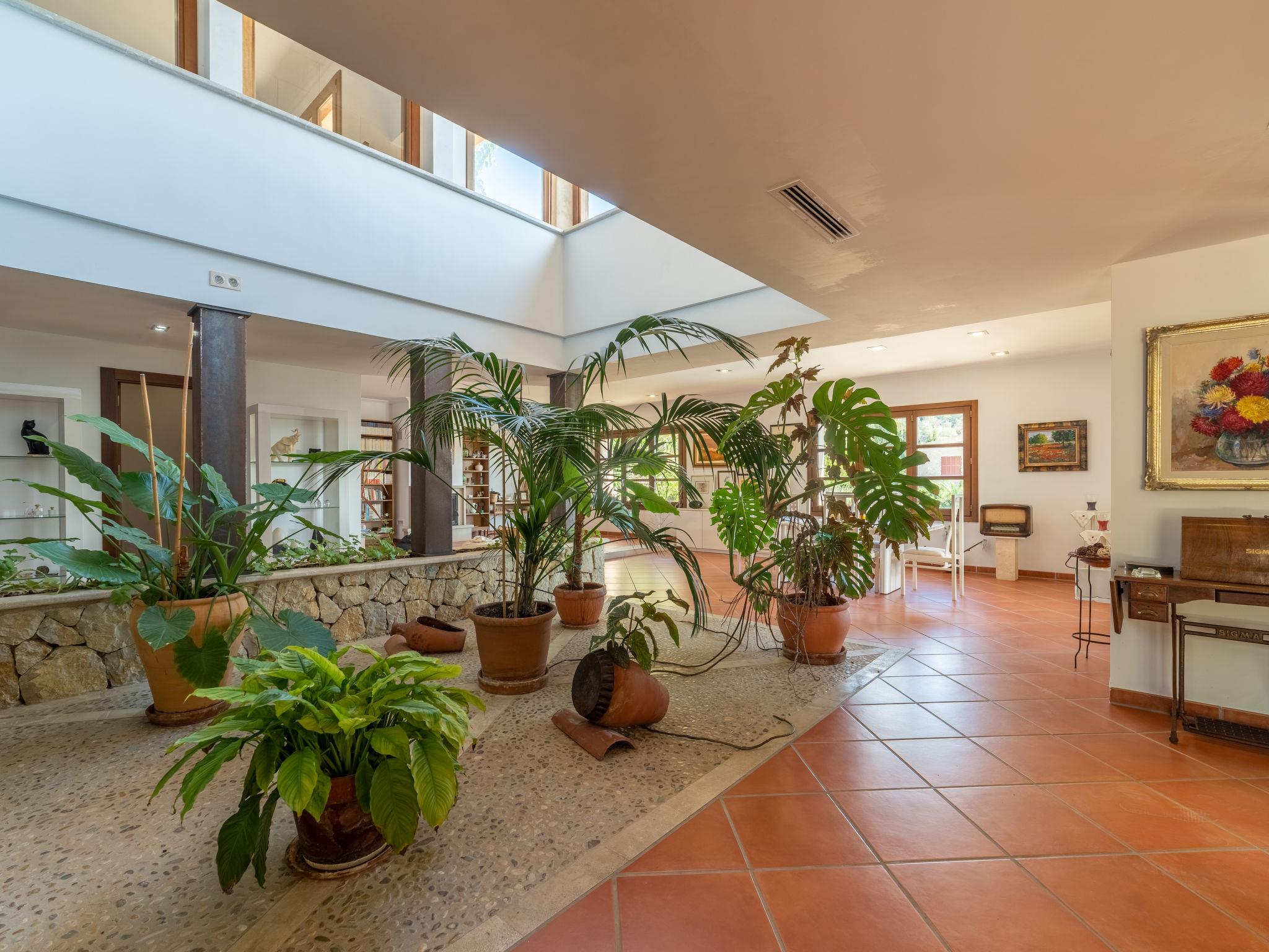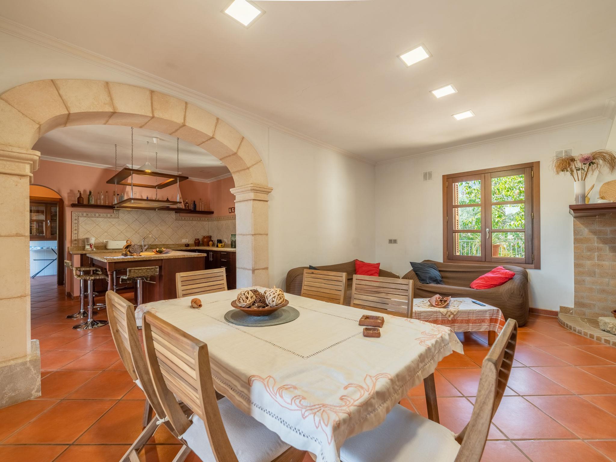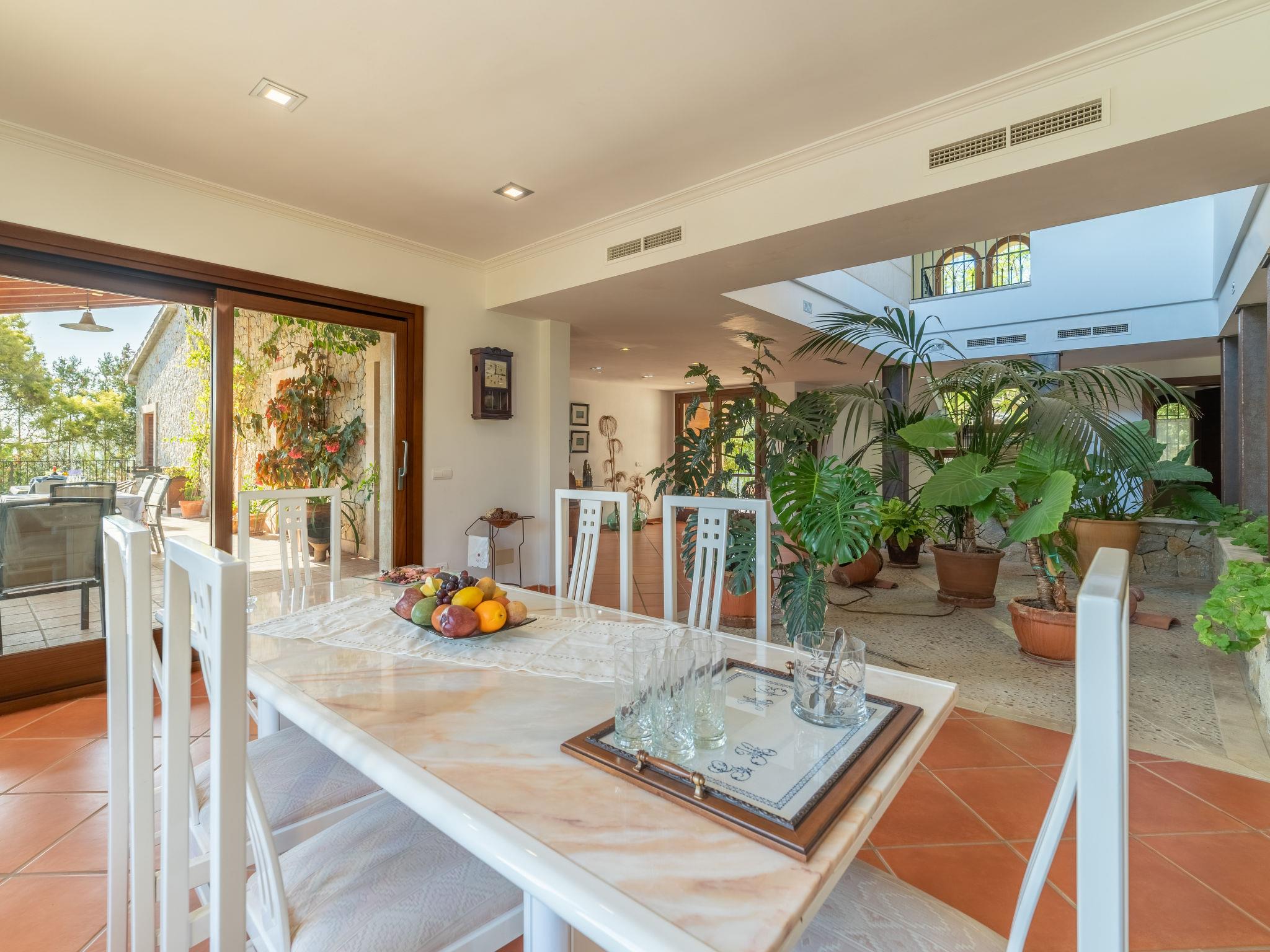 Very large, beautiful villa "Turixant Dalt", 2 storeys, detached. In the resort 350 m from the centre of Mancor de la Vall, excellent location: right in the centre but still quiet, 250 m from the edge of the forest, 29 km from the sea. Private: large, beautiful garden with lawn and wildlife garden, swimming pool angular (10 x 5 m, depth 200 cm, seasonal availability: 01.Jan. - 31.Dec.) with salt-electrolysis pool-cleaning system. Outdoor shower, patio, arbour, pergola, garden furniture, barbecue, planted inner courtyard pool maintenance by the owner/gardener. In the house: internet access, WiFi, storage room for bicycles, air conditioning, washing machine, tumble dryer. Roofed, parking at the house on the premises. Grocery 450 m, supermarket 4.5 km, shopping centre 21 km, restaurant 270 m, bar 150 m, 3 minute walk to the centre, bus stop "Mancor de la Vall" 250 m, railway station "Inca" 5 km, ferry "Port Alcúdia" 30 km, sandy beach "Port Alcúdia" 29.5 km, rocky beach "Alcúdia" 28.5 km. Sports harbour 29.5 km, golf course (18 hole) 22 km, riding stable 4.5 km, sports centre 800 m, walking paths from the house 300 m, cycle lane 250 m. Nearby attractions: Pueblos de Selva, Caimari, Biniamar,Inca, Inca Local Market (Thursdays, mornings). 5 km, Mallorca Fashion Outlet & Cinema 22 km, Santuario de Lluc, Escorca 17.3 km. Hiking paths: Serra de Tramuntana, Escorca-Pollença, Puig de Santa Llucia, Mancor, Puig de Massanella. Please note: car recommended. Object suitable for 10 adults. The owner does not accept any youth groups. Airfield 42 km from the property. Neighbourhood highly sensitive to noise. Quietness and good behaviour expected.