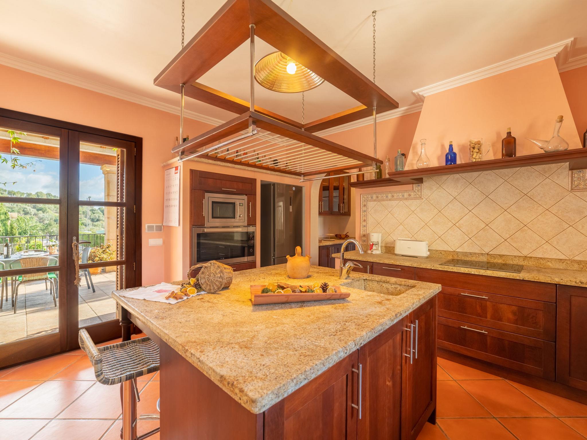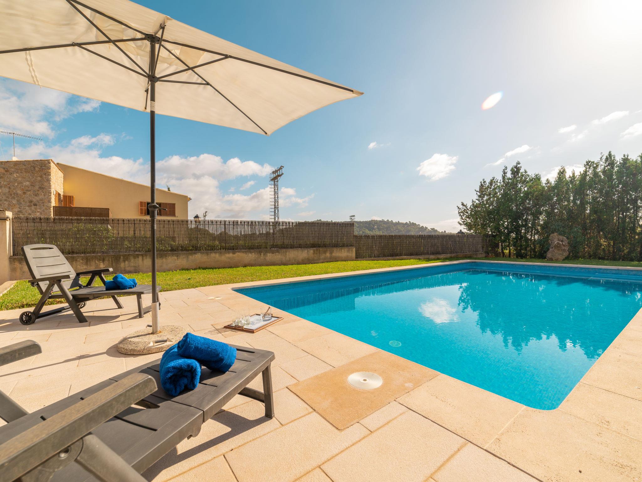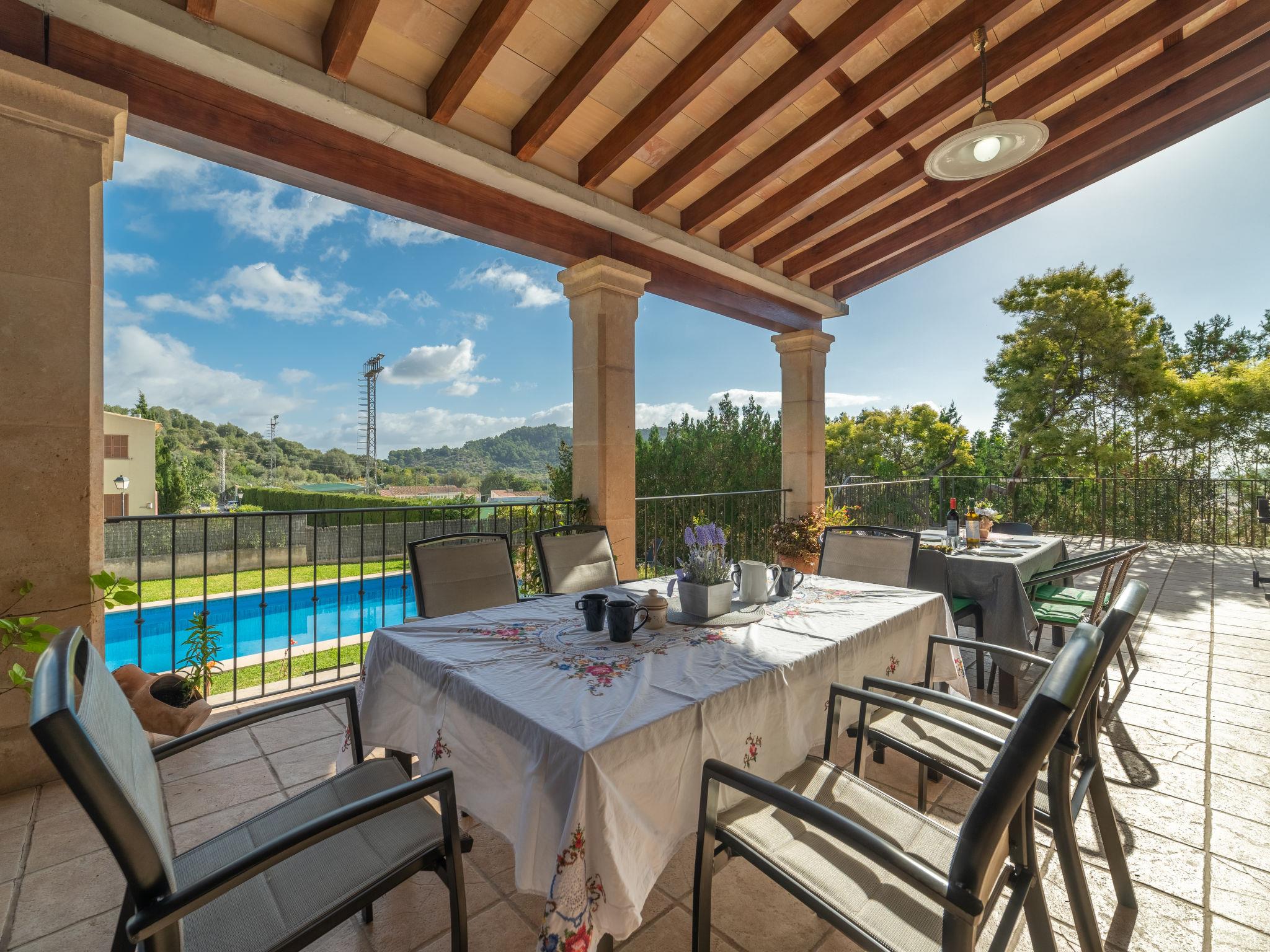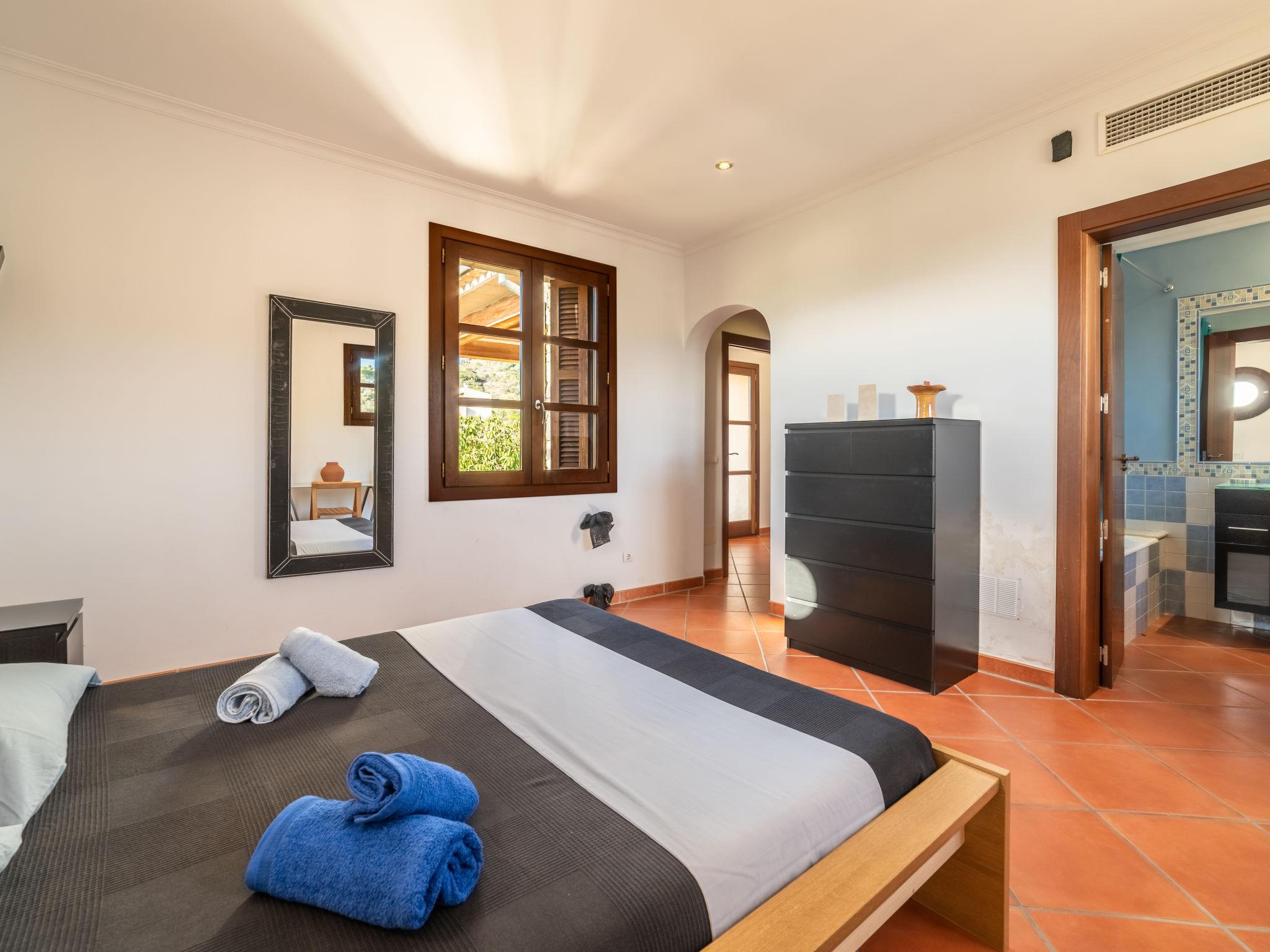 Very large, beautiful villa "Turixant Dalt", 2 storeys, detached. In the resort 350 m from the centre of Mancor de la Vall, excellent location: right in the centre but still quiet, 250 m from the edge of the forest, 29 km from the sea. Private: large, beautiful garden with lawn and wildlife garden, swimming pool angular (10 x 5 m, depth 200 cm, seasonal availability: 01.Jan. - 31.Dec.) with salt-electrolysis pool-cleaning system. Outdoor shower, patio, arbour, pergola, garden furniture, barbecue, planted inner courtyard pool maintenance by the owner/gardener. In the house: internet access, WiFi, storage room for bicycles, air conditioning, washing machine, tumble dryer. Roofed, parking at the house on the premises. Grocery 450 m, supermarket 4.5 km, shopping centre 21 km, restaurant 270 m, bar 150 m, 3 minute walk to the centre, bus stop "Mancor de la Vall" 250 m, railway station "Inca" 5 km, ferry "Port Alcúdia" 30 km, sandy beach "Port Alcúdia" 29.5 km, rocky beach "Alcúdia" 28.5 km. Sports harbour 29.5 km, golf course (18 hole) 22 km, riding stable 4.5 km, sports centre 800 m, walking paths from the house 300 m, cycle lane 250 m. Nearby attractions: Pueblos de Selva, Caimari, Biniamar,Inca, Inca Local Market (Thursdays, mornings). 5 km, Mallorca Fashion Outlet & Cinema 22 km, Santuario de Lluc, Escorca 17.3 km. Hiking paths: Serra de Tramuntana, Escorca-Pollença, Puig de Santa Llucia, Mancor, Puig de Massanella. Please note: car recommended. Object suitable for 10 adults. The owner does not accept any youth groups. Airfield 42 km from the property. Neighbourhood highly sensitive to noise. Quietness and good behaviour expected.