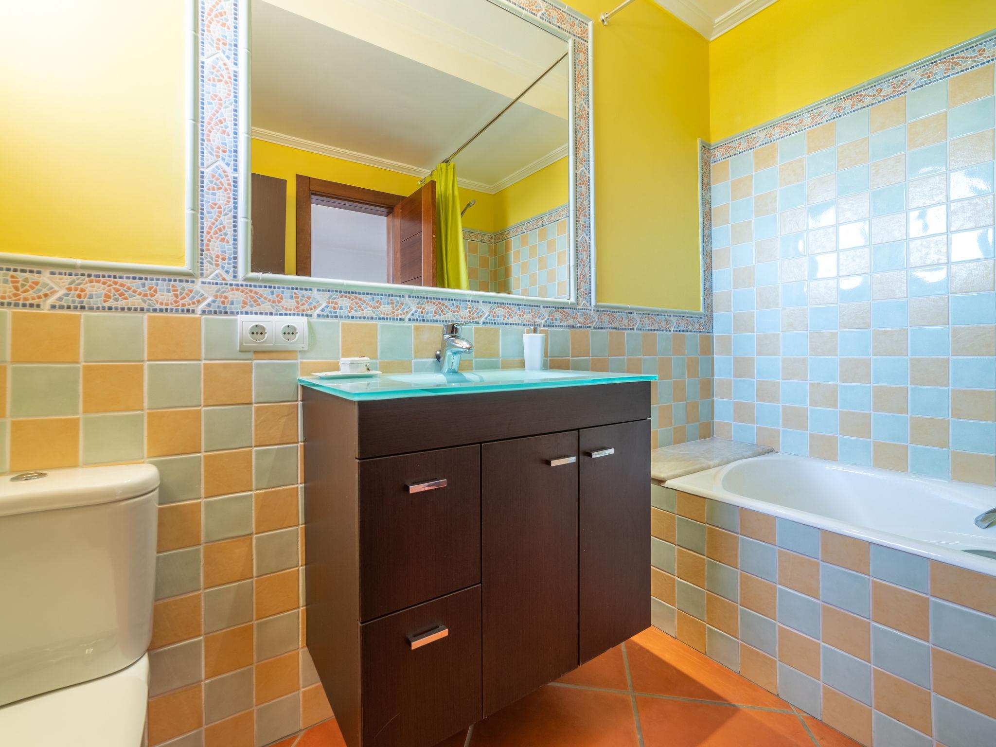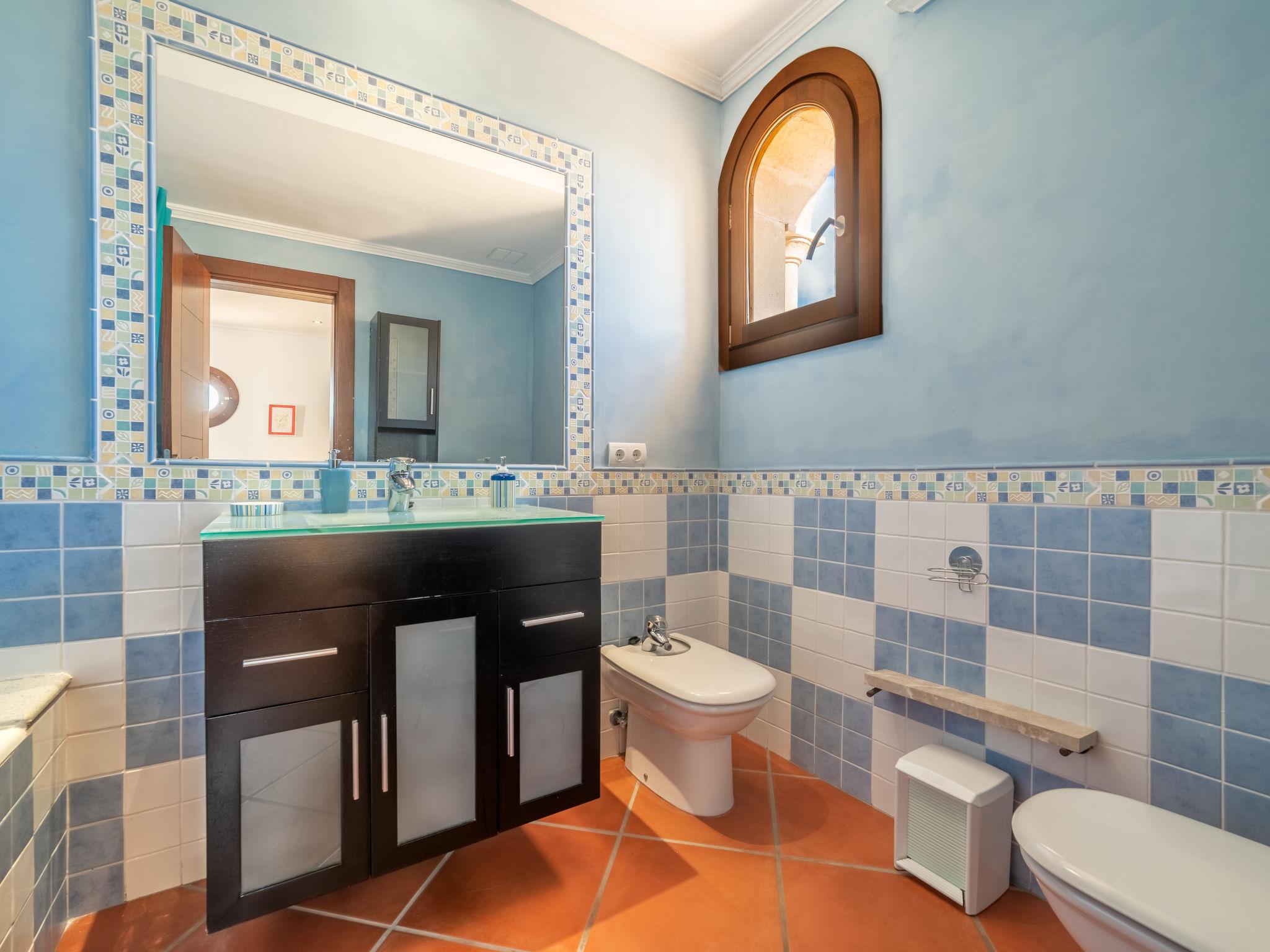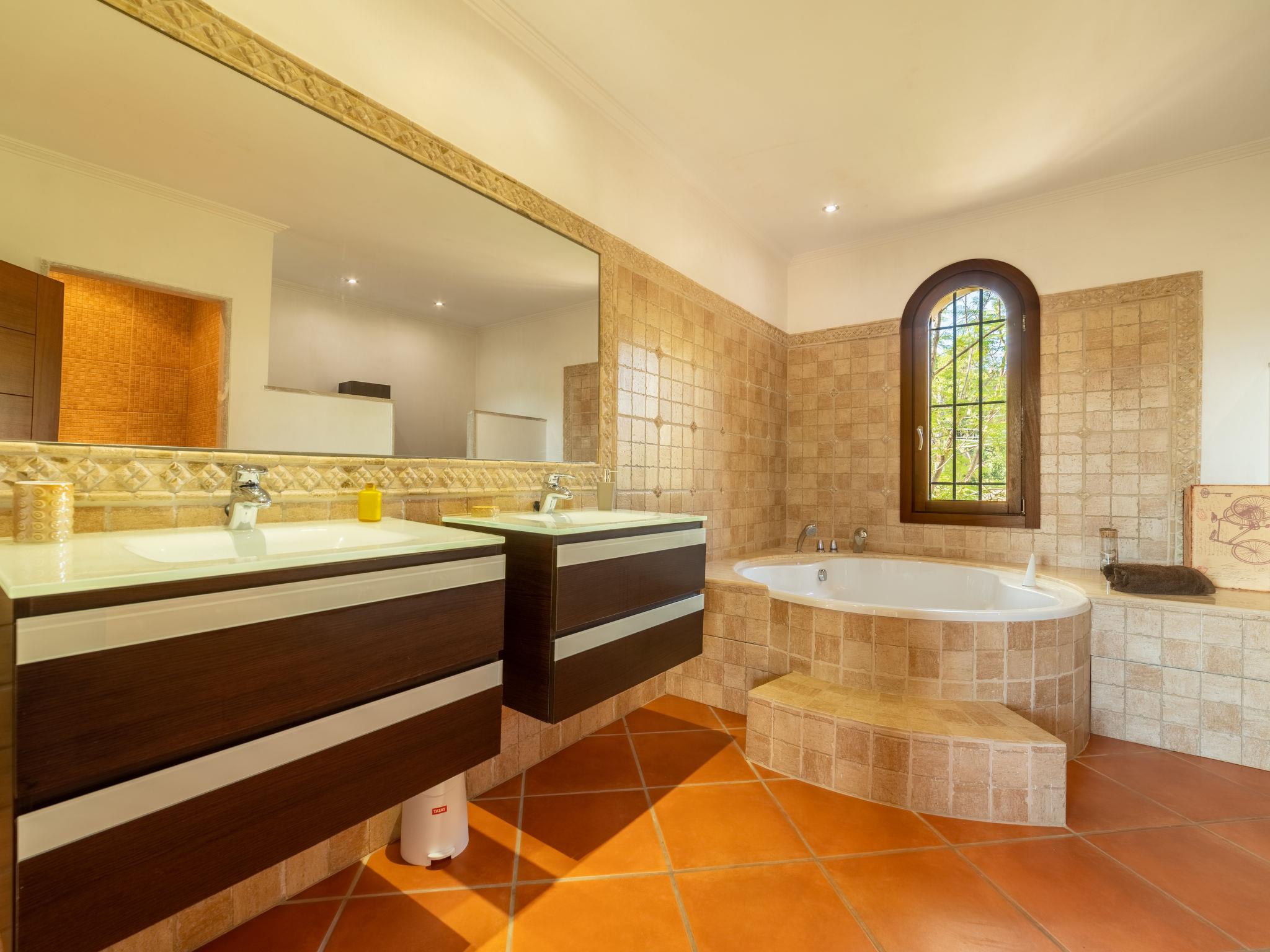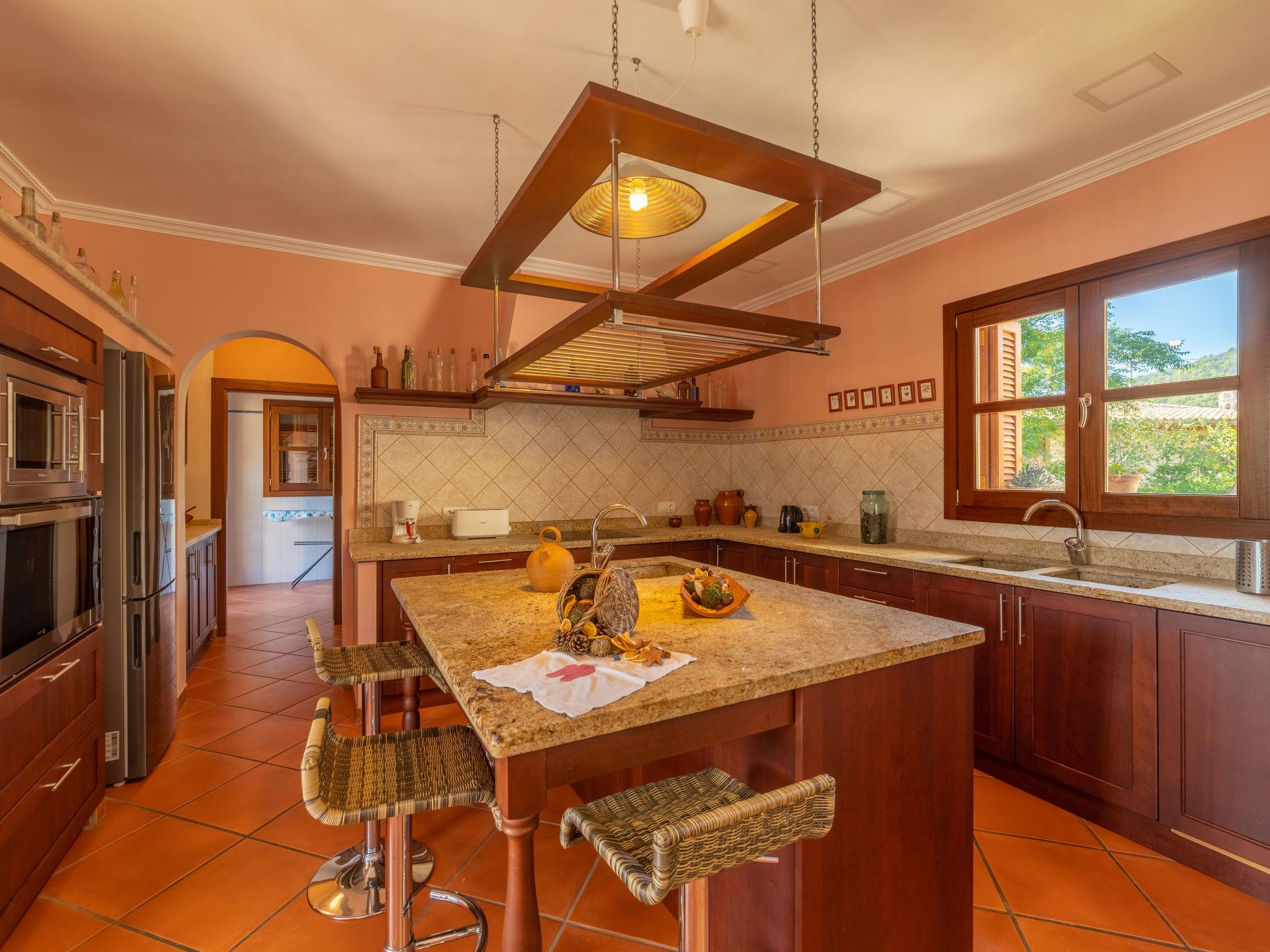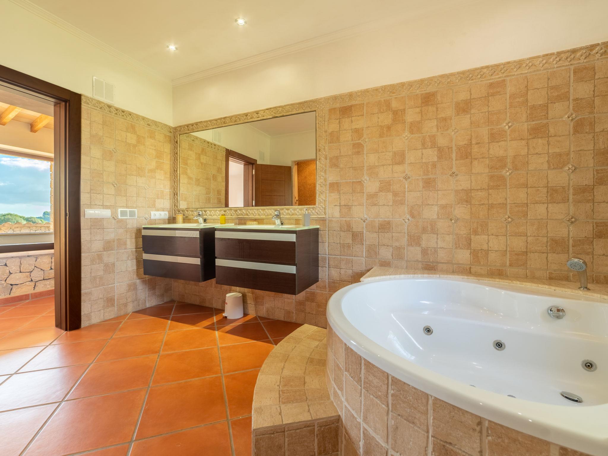 Very large, beautiful villa "Turixant Dalt", 2 storeys, detached. In the resort 350 m from the centre of Mancor de la Vall, excellent location: right in the centre but still quiet, 250 m from the edge of the forest, 29 km from the sea. Private: large, beautiful garden with lawn and wildlife garden, swimming pool angular (10 x 5 m, depth 200 cm, seasonal availability: 01.Jan. - 31.Dec.) with salt-electrolysis pool-cleaning system. Outdoor shower, patio, arbour, pergola, garden furniture, barbecue, planted inner courtyard pool maintenance by the owner/gardener. In the house: internet access, WiFi, storage room for bicycles, air conditioning, washing machine, tumble dryer. Roofed, parking at the house on the premises. Grocery 450 m, supermarket 4.5 km, shopping centre 21 km, restaurant 270 m, bar 150 m, 3 minute walk to the centre, bus stop "Mancor de la Vall" 250 m, railway station "Inca" 5 km, ferry "Port Alcúdia" 30 km, sandy beach "Port Alcúdia" 29.5 km, rocky beach "Alcúdia" 28.5 km. Sports harbour 29.5 km, golf course (18 hole) 22 km, riding stable 4.5 km, sports centre 800 m, walking paths from the house 300 m, cycle lane 250 m. Nearby attractions: Pueblos de Selva, Caimari, Biniamar,Inca, Inca Local Market (Thursdays, mornings). 5 km, Mallorca Fashion Outlet & Cinema 22 km, Santuario de Lluc, Escorca 17.3 km. Hiking paths: Serra de Tramuntana, Escorca-Pollença, Puig de Santa Llucia, Mancor, Puig de Massanella. Please note: car recommended. Object suitable for 10 adults. The owner does not accept any youth groups. Airfield 42 km from the property. Neighbourhood highly sensitive to noise. Quietness and good behaviour expected.