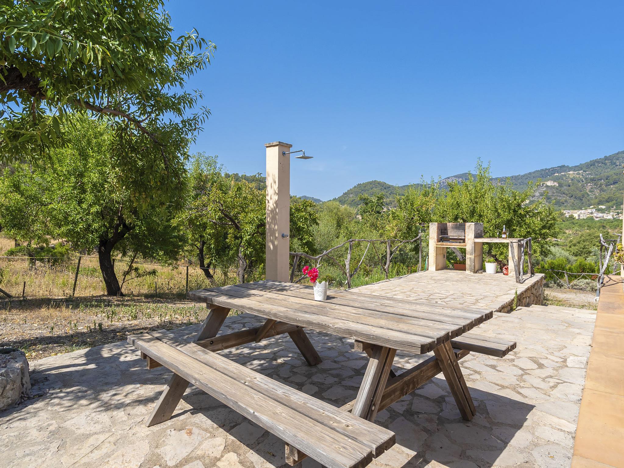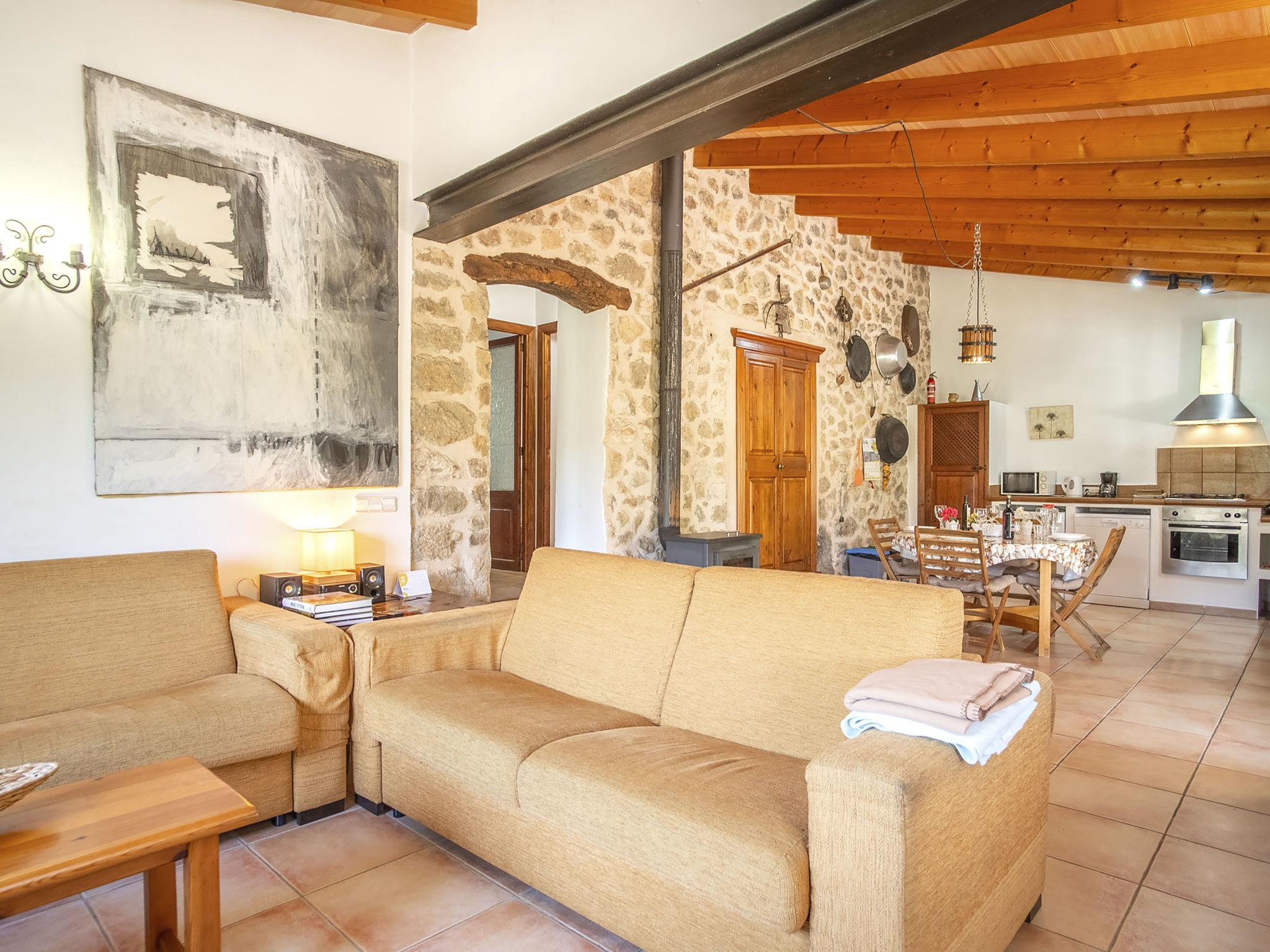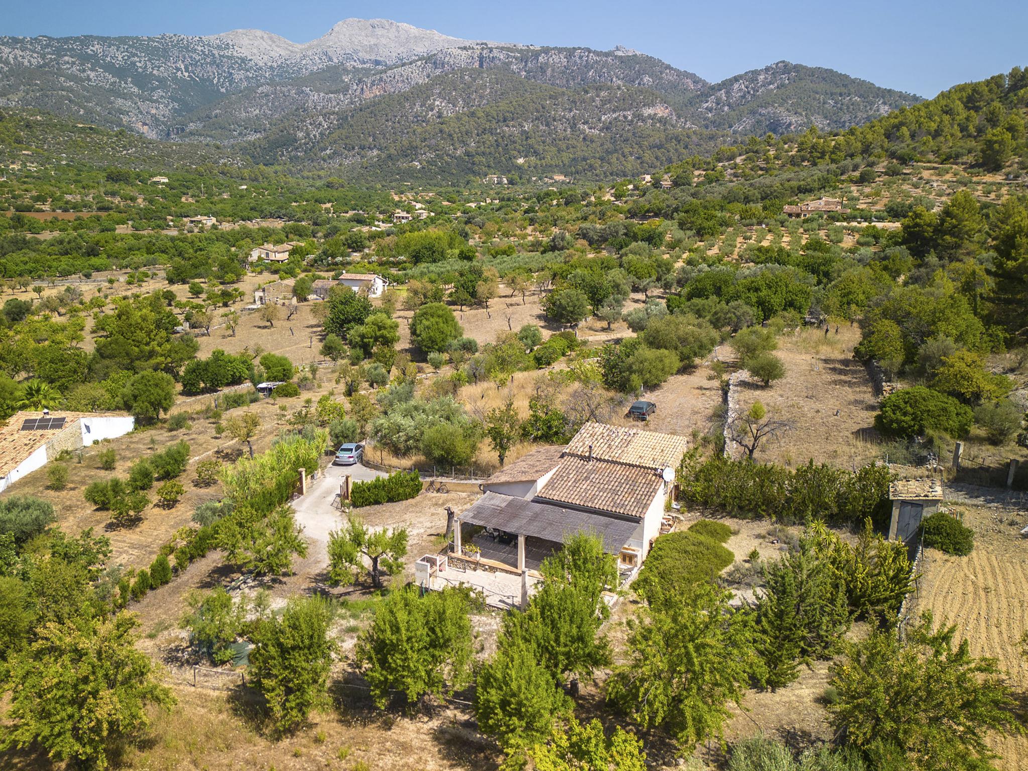 Tramuntana 1 km from Mancor de la Vall: Beautiful, cosy farm estate "Es Puig Mancor", surrounded by trees and fields. 1 km from the centre of Mancor de la Vall, on the outskirts, 5 km from the centre of Inca, in an elevated position, 1 km from the edge of the forest, 30 km from the sea, 30 km from the beach, in the countryside, south-west facing position. Private: natural state property 10'000 m2, terraced garden, 800 m2 (fenced) with trees. Outdoor shower. In the house: burglar alarm system. 300 m long narrow motor access. Stepped path (5 steps) to the house. Width of access road: 225 cm. Parking on the premises. Shop 2 km, grocery 2 km, supermarket 1 km, shopping centre 7 km, restaurant 1 km, bar 2 km, bakery 1 km, café 2 km, pedestrian zone 1 km, 10 minute walk to the centre, bus stop "Estación de Inca" 7 km, railway station "Estación de Inca" 7 km, sandy beach "Alcúdia" 30 km, shingle beach "Bonaire" 28 km, rocky beach "Alcanada" 29 km. Sports harbour 30 km, marina 30 km, golf course (18 hole) 20 km, surf school 30 km, sailing school 30 km, tennis 7 km, riding stable 28 km, walking paths from the house 2 km, cycle lane 2 km. Nearby attractions: Cuevas de Campanet 15 km, Soller 43 km, Sa Calobra 34 km, Monasterio de Lluc 16 km. Hiking paths: Massanella 1 km, Tossals Verds 4 km. Please note: car recommended. The owner does not accept any groups. The owner does not accept any youth groups.