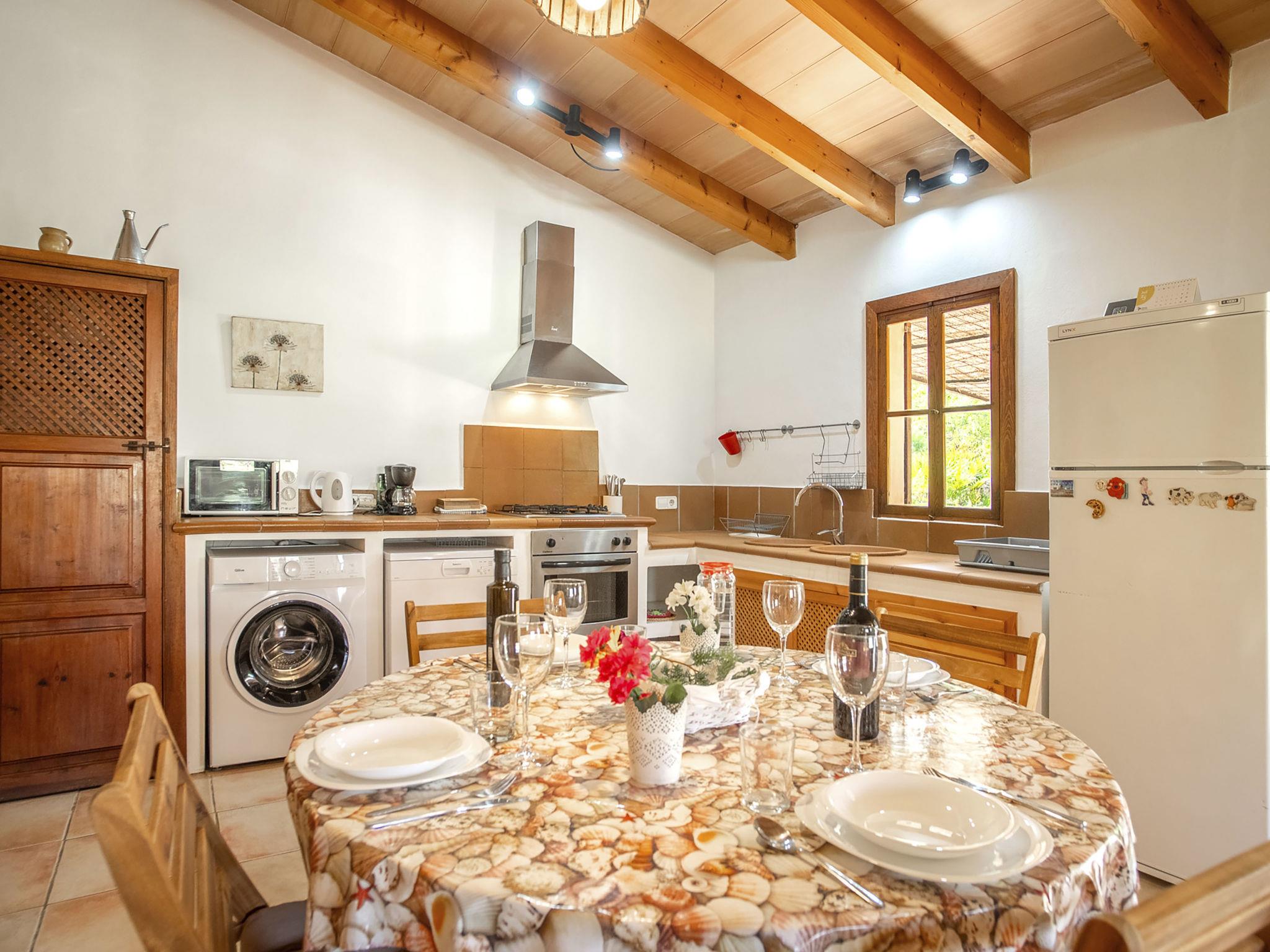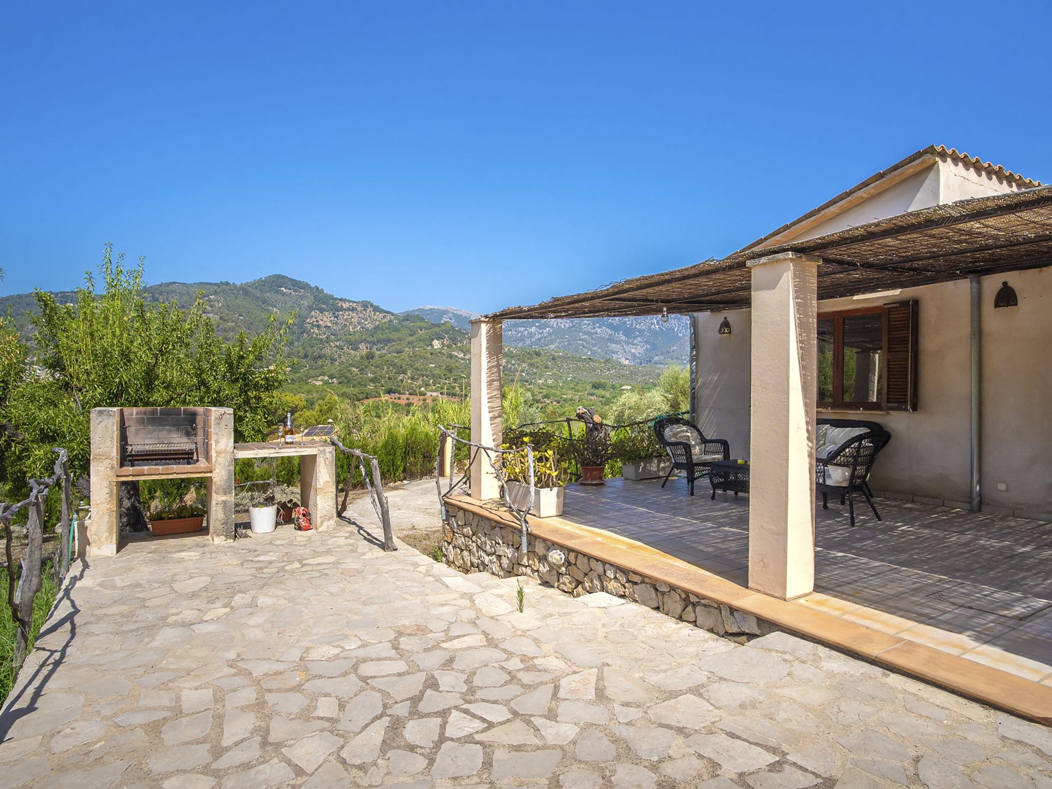 "Es Puig Mancor", 3-room house 90 m2. Practical furnishings: living/dining room with dining table, satellite TV, digital TV and wood-burning stove. 1 room with 2 beds and electric heater. 1 room with 1 french bed (150 cm), electric heater. Open kitchen (oven, dishwasher, 4 gas rings, toaster, microwave, freezer, electric coffee machine). Bath/WC. Heating not available in all rooms. Terrace 40 m2 partly roofed. Terrace furniture, barbecue, deck chairs. Marvellous view of the mountains and the resort. Facilities: washing machine, iron, children's high chair, baby cot for up to 2 year olds. Internet (WiFi, extra). Please note: non-smoking house. Maximum 1 pet/ dog allowed. Smoke alarm, fire extinguisher. VT1609 // Reg. Nr.: ESFCTU000007022000225835000000000000000000000VT/16093