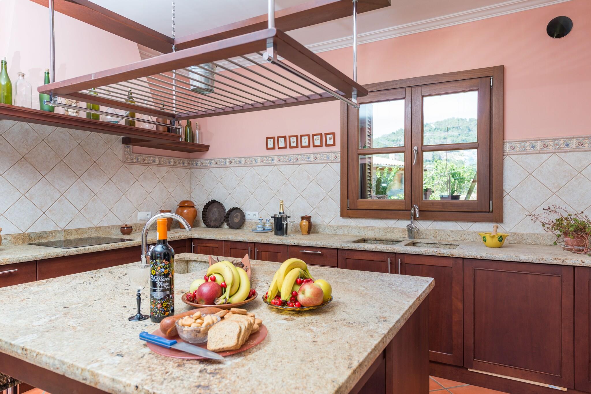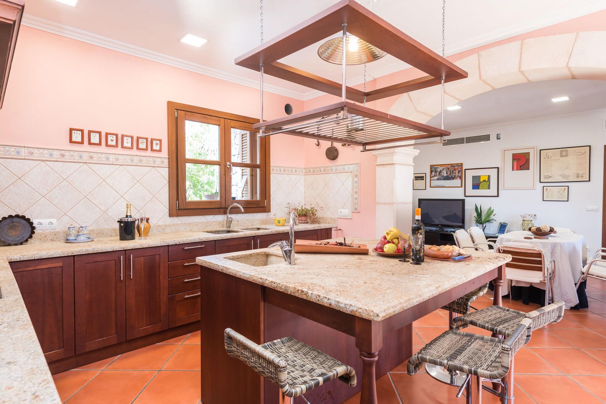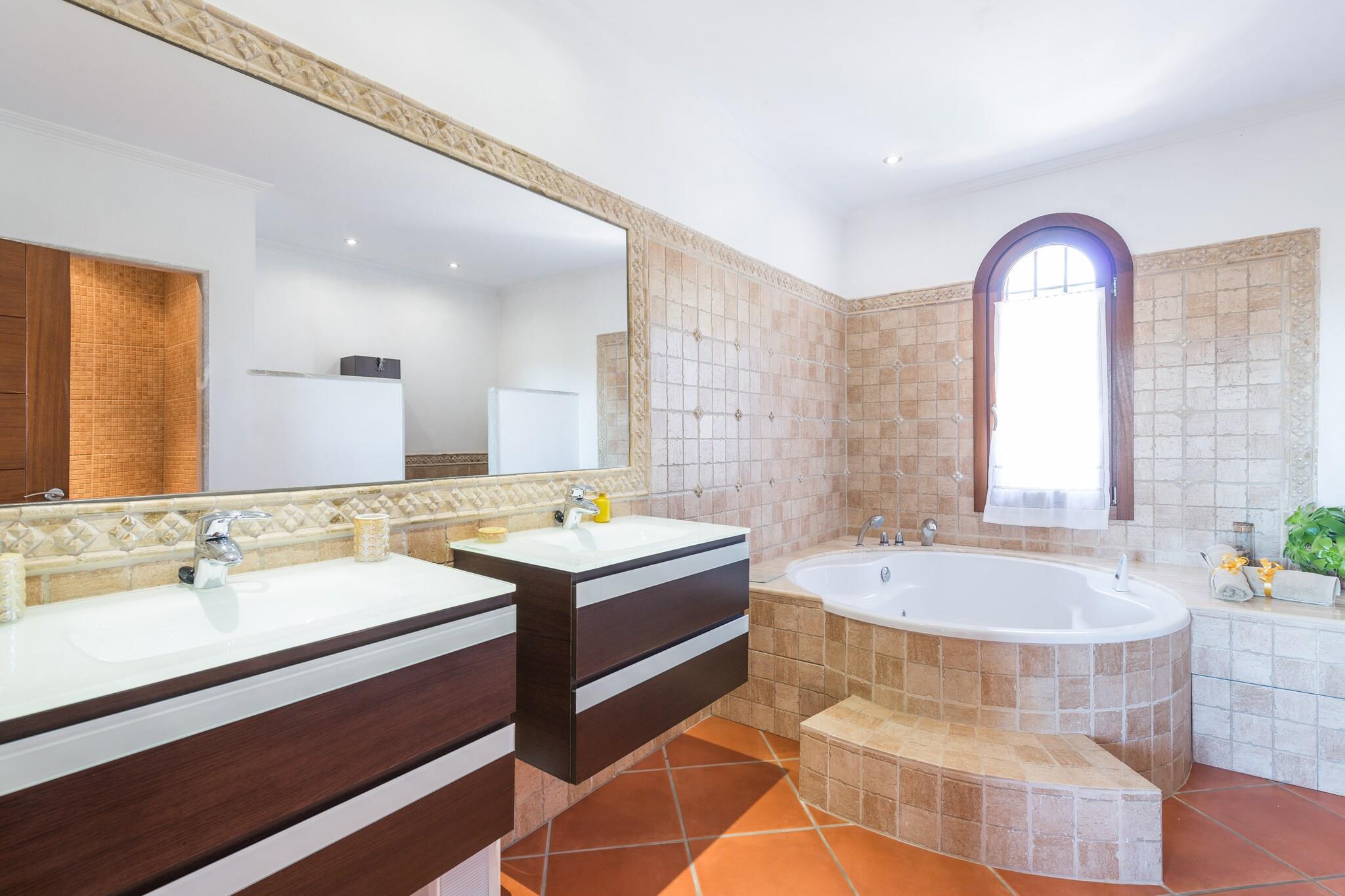 Nyd landsbylivet i eksklusive omgivelser og et utroligt hus, hvor du vil glemme hverdagen. Udenfor finder du et skønt 10 x 5 saltbassin med en dybde, der går fra 1,2 til 1,8 meter. Det er ideelt til sommerdukkert, og det er omgivet af en fantastisk have, hvor du kan ligge og solbade på en af liggestolene eller forberede en grill med dine venner. Derfra kommer vi ind i stueetagens veranda op ad nogle trapper. Verandaen er indrettet til at nyde måltider og middage udendørs. Grunden er indhegnet og har direkte naboer, så privatlivets fred er delvist. Boligen på 400 m2 er fordelt på to etager. I stueetagen finder vi en behagelig og velkendt stue, hvor du kan se tv eller slappe af. Den åbner til køkkenet gennem en bue. Køkkenet er fuldt udstyret, med en keramisk kogeplade, og med en behagelig ø med taburetter til at arbejde let, sammen med en spiseplads til 6 personer, hvor du vil tilbringe kvalitetstid med dine kære, mens du laver mad. Udover det finder du en utrolig spisestue til 10 personer. Det første af soveværelserne, med en dobbeltseng, er også i stueetagen, samt det andet soveværelse, men dette har 2 enkeltsenge. Der er et badeværelse med bruser i stueetagen. Ovenpå finder vi de tre andre soveværelser, de tre af dem med dobbeltseng og eget badeværelse. Der er AC i alle soveværelser og i køkken-alrummet. Rejser du med en baby en barneseng og en høj stol ara til din rådighed. Huset tæller også med vaskemaskine, tørretumbler, strygejern og strygebræt Der er parkeringsplads til 2 biler i garagen. Turistlicens: ETV/10838 Som reaktion på Coronavirus (COVID-19) er yderligere sikkerheds- og sanitære foranstaltninger i kraft på denne ejendom.