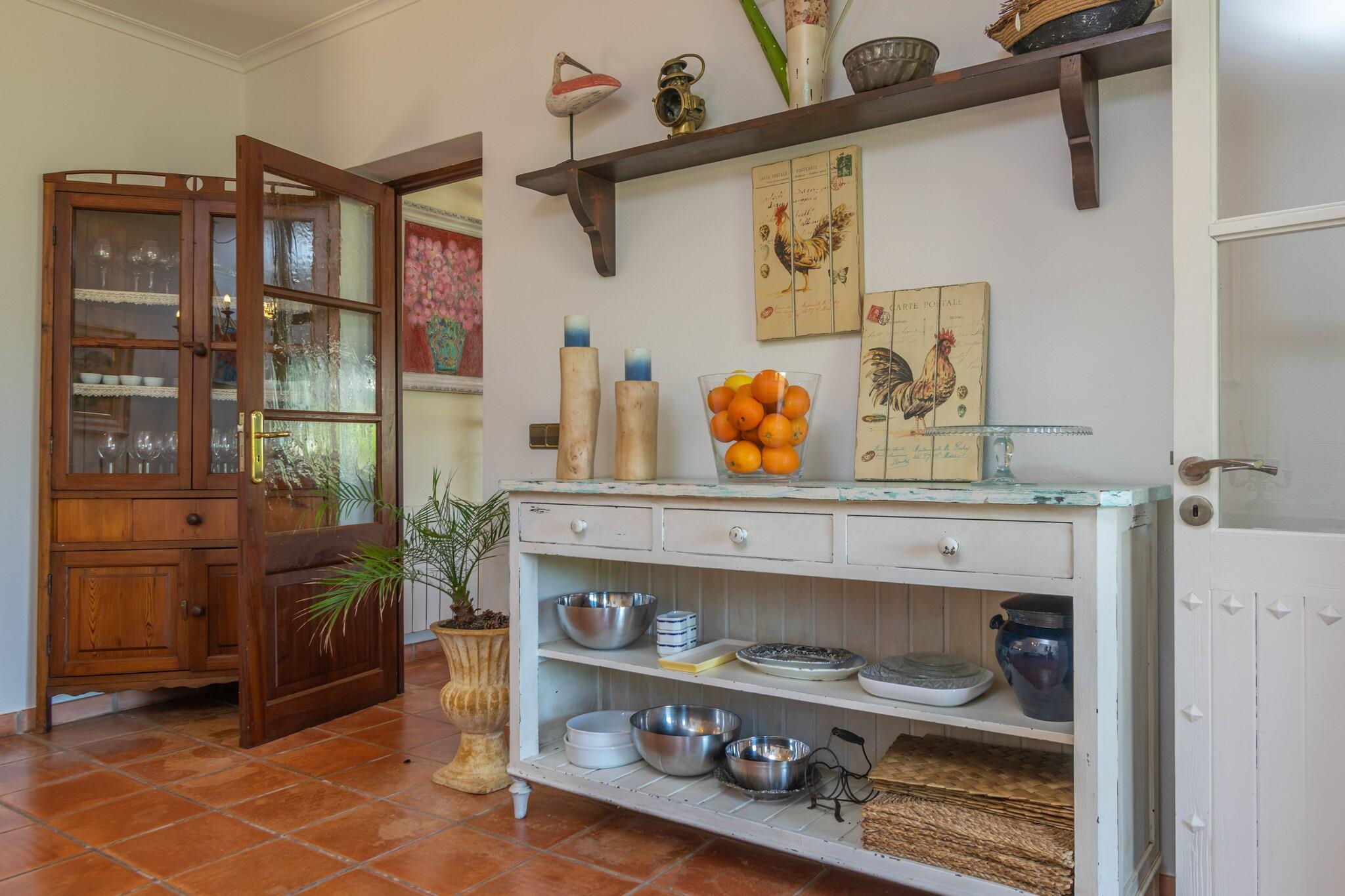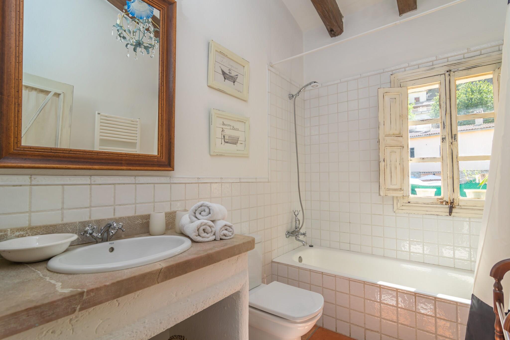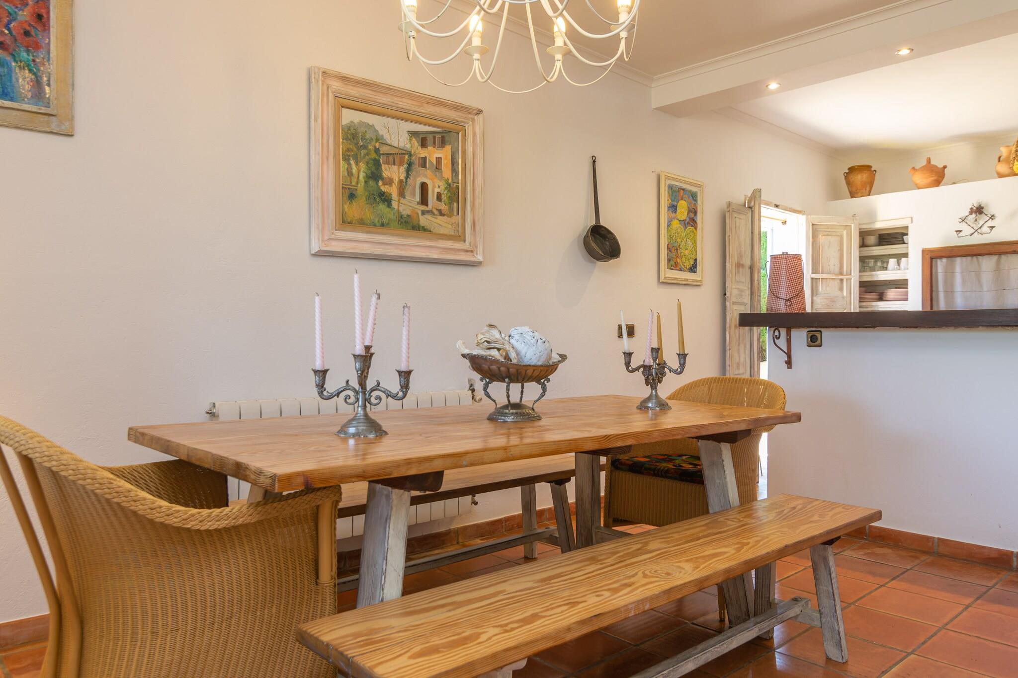De buitenkant van het huis is erg mooi. Opvallend is de verzorgde tuin met privé chloorzwembad van 11 x 6 meter en een diepte variërend van 1 tot 2,1 meter. De comfortabele ligstoelen zijn ideaal om te ontspannen in de zon na een verfrissende duik. Op de veranda van het huis kunt u heerlijk in de schaduw zitten en nagenieten van een heerlijke barbecue uw maaltijd verlengen. Het terrein is omheind en er zijn buren in de buurt. Het huis met 2 verdiepingen heeft een charmante klassieke stijl. De grote eetkamer geeft via grote ramen toegang tot de veranda. De keuken heeft tevens een meer informele eethoek en is voorzien van inductie. Er is ook een wasmachine, strijkijzer en strijkplank. De begane grond wordt gecompleteerd door een badkamer met ligbad en twee slaapkamers, één met een tweepersoonsbed en de andere met twee eenpersoonsbedden. Op de eerste verdieping hebben we nog een mooie kamer met satelliet-tv, een badkamer met ligbad en nog 2 slaapkamers, beide met een tweepersoonsbed en één met een en-suite badkamer met douche. De 4 slaapkamers zijn voorzien van airconditioning en het huis heeft centrale verwarming op olie. Ten slotte kunnen wij u voorzien van een wieg en een kinderstoel als u met uw baby reist. Mancor de la Vall is een prachtig stadje aan de voet van de bergen dat de basisvoorzieningen voor uw verblijf biedt. In de stad Inca, op 5 km afstand, vindt u meer winkels en diensten, evenals een traditionele markt die elke donderdag plaatsvindt. Mancor is het perfecte startpunt voor excursies zowel te voet als per fiets, bijvoorbeeld naar Santa Lucía, Lluc, Ses Fonts Ufanes of de prachtige grotten van Campanet. En als u een strand wilt, ligt het dichtstbijzijnde op 30 km afstand, het paradijselijke strand van Puerto de Alcúdia. Voor eventuele extra kosten kunt u contact opnemen met de adverteerder. Wij accepteren geen huisdieren. Het vieren van evenementen is niet toegestaan. Er is buiten parkeergelegenheid voor 2 auto's. Afstanden Strand: 30,1 km - Port d'Alcúdia Luchthaven: 41,2 km - Palma de Mallorca Golfbaan: 26 km - Pollença Stad: 0.350 km - Mancor de la Vall Treinstation: 5,3 km - Inca Bushalte: 0,240 km - Mancor de la Vall Veerboot: 38 km - Palma de Mallorca Ziekenhuis: 6,7 km - Comarcal d'Inca-ziekenhuis Toeristenvergunning: ETV/3254Bij de ingang moet u de Ecotasa (toeristenbelasting van de Balearen) contant betalen. Het bedrag varieert tussen EURO 0,55 / per nacht per persoon in het laagseizoen en EURO 2,2 / per nacht per persoon in het hoogseizoen. Vanaf de negende dag wordt het met de helft verminderd. Personen onder de 16 jaar uitgesloten. Verwarming (januari - december): 1,30 EUR/liter (optioneel)