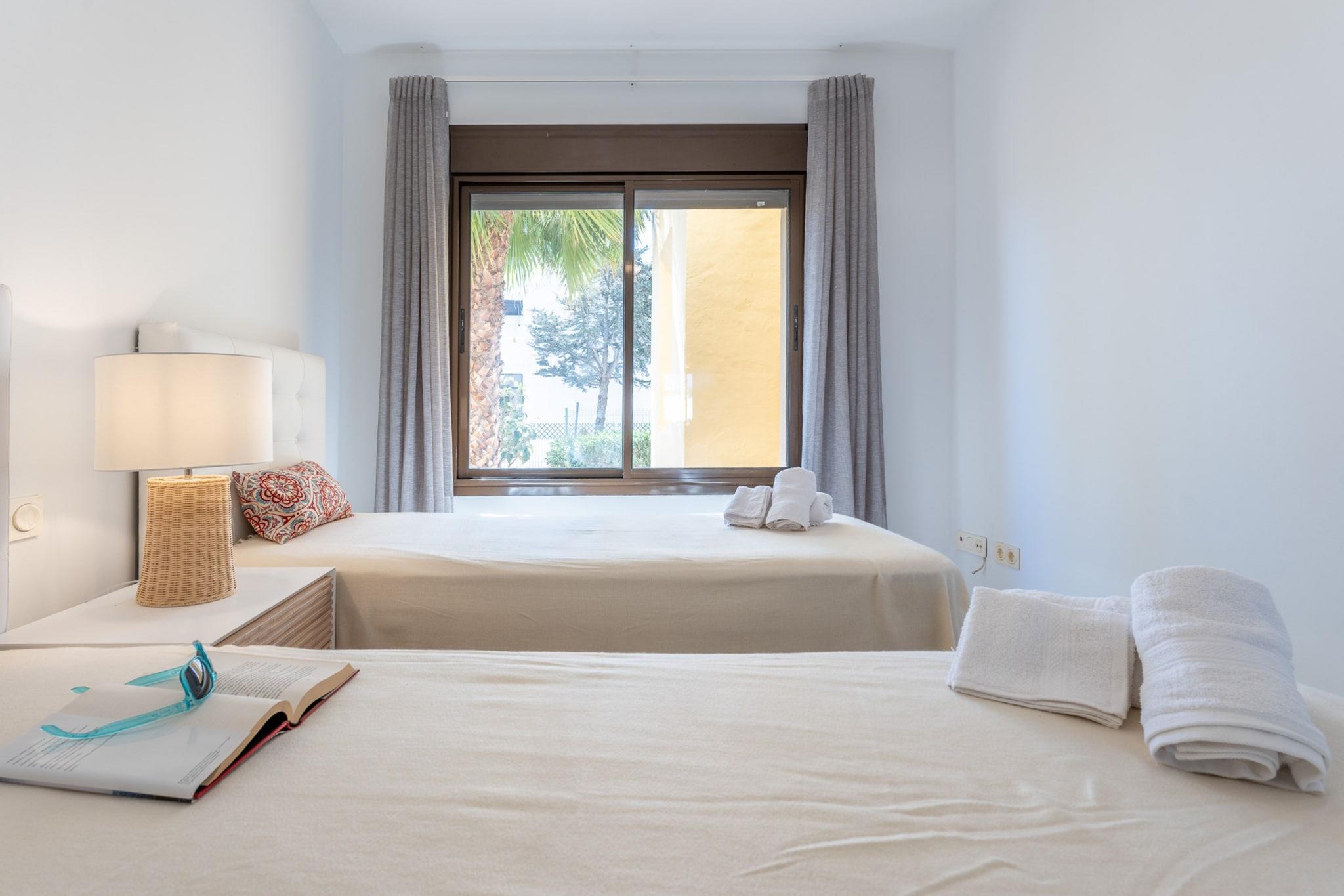 Duquesa Village ligger i Manilva, i Duquesa-området, ved siden af Duquesa golfbane. Det er kun 4 minutter i bil og 25 minutter til fods fra de smukke og uspolerede strande i Manilva og Duquesa-marinaen med dens mange barer og restauranter. Også, hvis du er en golfelsker, er Duquesa golfbanen bogstaveligt talt lige rundt om hjørnet, og der er mange andre inden for en kort køretur. Sabinillas bymidte er 7 minutters kørsel eller en behagelig 40 minutters gåtur (du kan gå langs promenaden, når du kommer til havnen). Her finder du banker, apoteker, tøjbutikker, byggemarkeder mv. Der er også et godt udvalg af barer og restauranter i Monte Duquesa, kun 15 minutters gang væk, og et lille supermarked i havnen i Duquesa eller Mercadona og Eroski, begge 5 minutter væk i bil. Hvis du ønsker at besøge omgivelserne, er byer som San Roque, Sotogrande, Tarifa eller Gibraltar kun 15/20 km væk. Samt Gibraltar lufthavn; Det er tættest på Duquesa Village. Lejligheden har to soveværelser og to badeværelser, indrettet i moderne stil, med WIFI, aircondition, fuldt udstyret køkken, master bedroom med privat badeværelse og en overdækket terrasse med udsigt over poolen; hvoraf gratis adgang er tilladt for gæster.