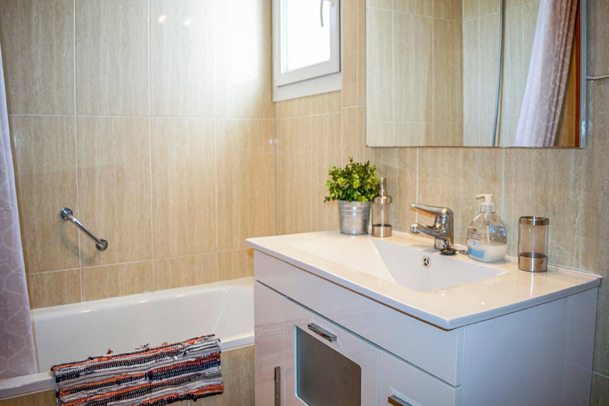 På 1. etage: (Stue(dobbeltsovesofa, Fjernsyn, sofahjørne), Køkken(elkedel, brødrister, kaffemaskine, espressomaskine, ovn, mikrobølgeovn, opvaskemaskine , køle-fryseskab, vaskemaskine), soveværelse(dobbeltseng), soveværelse(2x enkeltseng), badeværelse(badekar med bruser, håndvask, toilet, bidet, føntørrer), badeværelse(bruser, håndvask, toilet), varme, klimaanlæg, 3x terrasse(privat, indhegnet), havemøbler, liggestole, barneseng, strygebræt, strygejern, loungemøbler) garage, parkering, swimmingpool(deles med andre gæster, indhegnet, opened from Mar upto and including Oct)