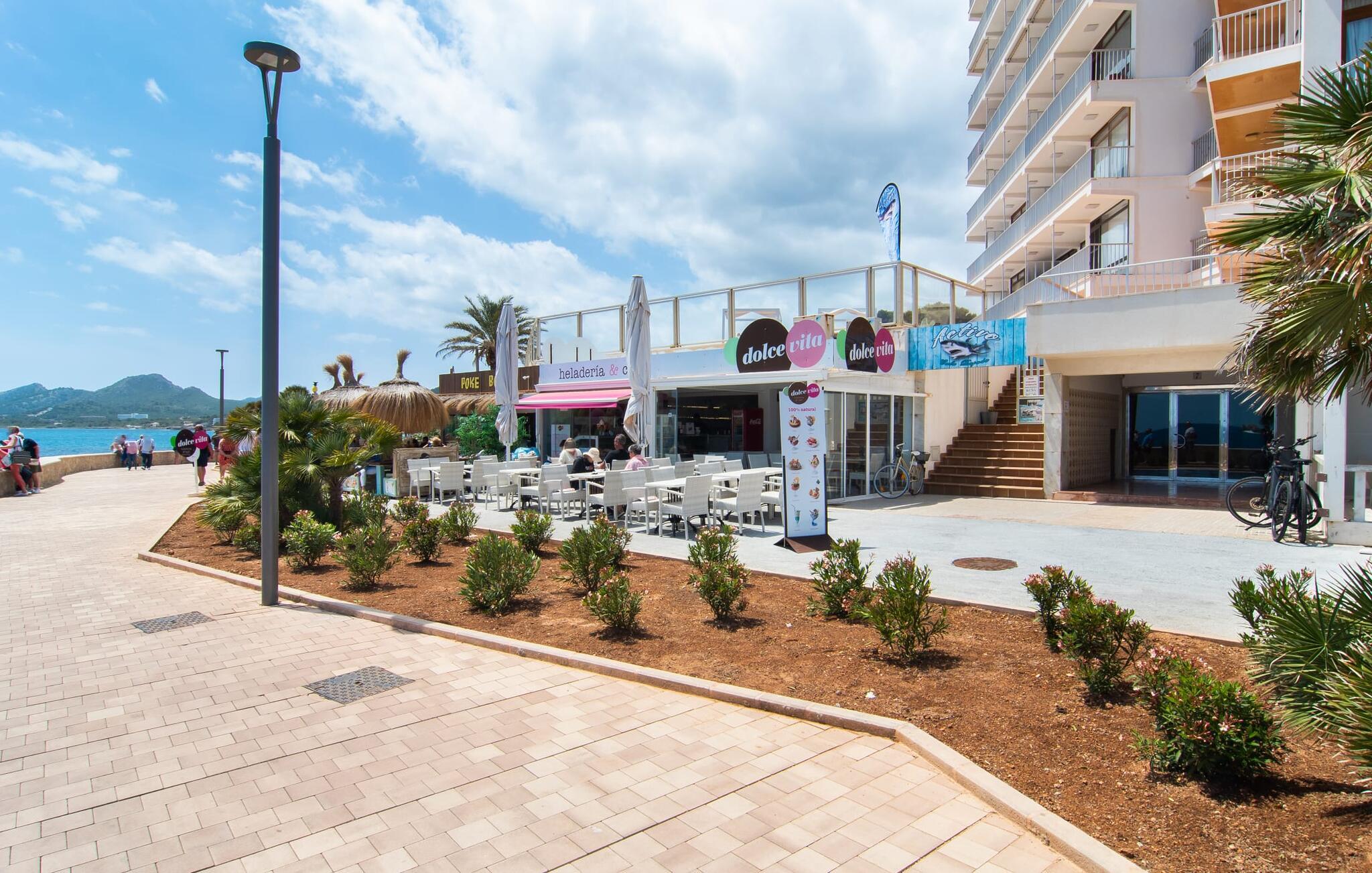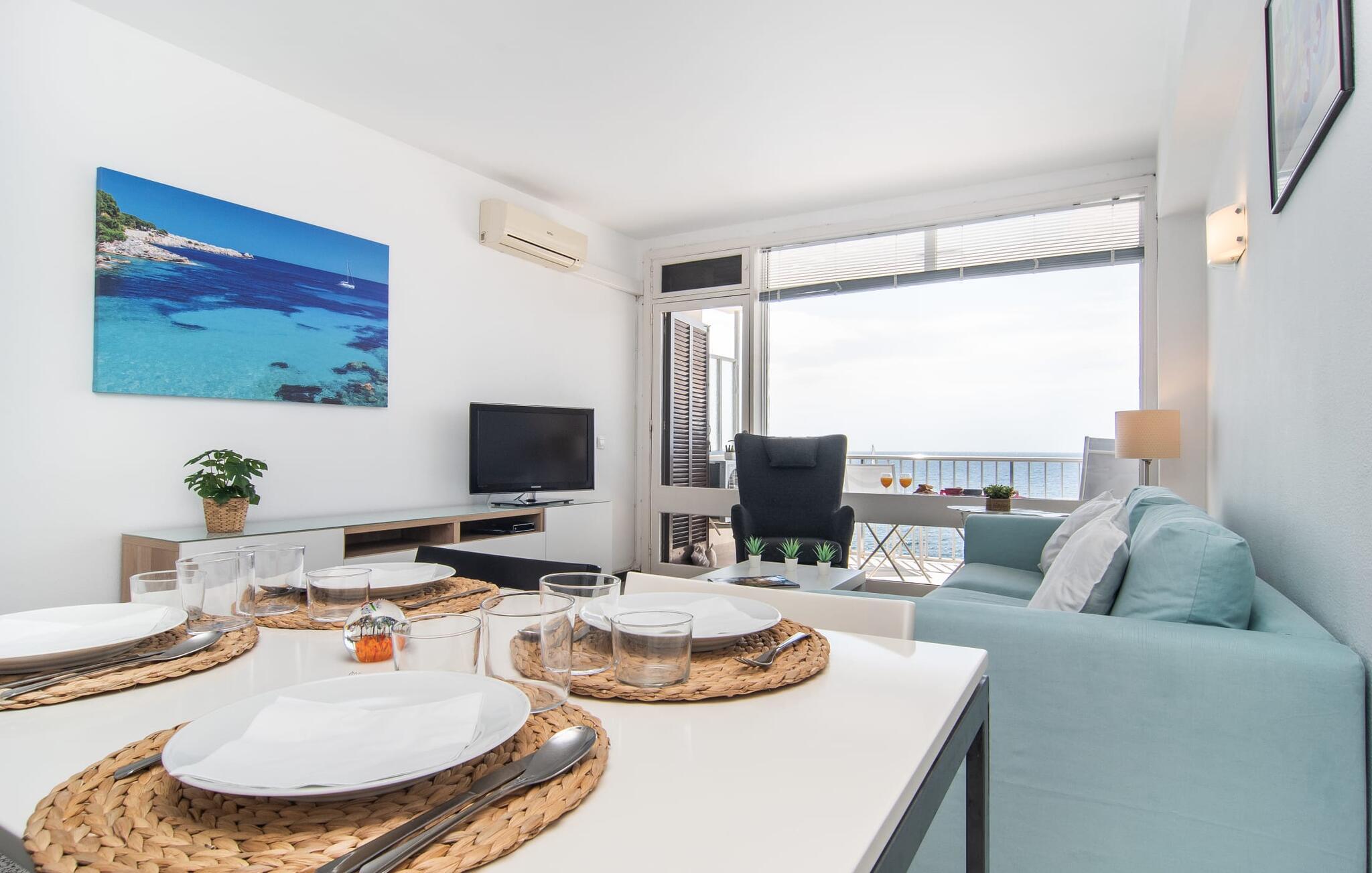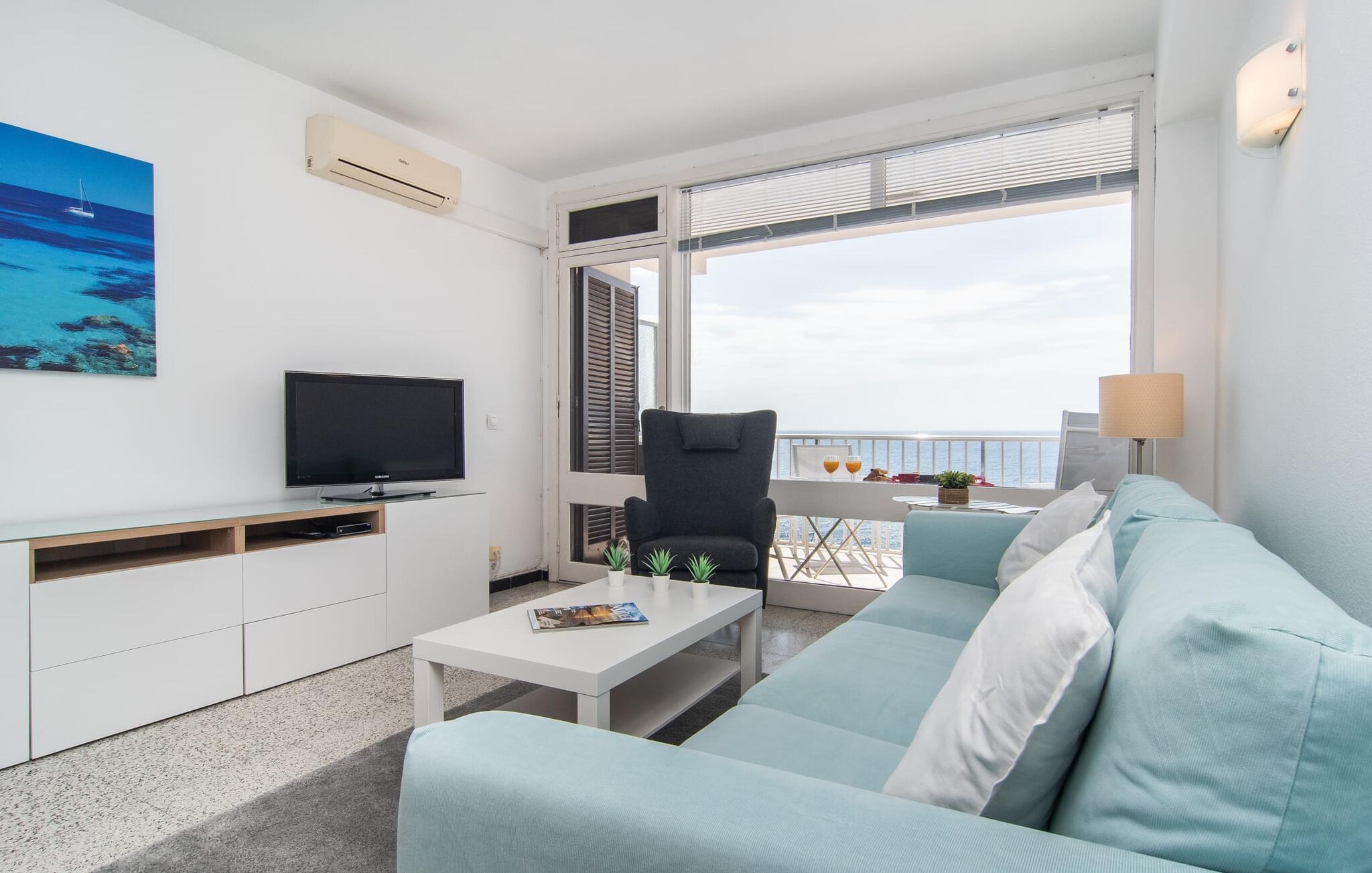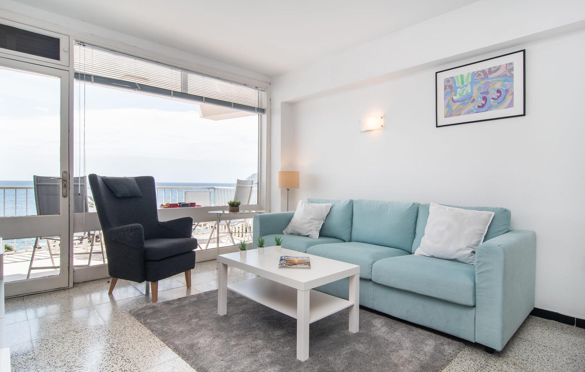 Lejer I ferielejligheden “Mar Blava” på Mallorcas østkyst, kan I nærmest hænge fødderne i havet, mens I spiser morgenmad på balkonen. Middelhavet er kun 25 meter væk herfra. Hvis det stadig er for langt for jer, skal I blot forfriske jer selv i den store fælles pool - den er kun to etager under jeres lejlighed og er omgivet af en rummelig solterrasse med vindbeskyttelse og en smuk udsigt over havet. Alternativt kan I tage en afslappet spadseretur langs strandpromenaden, som fører til den smukke sandstrand Son Moll, nord for marinaen. Takket være ferielejlighedens centrale beliggenhed kan I nemt fordybe jer i det farverige natteliv i Cala Ratjada, selv uden bil eller taxa. Den lyst designede ferielejlighed har to soveværelser, et fuldt udstyret køkken med en luge, et badeværelse med bruser og en stue med spiseplads. Fra stuen har I en smuk havudsigt; Balkonen byder også på udsigt over havnefronten og den fælles pool. Både stuen og de to soveværelser er udstyret med aircondition. Ferielejligheden ligger i et lejlighedskompleks på den første sølinje i Cala Ratjada på Mallorcas østkyst. Den lille havn, butikker, barer og restauranter ligger i umiddelbar nærhed. I kan nå Son Moll-stranden på cirka 10 minutter til fods; Den større sandstrand i Cala Agulla ligger 7 minutters kørsel fra lejligheden. Bemærk venligst, at denne ejendom ikke accepterer ungdomsgrupper eller polterabender. En ungdomsgruppe på denne ejendom består af personer på 25 år eller derunder. Book ikke denne ejendom, hvis I er en ungdomsgruppe eller en polterabendgruppe, da jeres reservation vil blive afvist, når den er booket, hvilket også kan være tilfældet ved ankomst til ejendommen eller under jeres ophold, og I vil ikke modtage en refusion.
