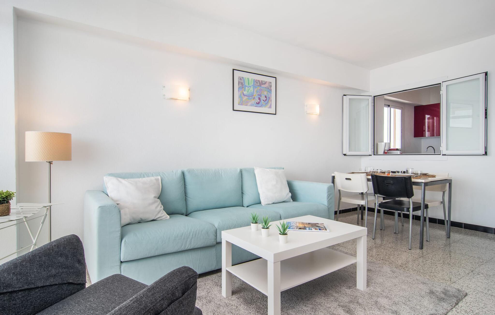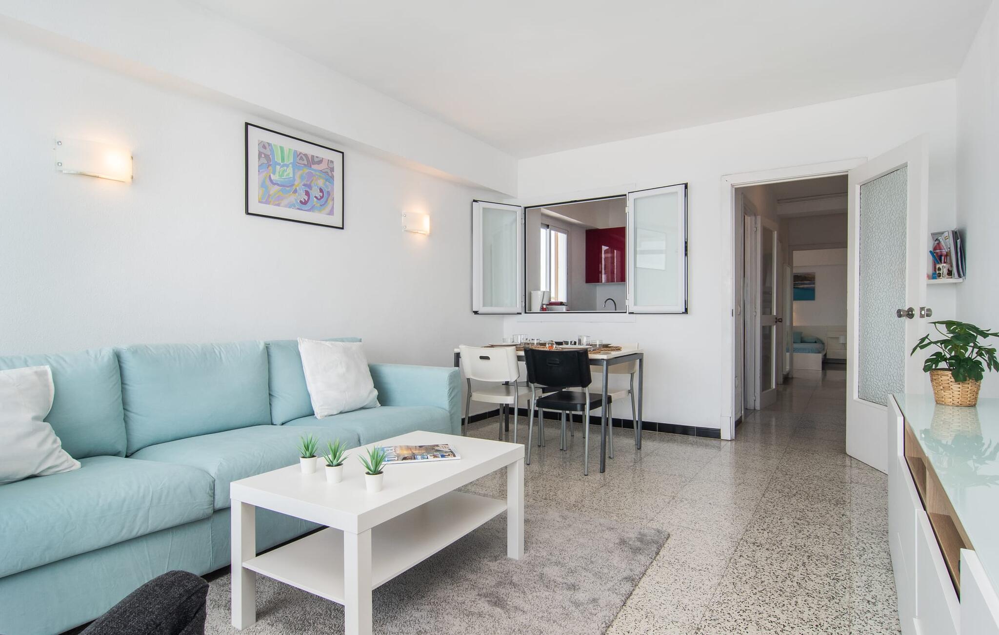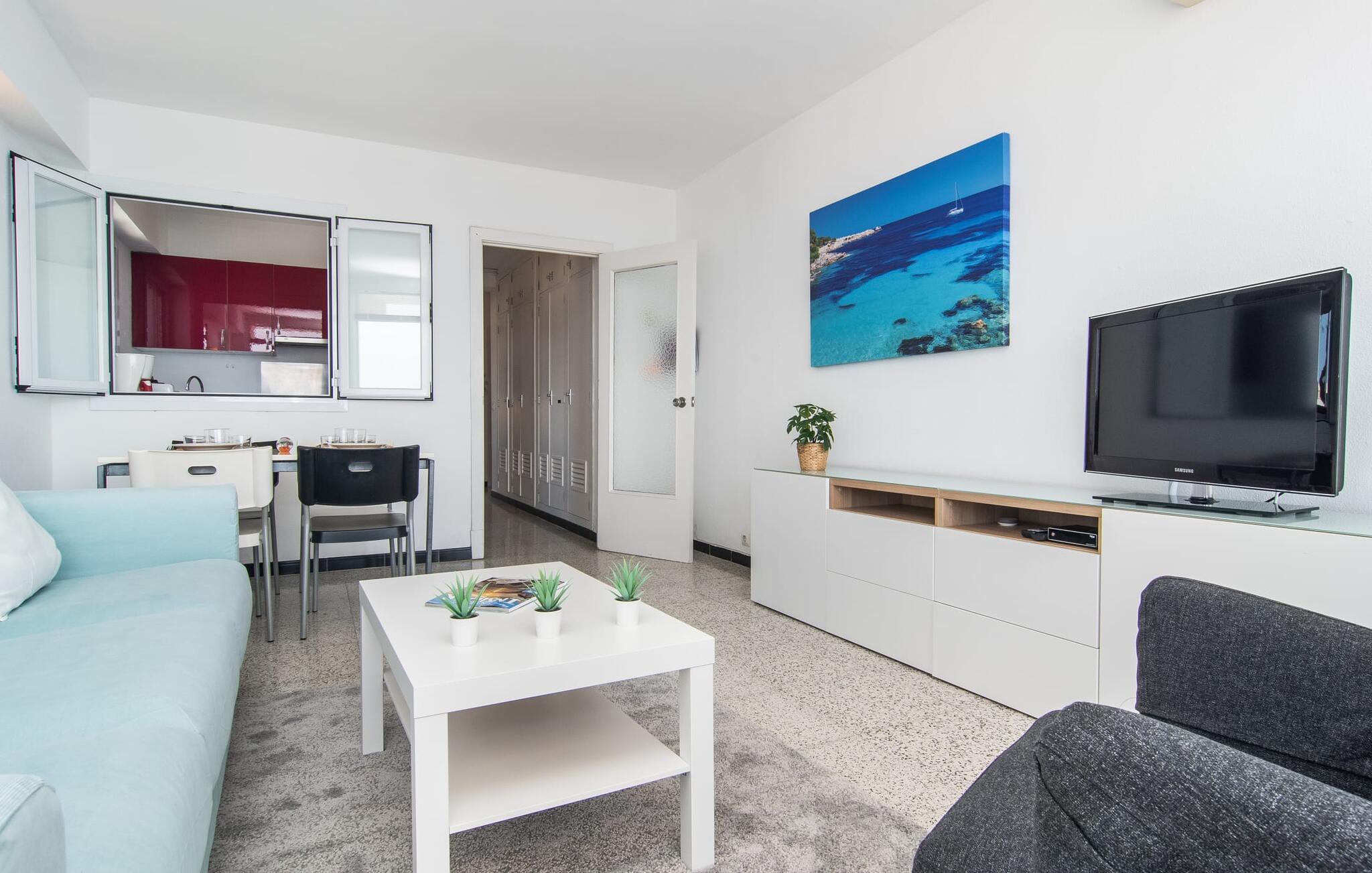 Lejer I ferielejligheden “Mar Blava” på Mallorcas østkyst, kan I nærmest hænge fødderne i havet, mens I spiser morgenmad på balkonen. Middelhavet er kun 25 meter væk herfra. Hvis det stadig er for langt for jer, skal I blot forfriske jer selv i den store fælles pool - den er kun to etager under jeres lejlighed og er omgivet af en rummelig solterrasse med vindbeskyttelse og en smuk udsigt over havet. Alternativt kan I tage en afslappet spadseretur langs strandpromenaden, som fører til den smukke sandstrand Son Moll, nord for marinaen. Takket være ferielejlighedens centrale beliggenhed kan I nemt fordybe jer i det farverige natteliv i Cala Ratjada, selv uden bil eller taxa. Den lyst designede ferielejlighed har to soveværelser, et fuldt udstyret køkken med en luge, et badeværelse med bruser og en stue med spiseplads. Fra stuen har I en smuk havudsigt; Balkonen byder også på udsigt over havnefronten og den fælles pool. Både stuen og de to soveværelser er udstyret med aircondition. Ferielejligheden ligger i et lejlighedskompleks på den første sølinje i Cala Ratjada på Mallorcas østkyst. Den lille havn, butikker, barer og restauranter ligger i umiddelbar nærhed. I kan nå Son Moll-stranden på cirka 10 minutter til fods; Den større sandstrand i Cala Agulla ligger 7 minutters kørsel fra lejligheden. Bemærk venligst, at denne ejendom ikke accepterer ungdomsgrupper eller polterabender. En ungdomsgruppe på denne ejendom består af personer på 25 år eller derunder. Book ikke denne ejendom, hvis I er en ungdomsgruppe eller en polterabendgruppe, da jeres reservation vil blive afvist, når den er booket, hvilket også kan være tilfældet ved ankomst til ejendommen eller under jeres ophold, og I vil ikke modtage en refusion.