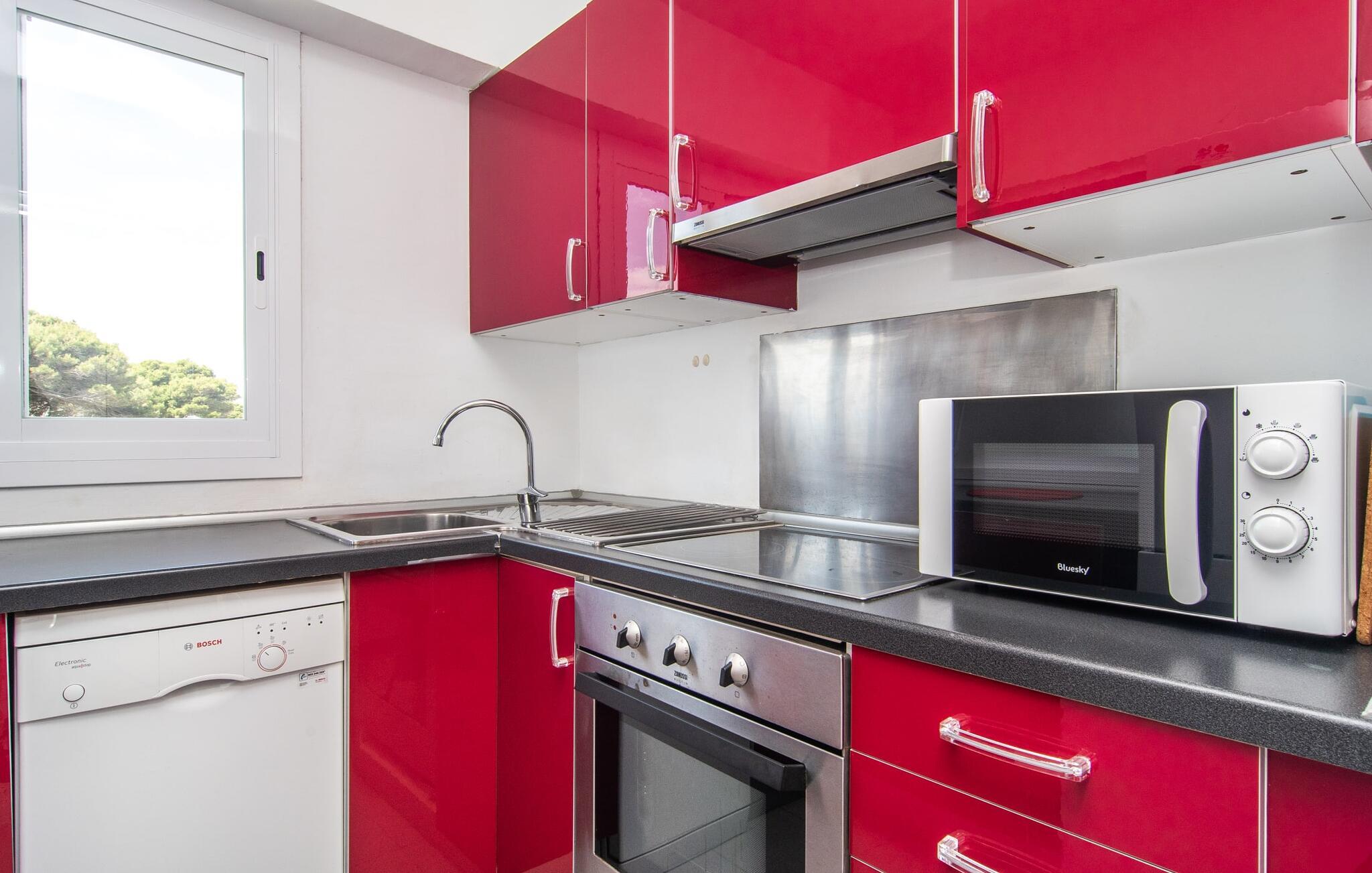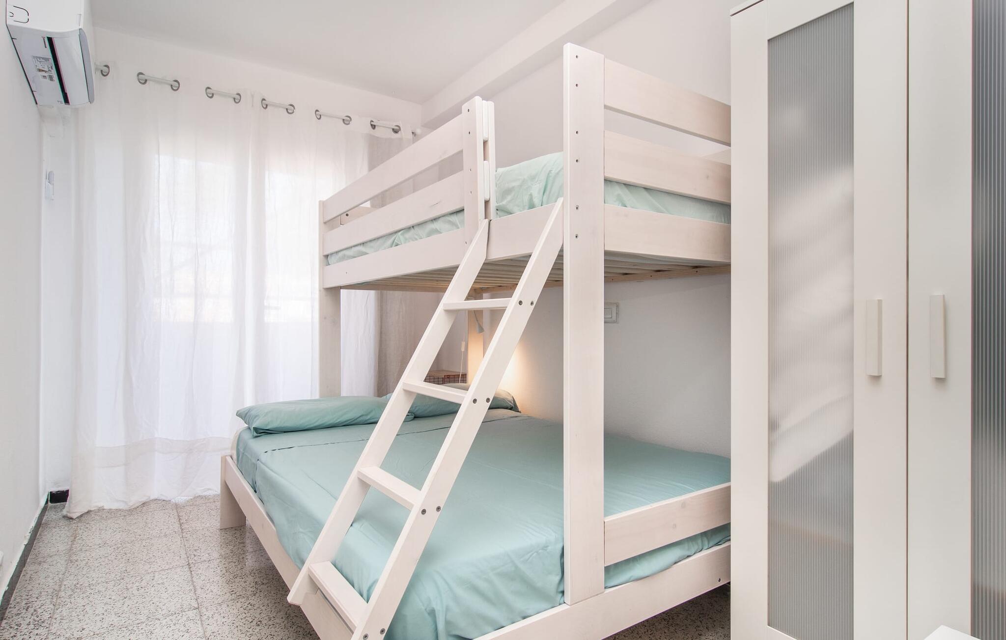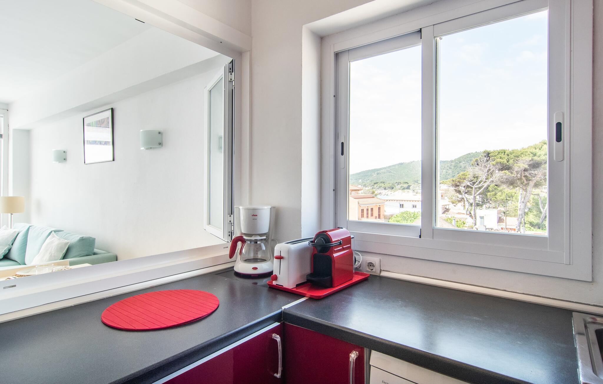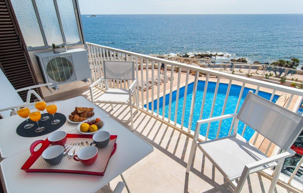 Lejer I ferielejligheden “Mar Blava” på Mallorcas østkyst, kan I nærmest hænge fødderne i havet, mens I spiser morgenmad på balkonen. Middelhavet er kun 25 meter væk herfra. Hvis det stadig er for langt for jer, skal I blot forfriske jer selv i den store fælles pool - den er kun to etager under jeres lejlighed og er omgivet af en rummelig solterrasse med vindbeskyttelse og en smuk udsigt over havet. Alternativt kan I tage en afslappet spadseretur langs strandpromenaden, som fører til den smukke sandstrand Son Moll, nord for marinaen. Takket være ferielejlighedens centrale beliggenhed kan I nemt fordybe jer i det farverige natteliv i Cala Ratjada, selv uden bil eller taxa. Den lyst designede ferielejlighed har to soveværelser, et fuldt udstyret køkken med en luge, et badeværelse med bruser og en stue med spiseplads. Fra stuen har I en smuk havudsigt; Balkonen byder også på udsigt over havnefronten og den fælles pool. Både stuen og de to soveværelser er udstyret med aircondition. Ferielejligheden ligger i et lejlighedskompleks på den første sølinje i Cala Ratjada på Mallorcas østkyst. Den lille havn, butikker, barer og restauranter ligger i umiddelbar nærhed. I kan nå Son Moll-stranden på cirka 10 minutter til fods; Den større sandstrand i Cala Agulla ligger 7 minutters kørsel fra lejligheden. Bemærk venligst, at denne ejendom ikke accepterer ungdomsgrupper eller polterabender. En ungdomsgruppe på denne ejendom består af personer på 25 år eller derunder. Book ikke denne ejendom, hvis I er en ungdomsgruppe eller en polterabendgruppe, da jeres reservation vil blive afvist, når den er booket, hvilket også kan være tilfældet ved ankomst til ejendommen eller under jeres ophold, og I vil ikke modtage en refusion.