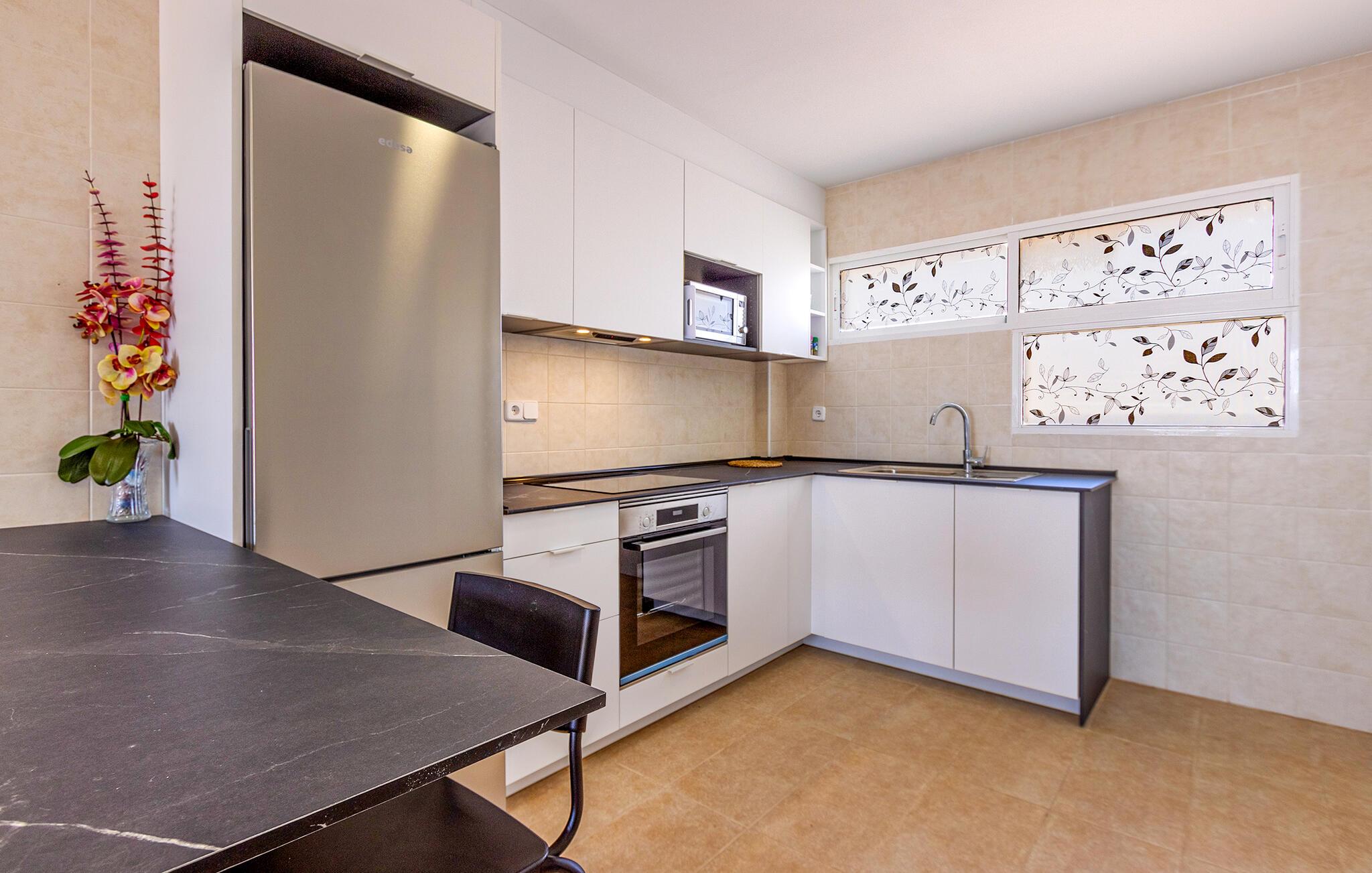 Denne praktiske ferielejlighed er kun få skridt fra berømte Mar Menor og lægger op til et uforglemmeligt ophold i Spanien med masser af sol og badesjov. Den praktiske indretning og havudsigten fra balkonen på 3. sal skaber de perfekte rammer til at slappe af. Nyd morgenmaden i opholdsstuen eller udenfor i den friske luft. Senere kan I læne jer godt tilbage i den komfortable sofa.