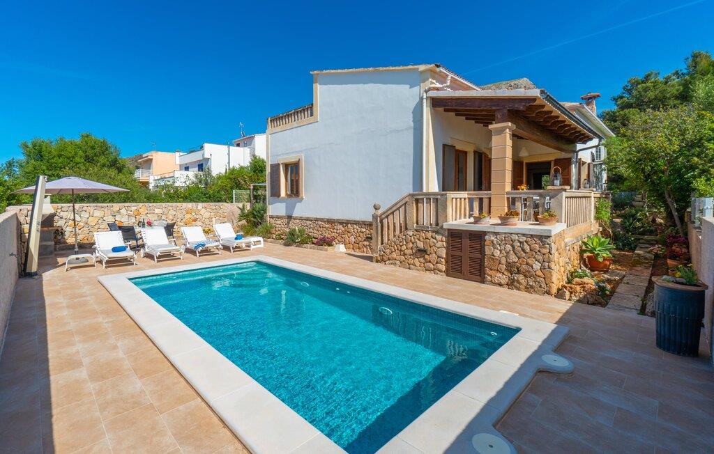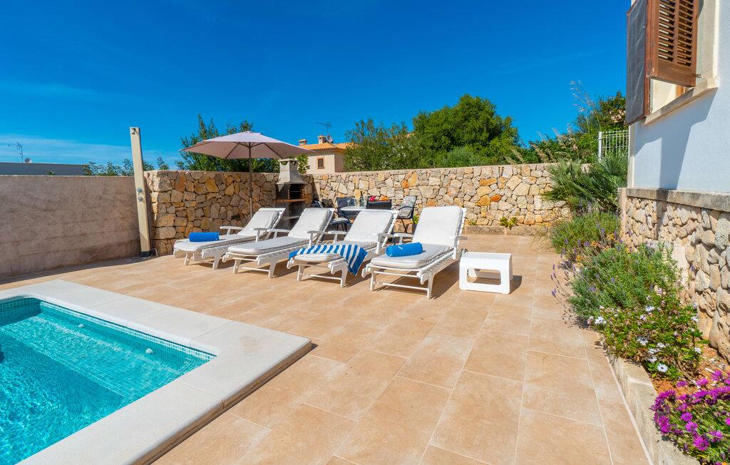 Hvad værdsætter I mest ved jeres ferievilla på Mallorca? Nærhed til stranden? Gode vandrestier i området? lange solbade? En rolig beliggenhed? Dejlige restauranter ved havet i gåafstand? Hvis I ikke vil gå glip af alt dette, kan villaen "Mar i Cel" være lige noget for jer. Den mindste af de to overdækkede terrasser ved indgangen giver en forsmag på den hygge, der venter jer i jeres sommerhus. Den større veranda er vært for et indbydende udendørs spiseområde til lange stearinlys sessioner langt ud i de varme sommernætter. Det nærliggende poolområde ligger i læ for vinden, så I kan få jeres måltider her lige ved siden af grillen. Har I brug for at være endnu tættere på solen? I skal blot gå op ad udvendige trapper til den perfekt placerede tagterrasse på jeres ferievilla. Den vidunderlige udsigt over havet er gratis her! Stueetagens opholdsstue er godt opdelt og har en skøn opholds- og spisestue. Det er udstyret med pejs og aircondition. Vinduerne byder på en vidunderlig udsigt over haven og de nærliggende foden af Ferrutx - et smukt sted at vandre. Både stuen og det tilstødende køkken har direkte adgang til den rummelige veranda. Et af de tre soveværelser har eget badeværelse en suite. De to andre soveområder deler et separat badeværelse med badekar. Villaen "Mar i Cel" er en del af boligområdet Colònia de Sant Pere på Mallorcas østkyst. Marinaen, små supermarkeder og restauranter er inden for nem gåafstand. Den lange naturlige strand Colònia de Sant Pere ligger kun 6 minutters kørsel fra feriehuset. Den smukke by Artà kan nås på 15 minutter i bil. Bemærk venligst, at denne ejendom ikke accepterer ungdomsgrupper eller polterabender. En ungdomsgruppe på denne ejendom består af personer under 30 år. Book ikke denne ejendom, hvis I er en ungdomsgruppe eller en polterabendgruppe, da jeres reservation vil blive afvist, når den er booket, hvilket også kan være tilfældet ved ankomst til ejendommen eller under jeres ophold, og I vil ikke modtage en refusion.