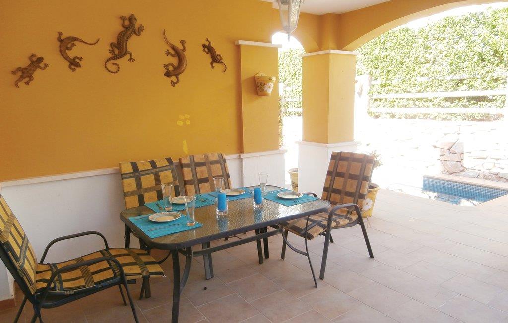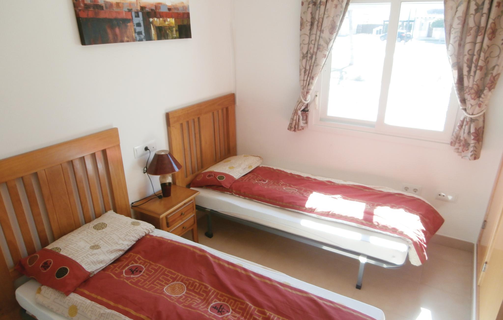 I Mar Menor Golf Resort ligger dette nydelige feriehus på to etager. I stuen er der sove- og badeværelse samt køkken og stue. På grund af den flotte og hyggelige indretning kommer I til at føle jer hjemme med det samme. Fra den smukke solterrasse ovenpå har I udsigt over haveområdet. Her kan I nyde solen og får en forfriskning i den dejlige private pool på de varme sommerdage. Dette feriehus er det helt rigtige sted til en dejlig ferie med familien eller venner og ikke for at glemme: jeres hund!