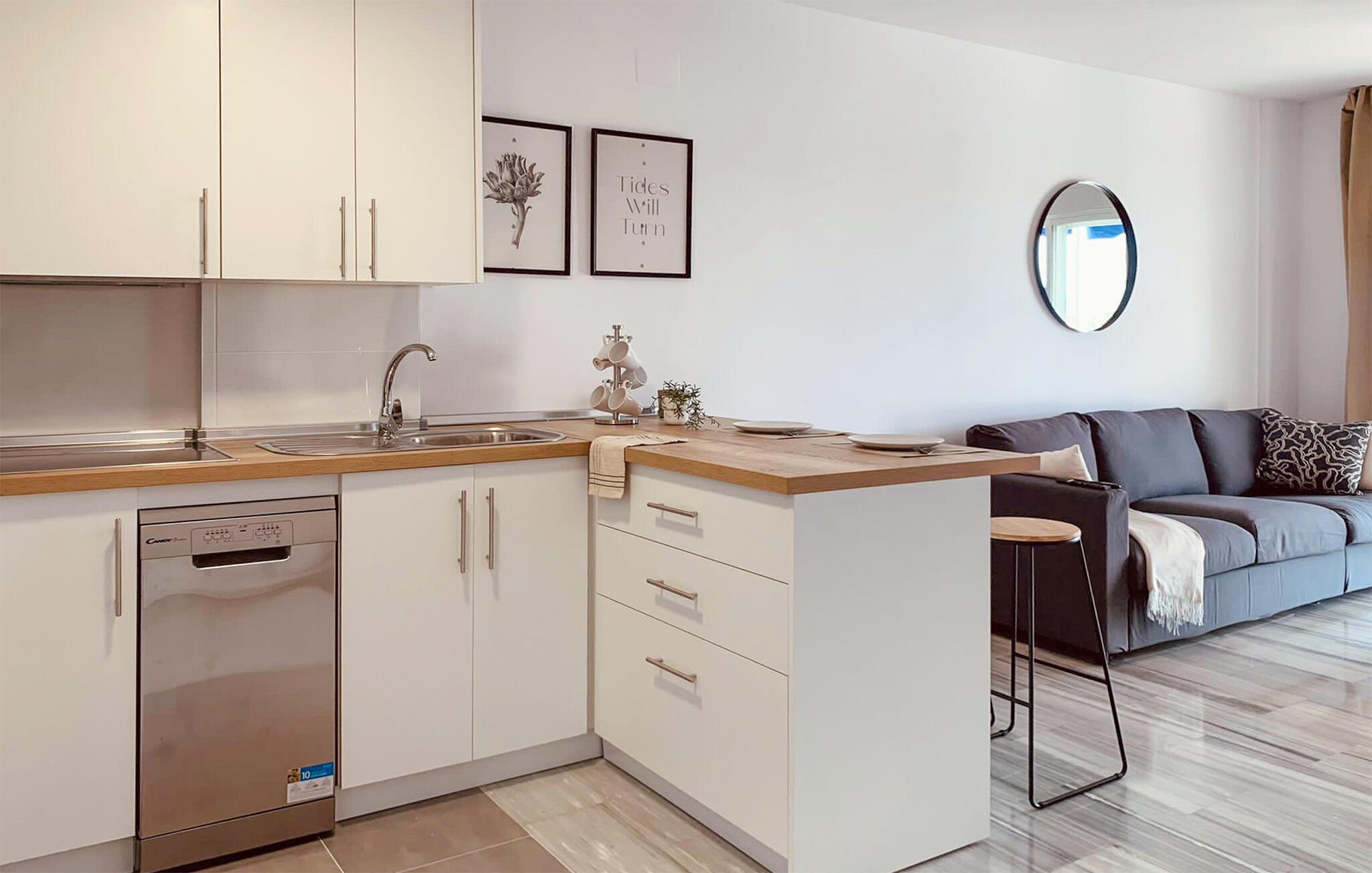 Denne praktisk indrettede ferielejlighed giver jer alle de bekvemmeligheder, I har brug for til et afslappende ophold i Marbella. Begynd dagene med at slappe af med morgenmad på jeres balkon, hvorfra I kan nyde en vidunderlig udsigt over havet. Nyd denne maleriske kulisse og glæd jer til den kommende ferie fuld af svømmesjov. Boligområdet i jeres lejlighed er smagfuldt indrettet og giver plads til hyggelige timer.