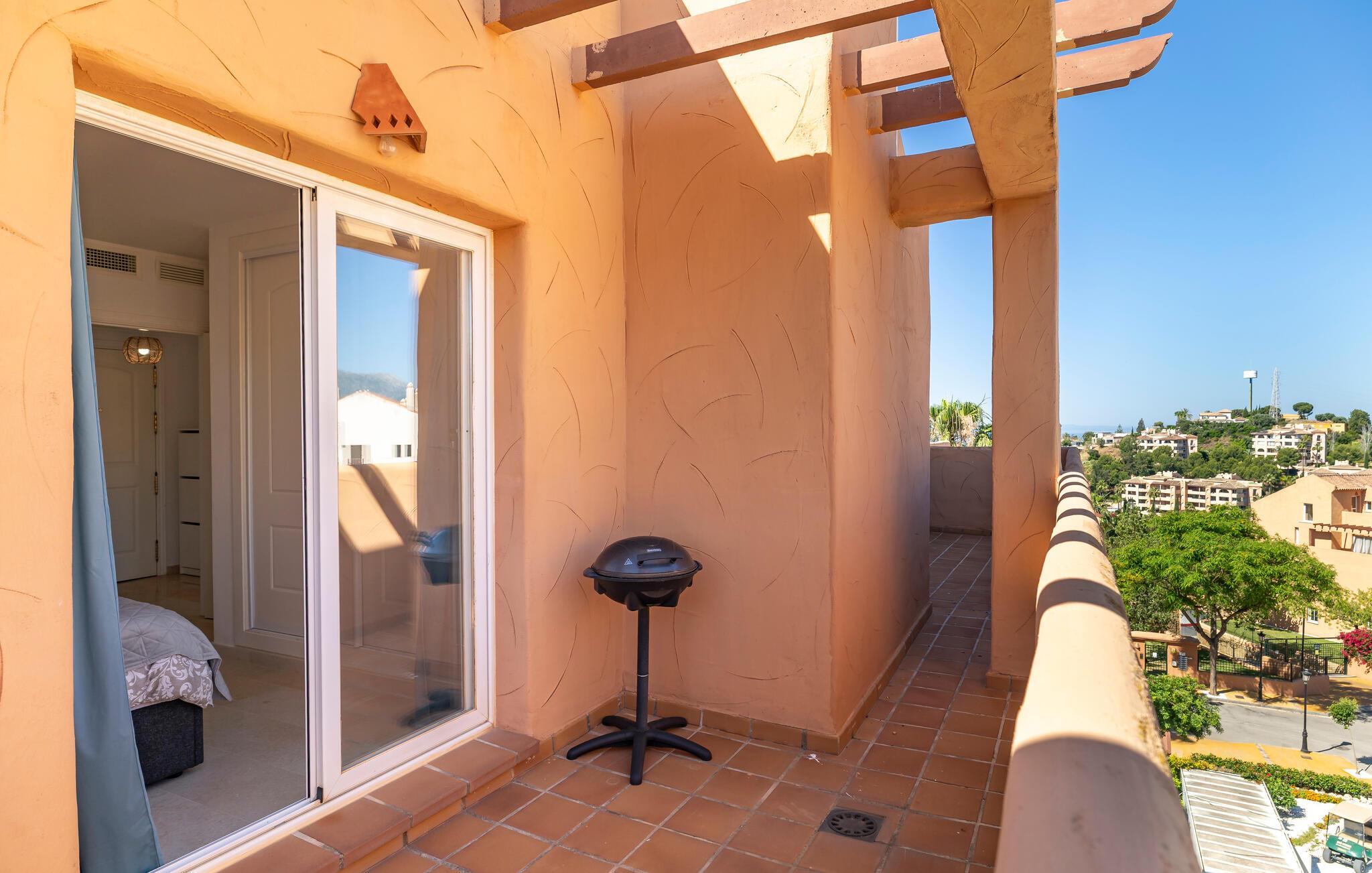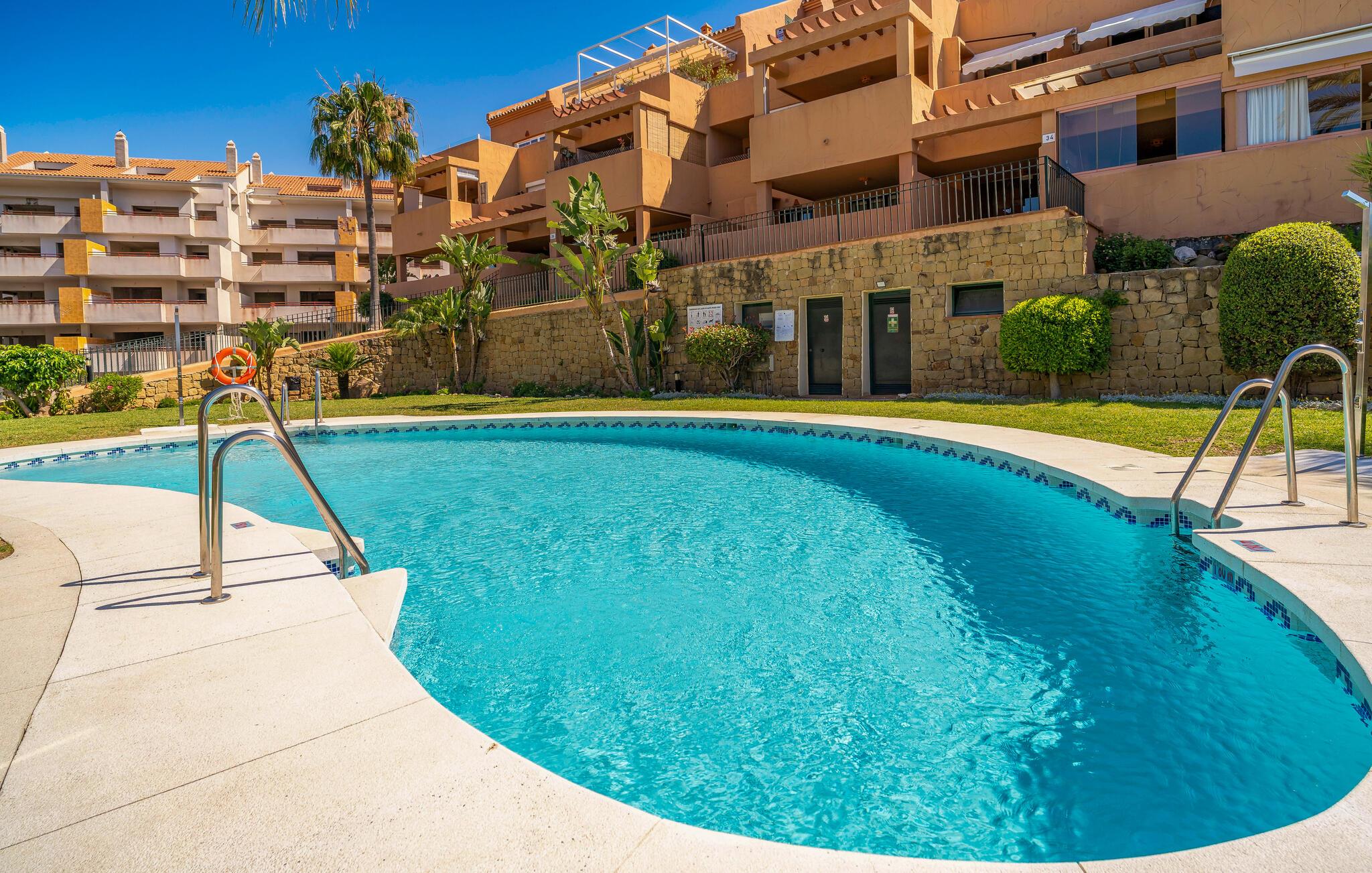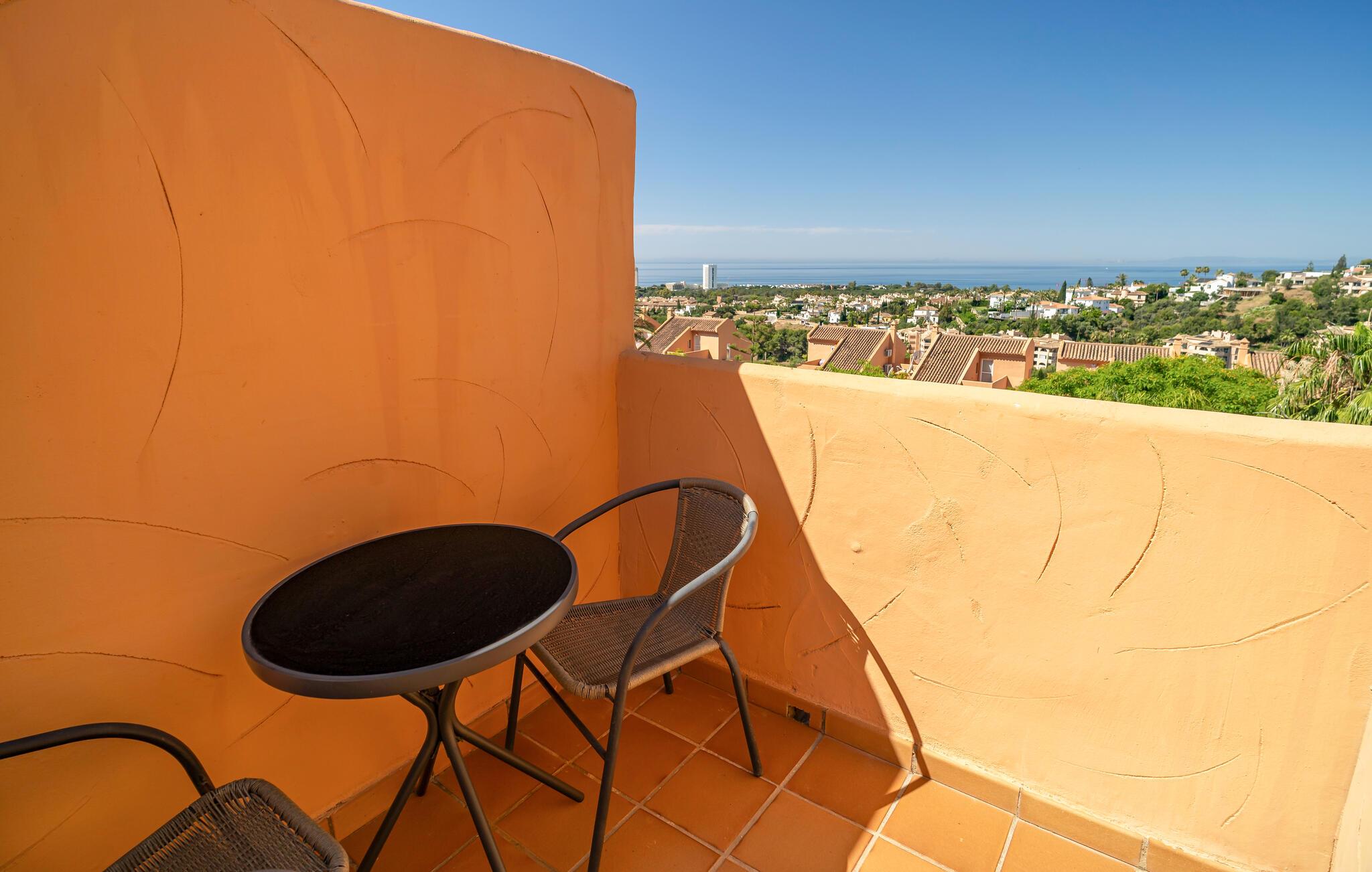 Nyd en solrig ferie i denne komfortable ferielejlighed med havudsigt og adgang til poolen.