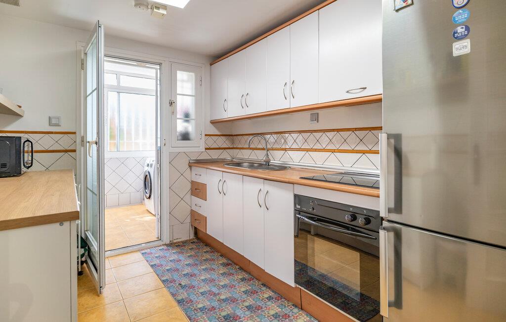 Glæd jer til et indbydende opholdsområde med elegant interiør. Hyg jer på den store sofa, nyd ferietiden fuldt ud, eller spis sammen ved spisebordet. De harmoniske farvenuancer, dekorative detaljer og moderne belysning skaber en elegant stemning i boligen. Tilbered jeres livretter i det separate køkken, som er praktisk indrettet.