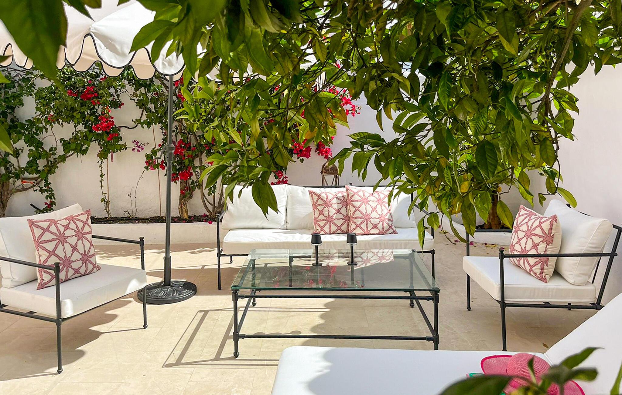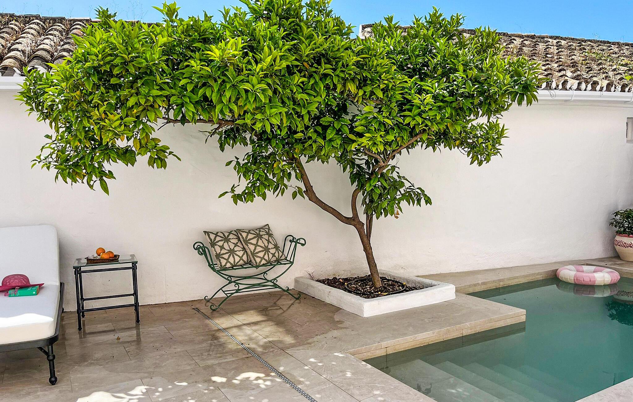 Det rummelige udendørsområde byder på flere terrasser, komfortable siddeområder og middelhavsplanter. Tag en forfriskende dukkert i den private pool og nyd livet på en af ??liggestolene. Nyd morgenmaden med udsigt over kvarterets hustage eller tilbring aftenen i den overdækkede gårdhave, perfekt til socialt samvær.