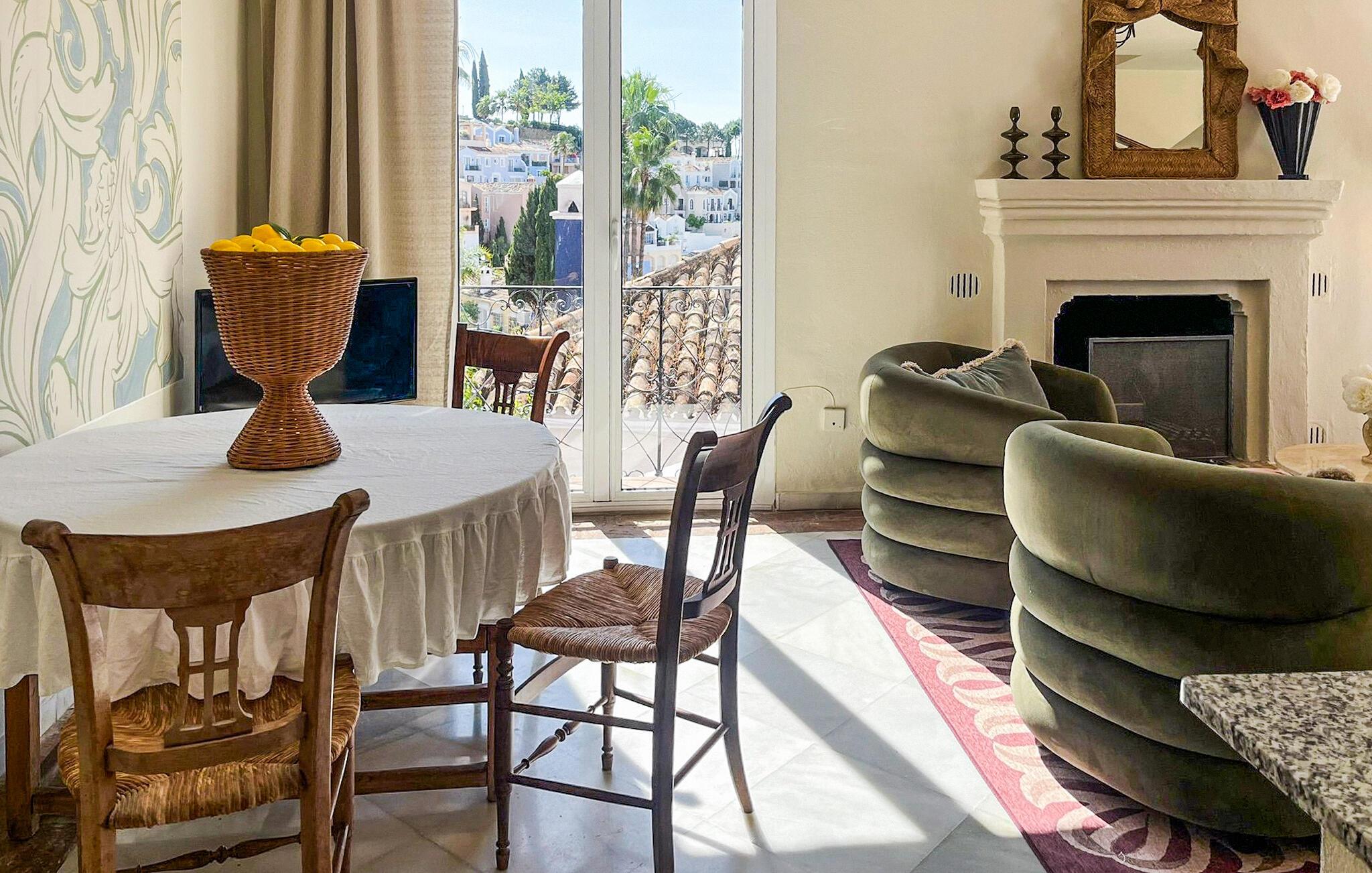 Den høje beliggenhed, udsigten over området og den rolige atmosfære skaber optimale betingelser for en afslappende ferie på Costa del Sol. Husets smagfulde opholdsstue har elegante lænestole, masser af naturligt lys og en dekorativ pejs. Nyd den dejlige spiseplads til fælles måltider og tilbered jeres måltider i det lyse køkken, som har rigelig bordplads og direkte adgang til udendørsområdet. Bagefter kan I slappe af på sofaen og se en god film.