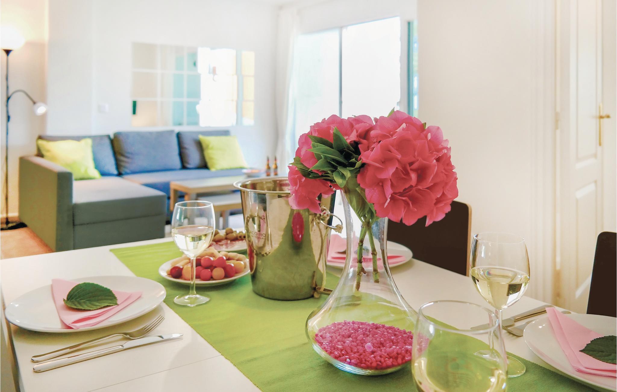 Der er ikke langt til golfbane og lige bag huset er der et grønt anlæg, hvor I kan nyde solen, spille bold mv. Det er ikke usædvanligt at se store grønne papegøjer i træerne.
