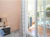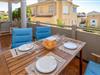 Loungen fører ud til terrassen, som er indrettet med spisebord og stole og 2 liggestole. Det fuldt udstyrede køkken har et morgenbordsbord og stole og et separat bryggers til vaskemaskinen. Der er også en separat filtreret vandhane over vasken, der omdanner hanevand til drikkevand.