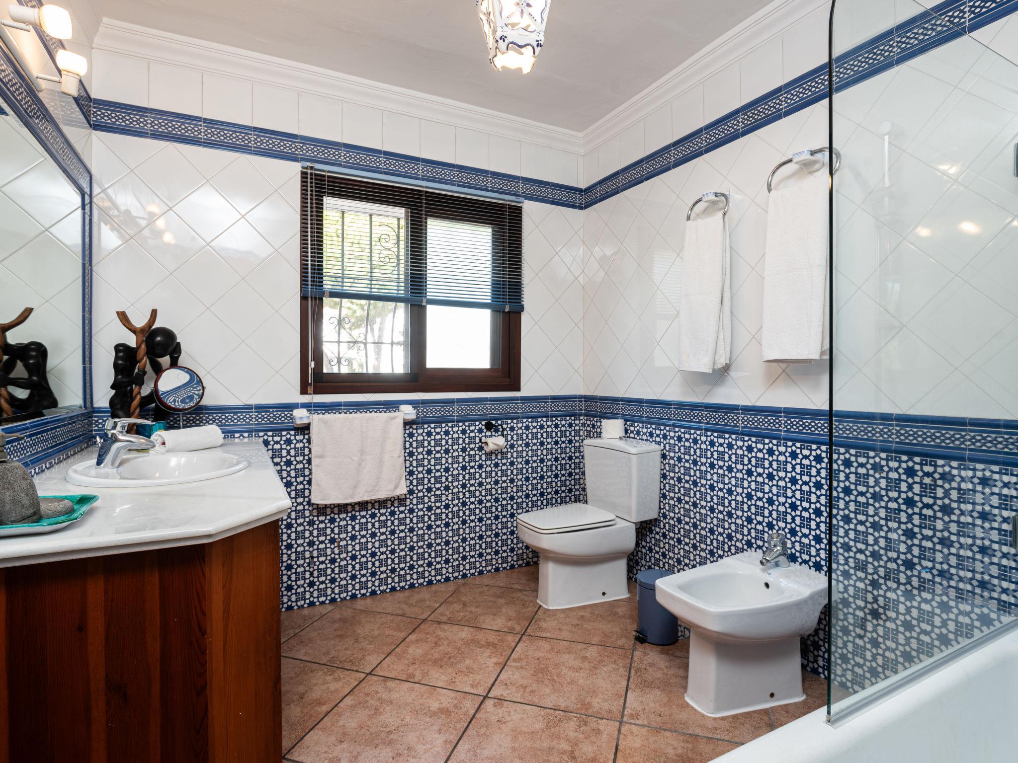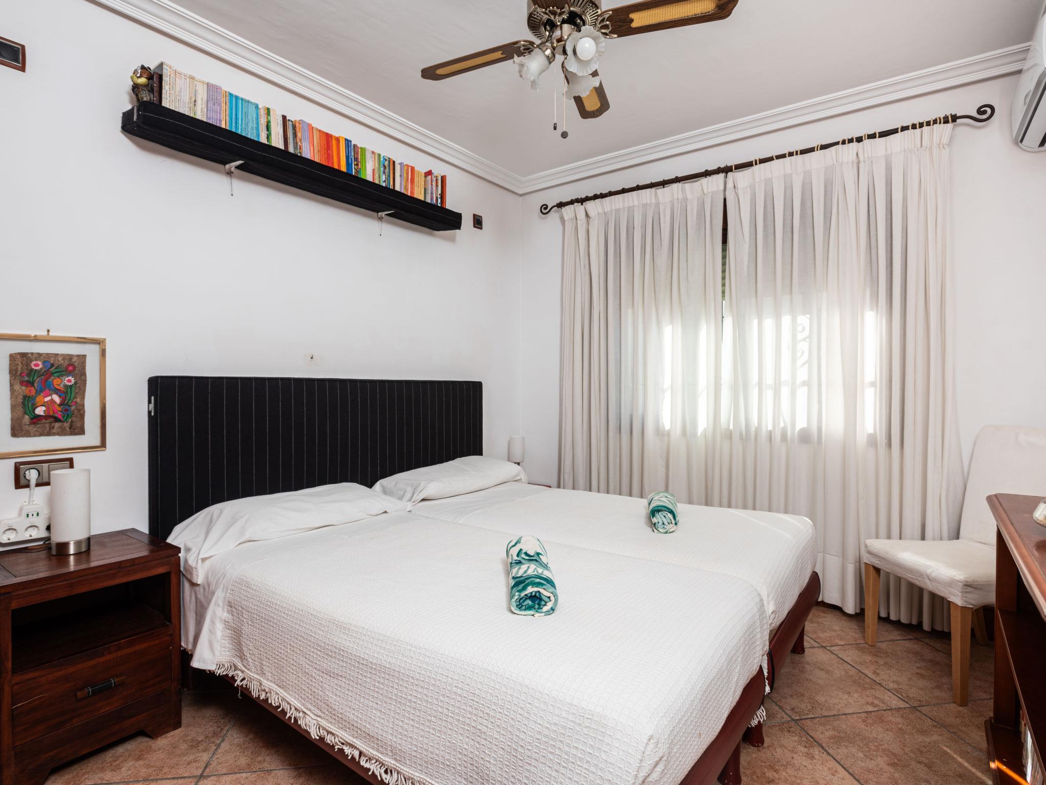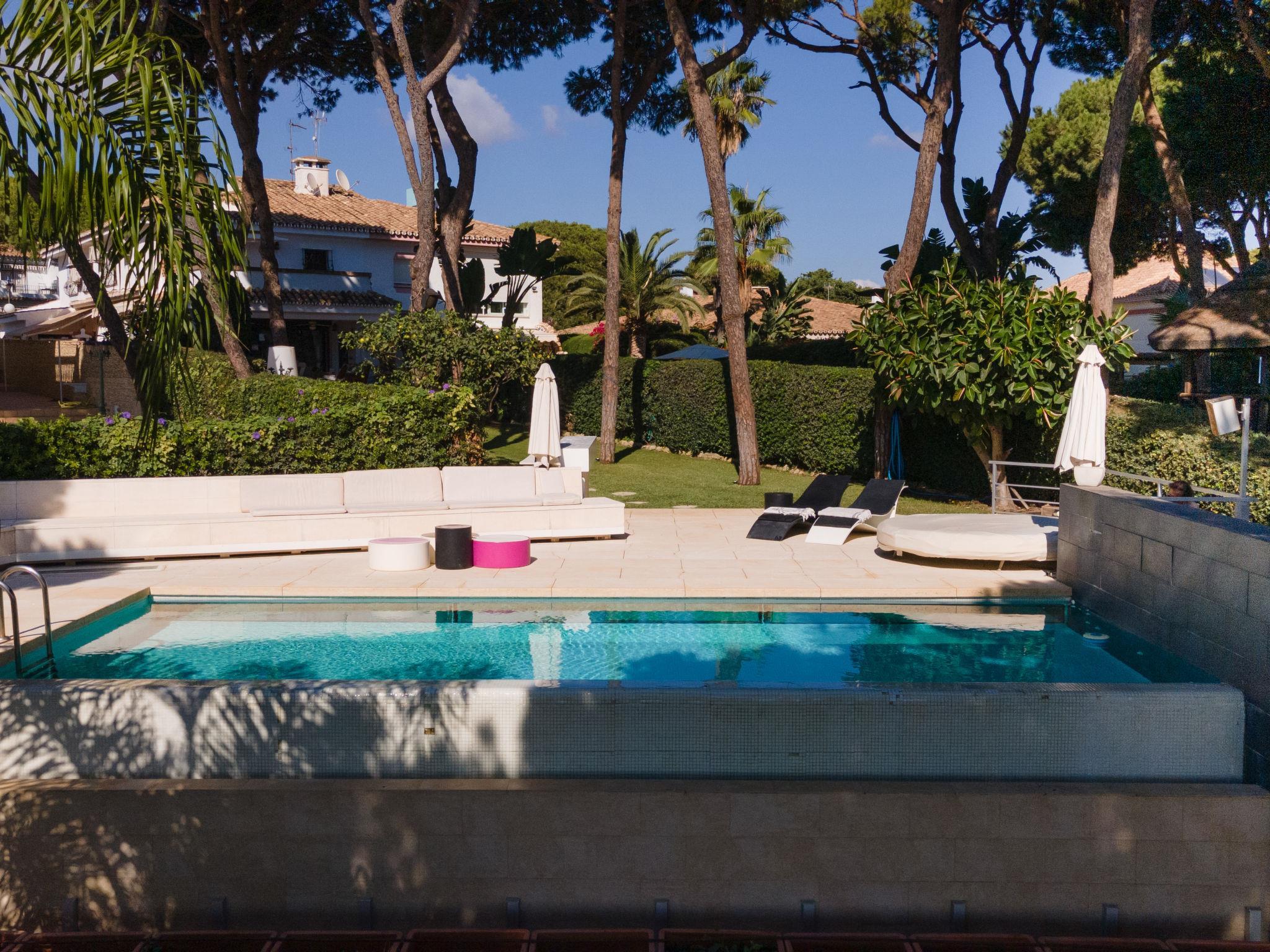 Puerto Cabopino: Large, comfortable semi-detached house "Villa Goval". Outside the resort, 14 km from the centre of Marbella, 50 m from the sea. Private: garden, swimming pool angular (8 x 3 m, depth 145 - 145 cm, seasonal availability: 01.Jan. - 31.Dec.). Supermarket 1 km, shopping centre 1 km, restaurant 200 m, bus stop 300 m, sandy beach 50 m. Golf course (18 hole) 2.7 km, riding stable 5 km. The owner does not accept any youth groups.