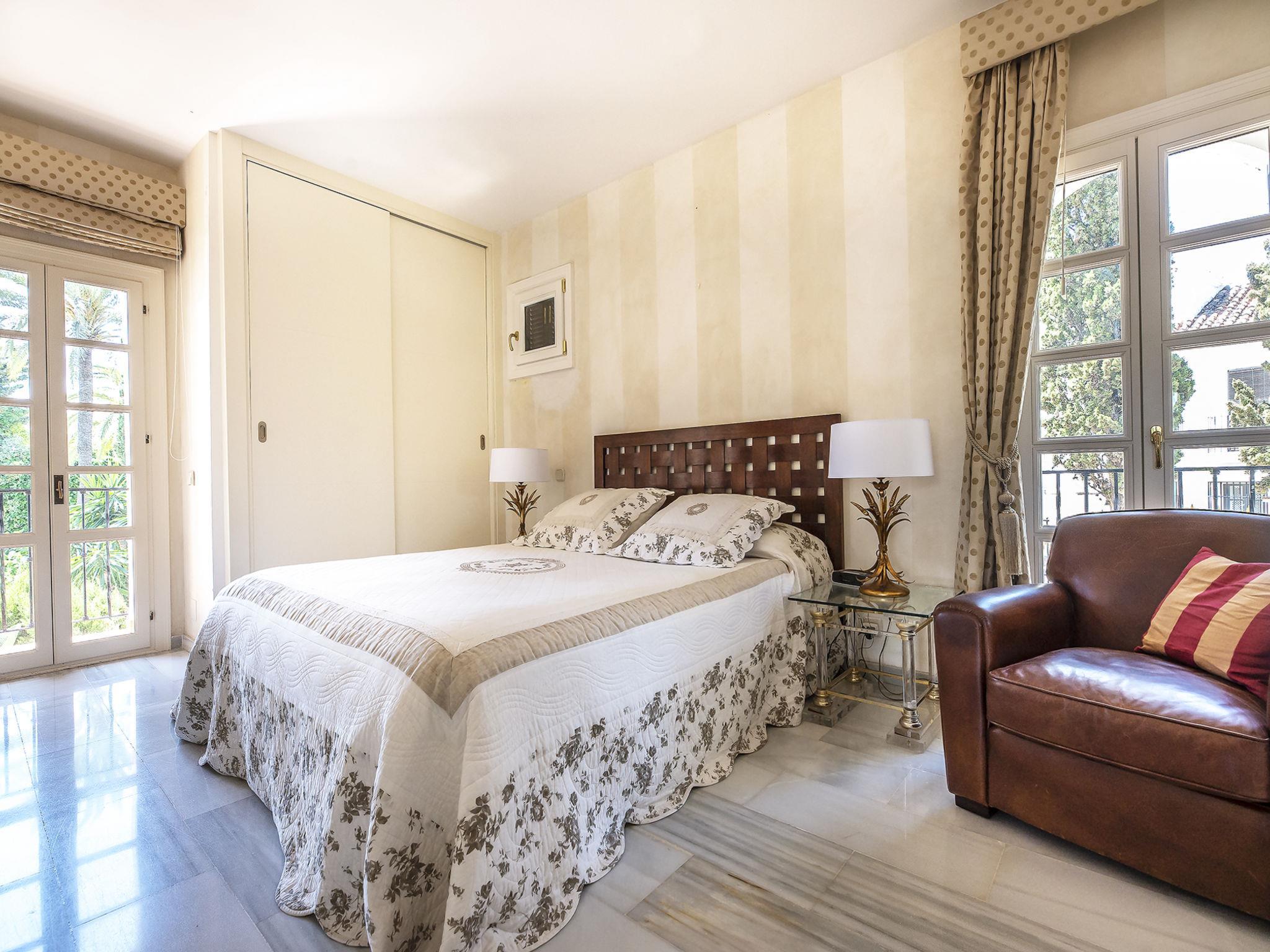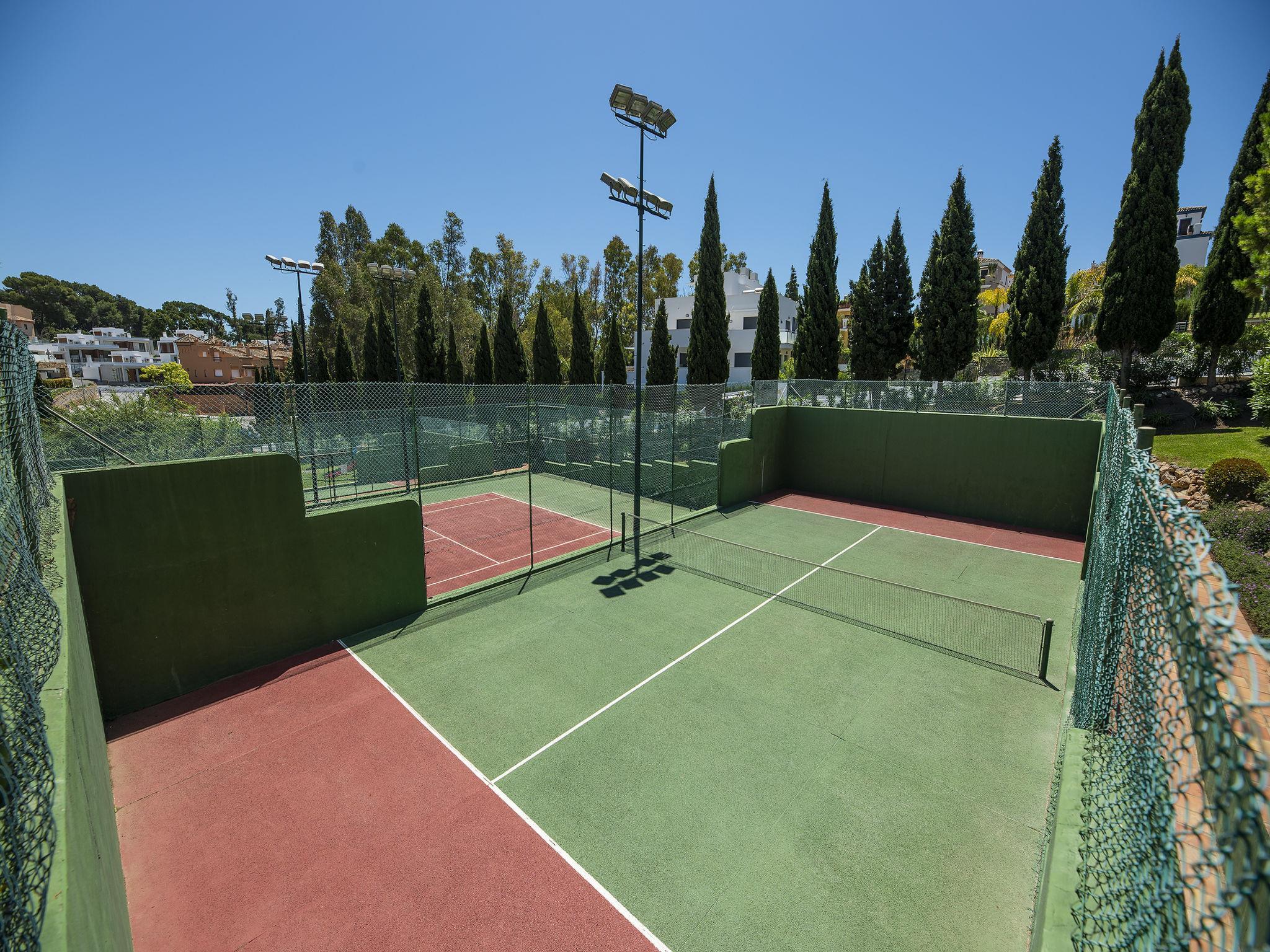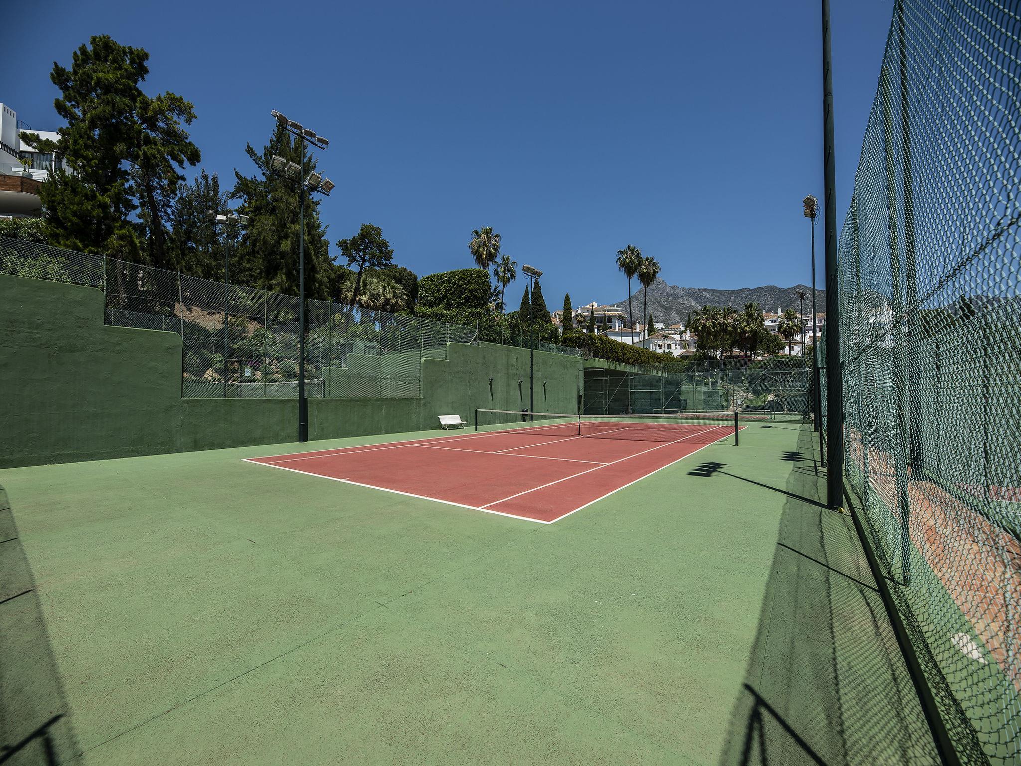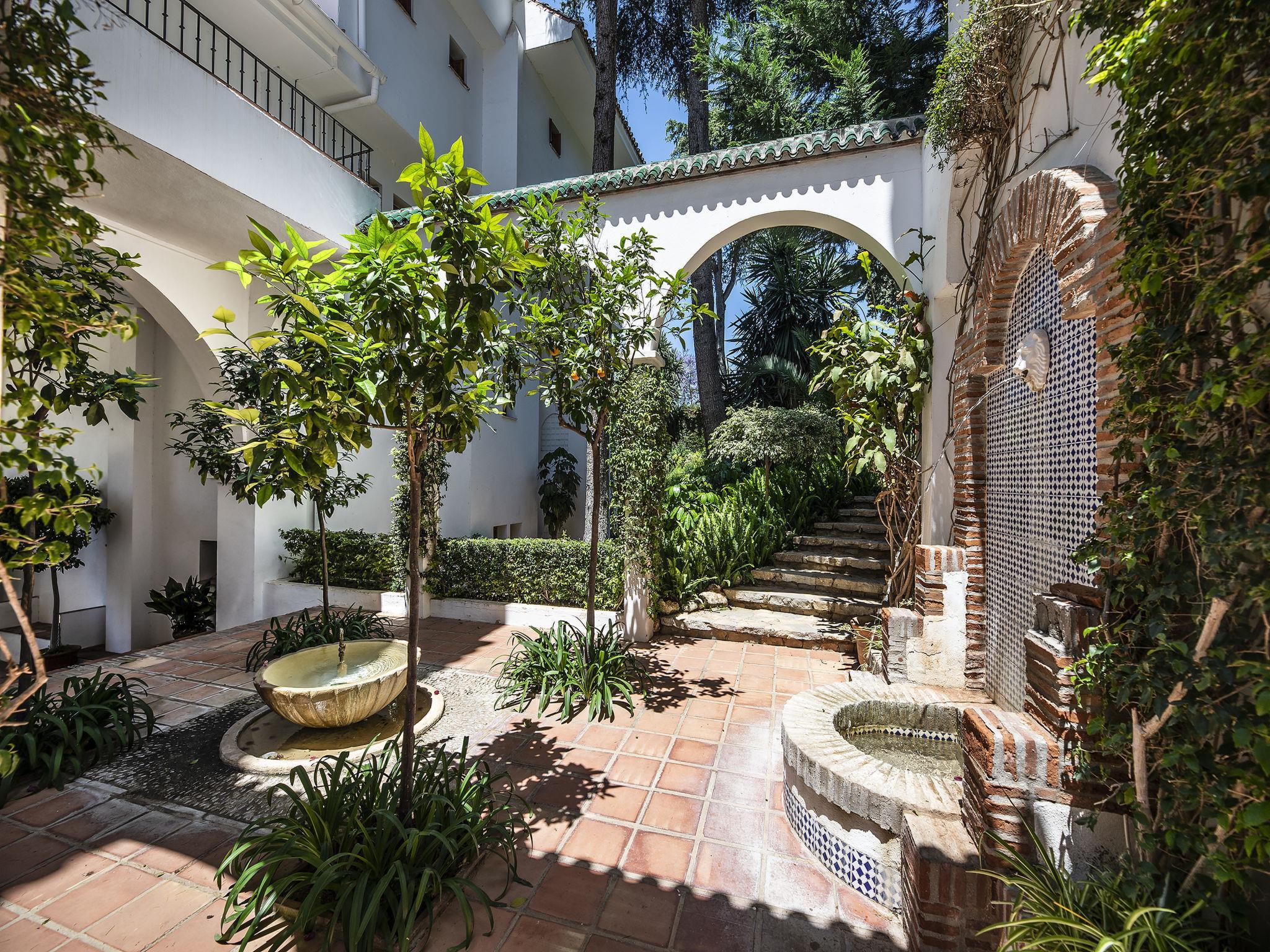 Beautiful, luxurious apartment block "Senorio de Marbella". In the district Golden Mile, 1.2 km from the sea, 1.2 km from the beach. For shared use: park, beautiful garden to relax, courtyard, pond, 4 swimming pools heated (seasonal availability: 01.Jan. - 31.Dec.) with internal staircase. Shower/WC in the pool area, children's pool, tennis, children's playground, planted inner courtyard communal covered parking space n 30 public parking on the road. Parking space or garage only for small to medium-sized cars. Supermarket 2 km, restaurant 100 m, pedestrian zone, pub garden 600 m, bus stop "Hotel Puente Romano" 900 m, sandy beach "Nagüeles" 1.2 km. Sports harbour 3.5 km, golf course (18 hole) 4 km. 24hr guard. Neighbourhood highly sensitive to noise. Quietness and good behaviour expected. Designed in the style of an Andalusian village with tropical gardens, waterfalls and trails. It has four swimming pools, one of which is heated, two tennis courts and two paddle tennis courts, a children's playground and a restaurant.