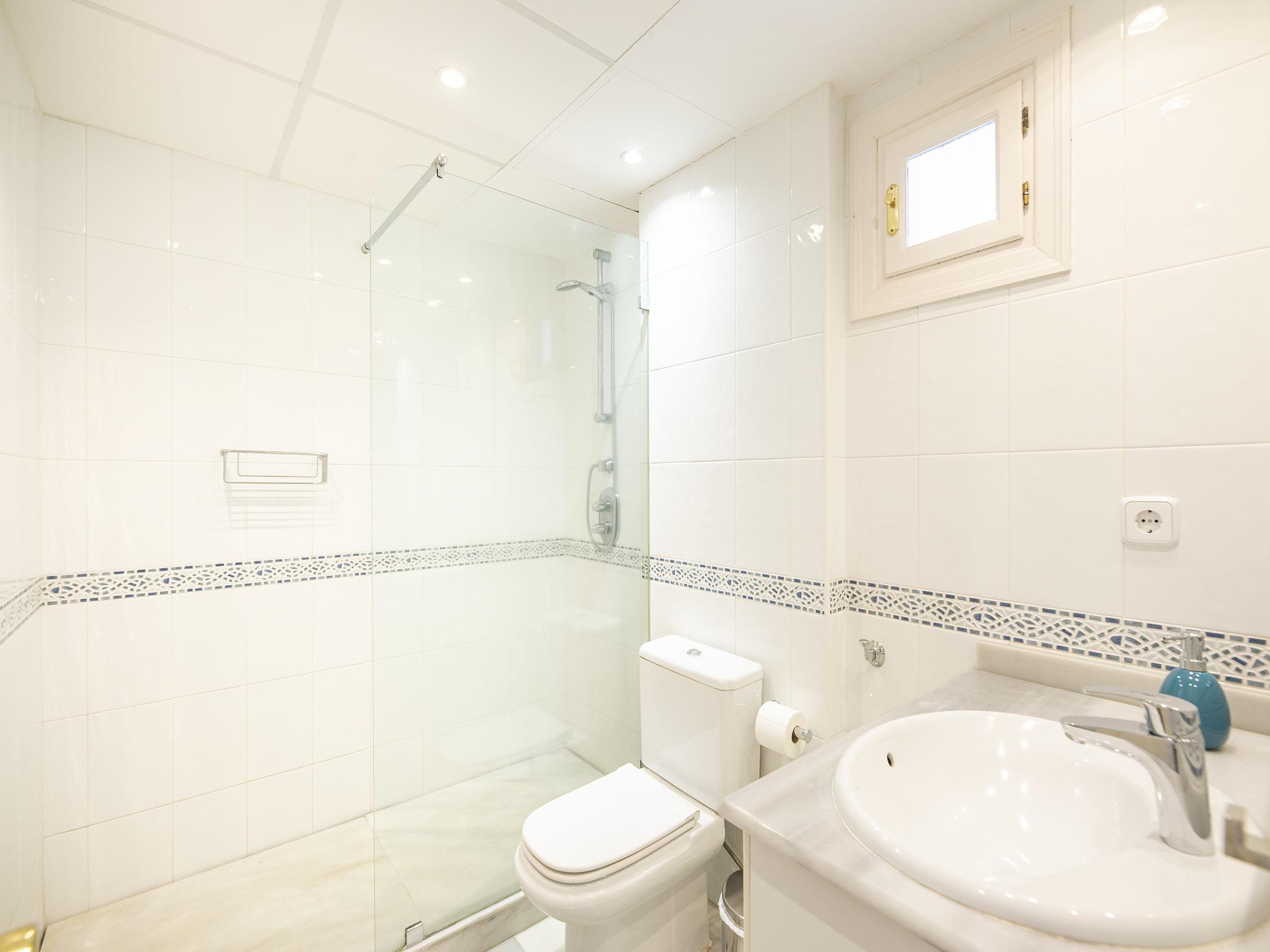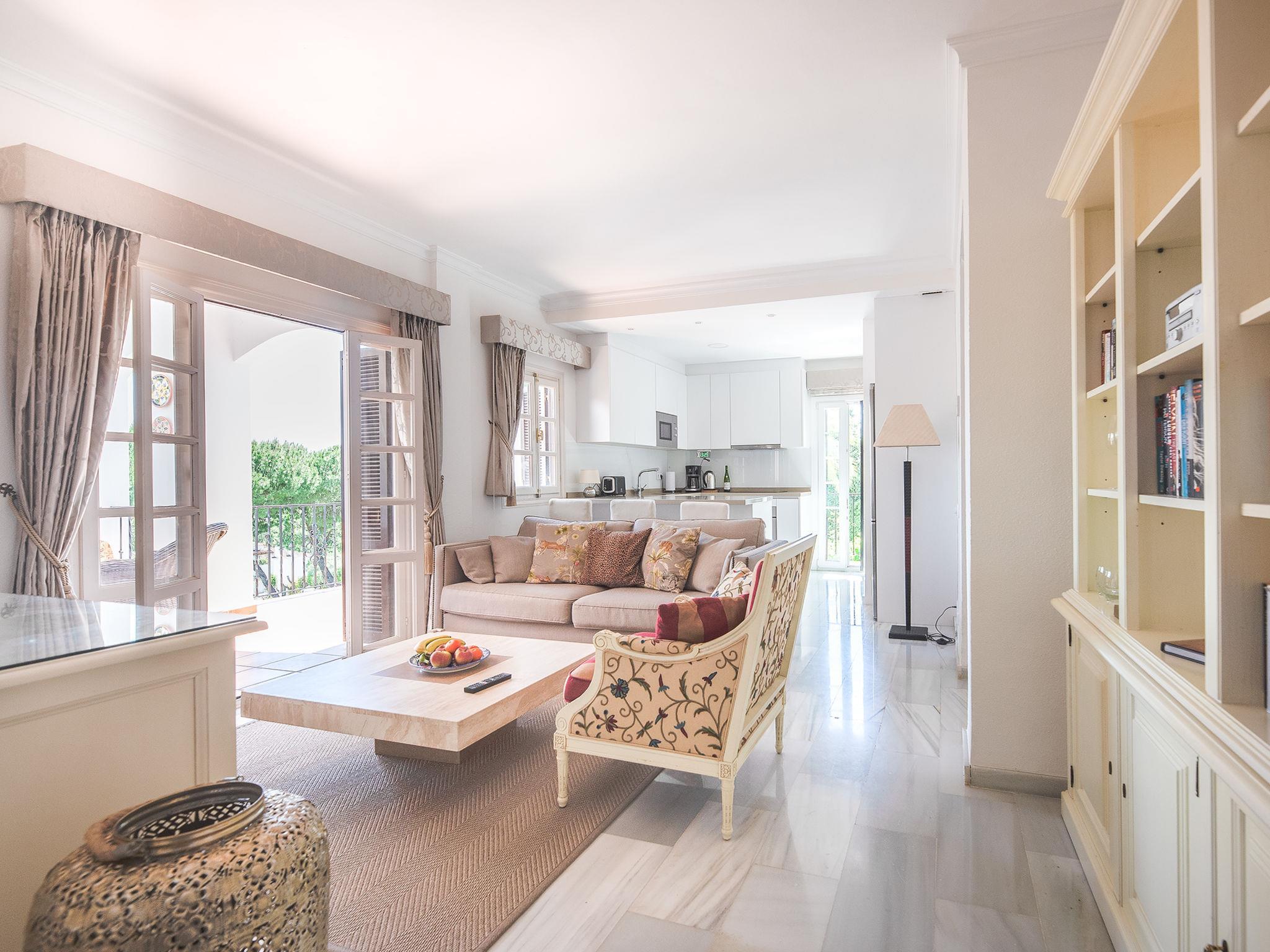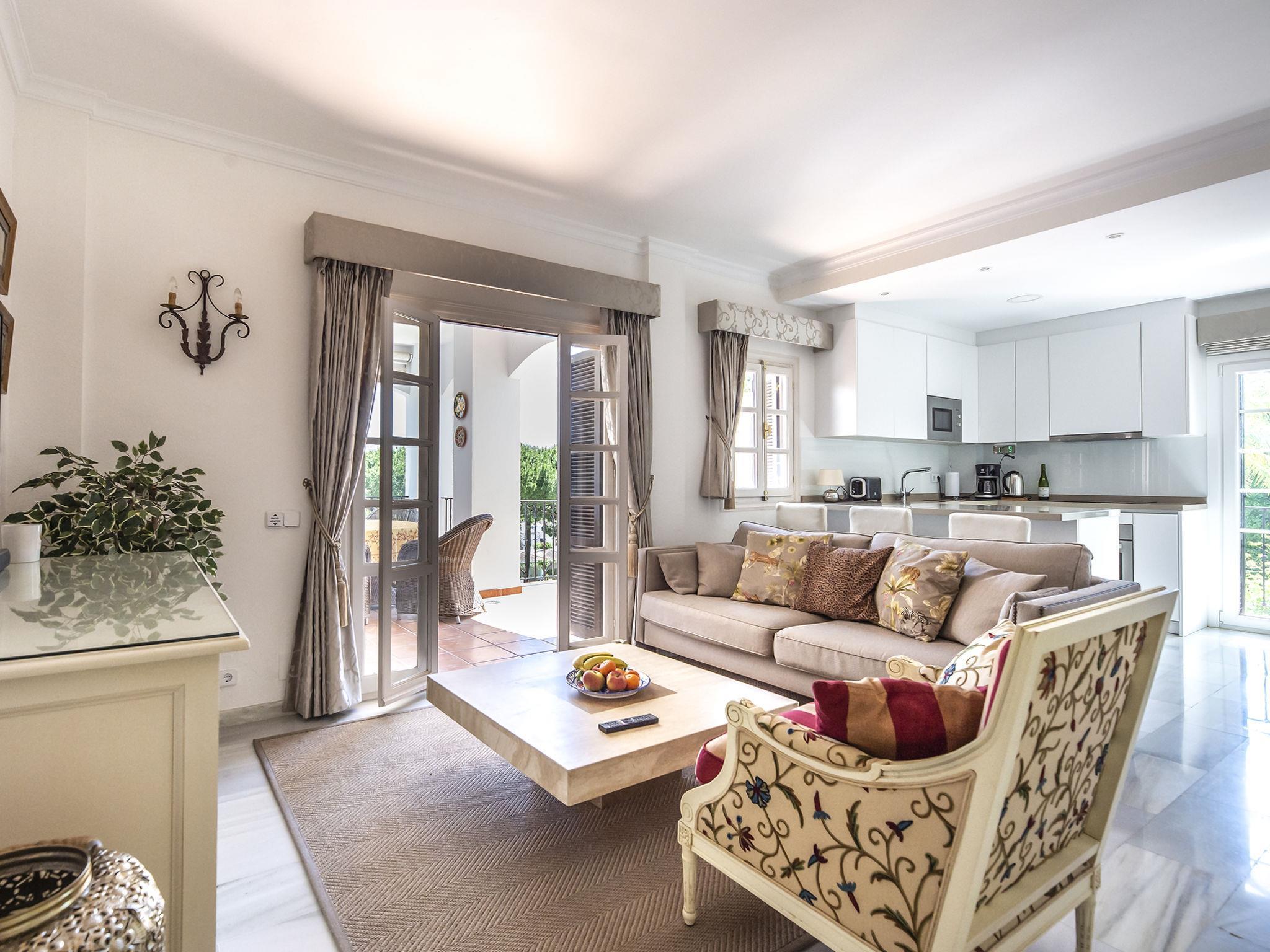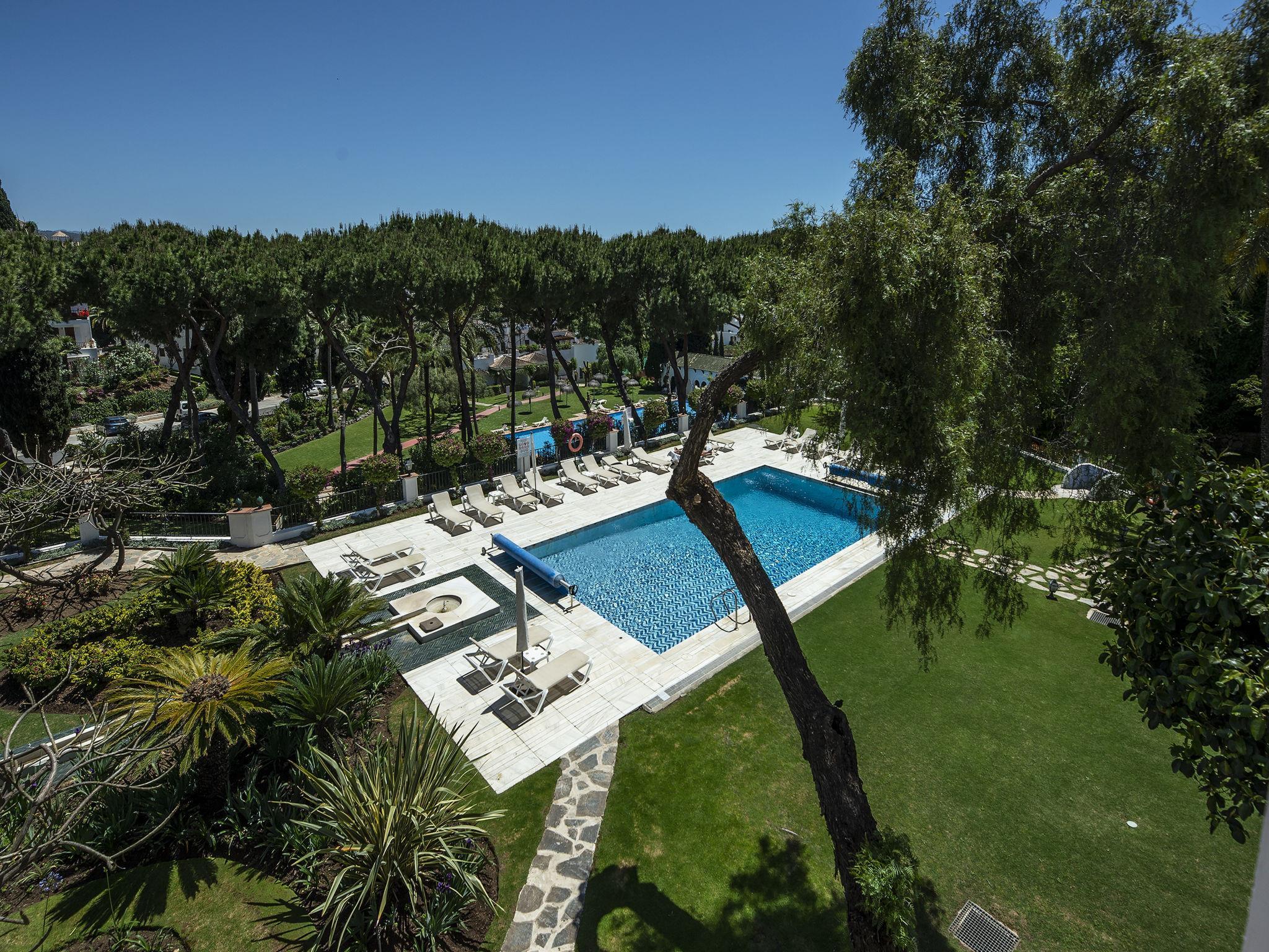 Beautiful, luxurious apartment block "Senorio de Marbella". In the district Golden Mile, 1.2 km from the sea, 1.2 km from the beach. For shared use: park, beautiful garden to relax, courtyard, pond, 4 swimming pools heated (seasonal availability: 01.Jan. - 31.Dec.) with internal staircase. Shower/WC in the pool area, children's pool, tennis, children's playground, planted inner courtyard communal covered parking space n 30 public parking on the road. Parking space or garage only for small to medium-sized cars. Supermarket 2 km, restaurant 100 m, pedestrian zone, pub garden 600 m, bus stop "Hotel Puente Romano" 900 m, sandy beach "Nagüeles" 1.2 km. Sports harbour 3.5 km, golf course (18 hole) 4 km. 24hr guard. Neighbourhood highly sensitive to noise. Quietness and good behaviour expected. Designed in the style of an Andalusian village with tropical gardens, waterfalls and trails. It has four swimming pools, one of which is heated, two tennis courts and two paddle tennis courts, a children's playground and a restaurant.