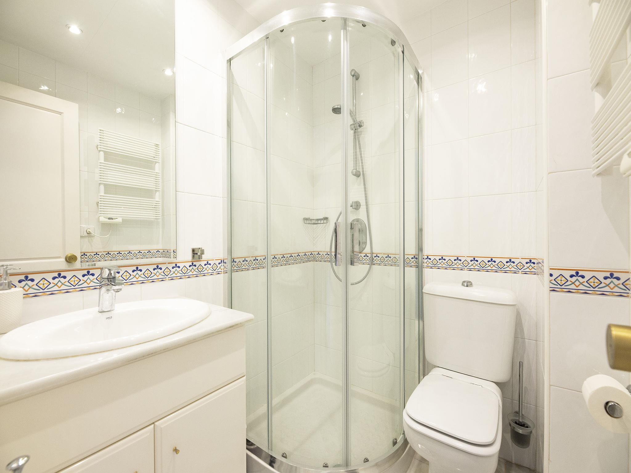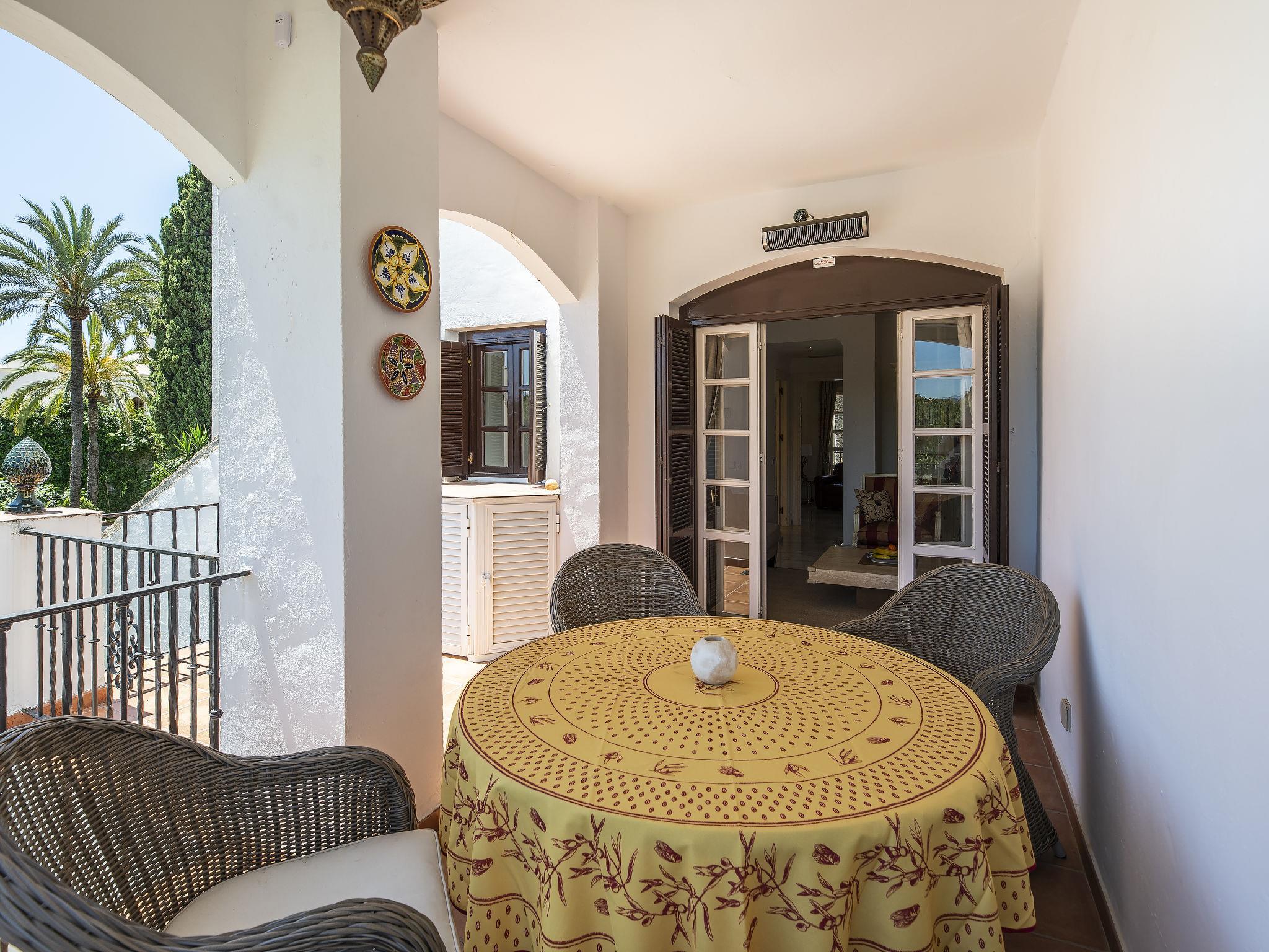 "Las Ranas", 3-room apartment 94 m2 on 2nd floor. Comfortable and beautiful furnishings: living room with digital TV. Exit to the terrace. 1 room with 2 beds (90 cm, length 190 cm). 1 room with 1 french bed (150 cm, length 190 cm), shower/WC (private). Open kitchen (oven, dishwasher, 3 induction hot plates, toaster, kettle, microwave, freezer, electric coffee machine, Capsules for coffee machine (Nespresso) free) with bar. Shower/WC. Air-conditioning, forced-air heating. Terrace 12 m2. Terrace furniture. View of the swimming pool and the garden. Facilities: washing machine, dryer, iron, children's high chair, baby cot, hair dryer. Internet (WiFi, free). Garage space n 30. Please note: non-smokers only. No lift. VUT/MA/44266 // Reg. Nr.: ESFCNT00002904100003880300000000000000000000000000007