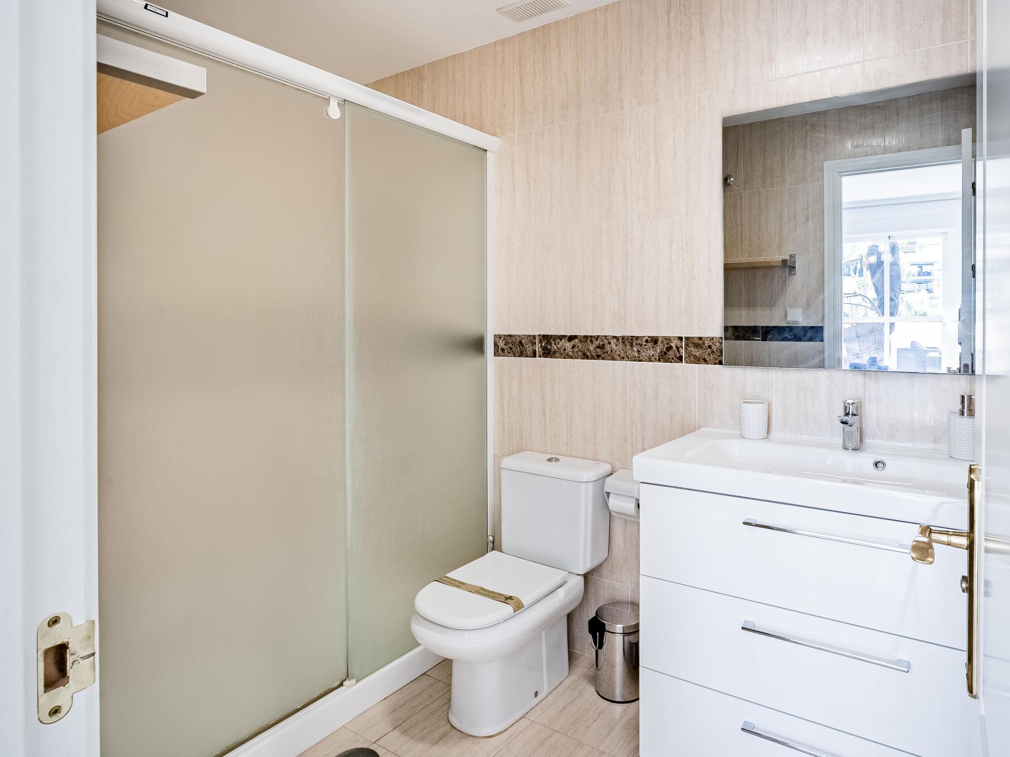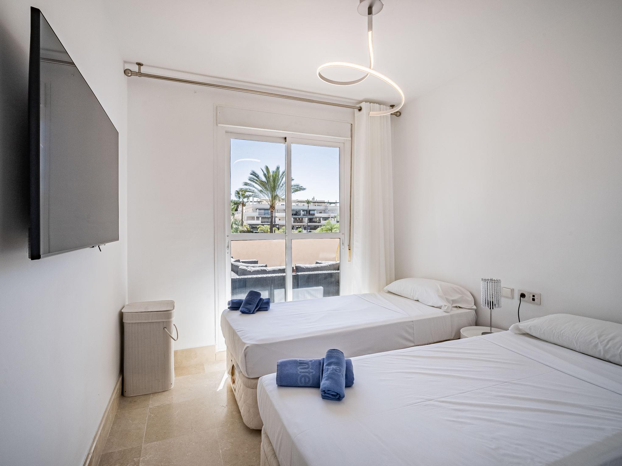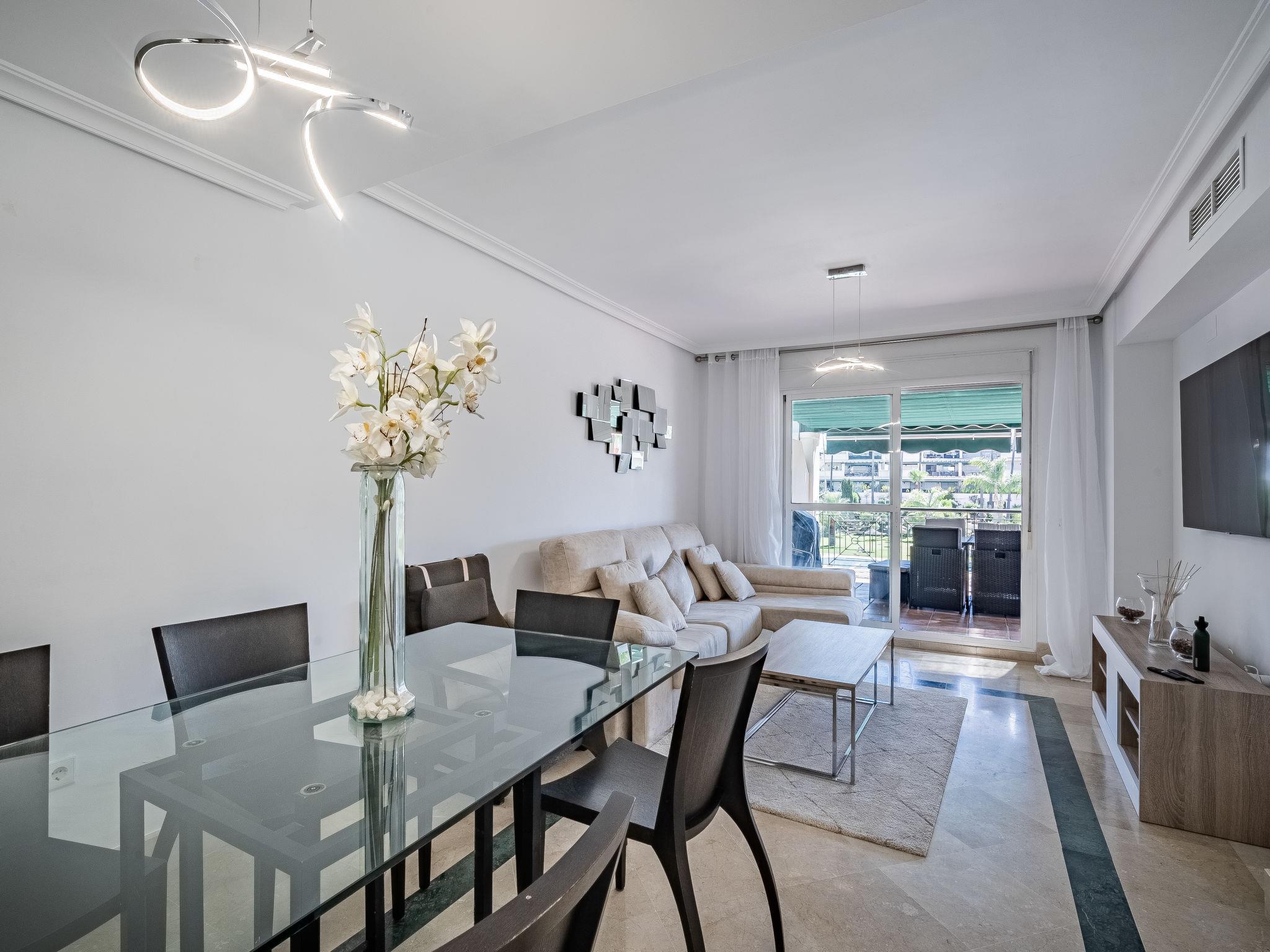 Very beautiful apartment block "Lorcrimar". Nueva Andalucía, on the outskirts, 1.9 km from the centre of Puerto Banús, 1 km from the sea, 1 km from the beach. For shared use: garden with lawn, swimming pool (depth 120 - 130 cm, seasonal availability: 01.Jun. - 30.Sep. pool opening hours: 12:00-20:00). Unconventional pool shape. Shower/WC in the pool area. In the house: WiFi, lift. Communal covered parking. Supermarket 400 m, shopping centre 1 km, restaurant 200 m, bus stop "Cortijo Blanco" 850 m, sandy beach 1 km. Sports harbour 1.9 km, golf course (18 hole) 3 km.