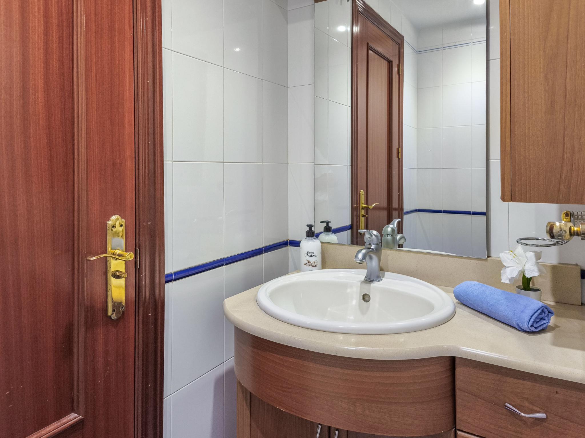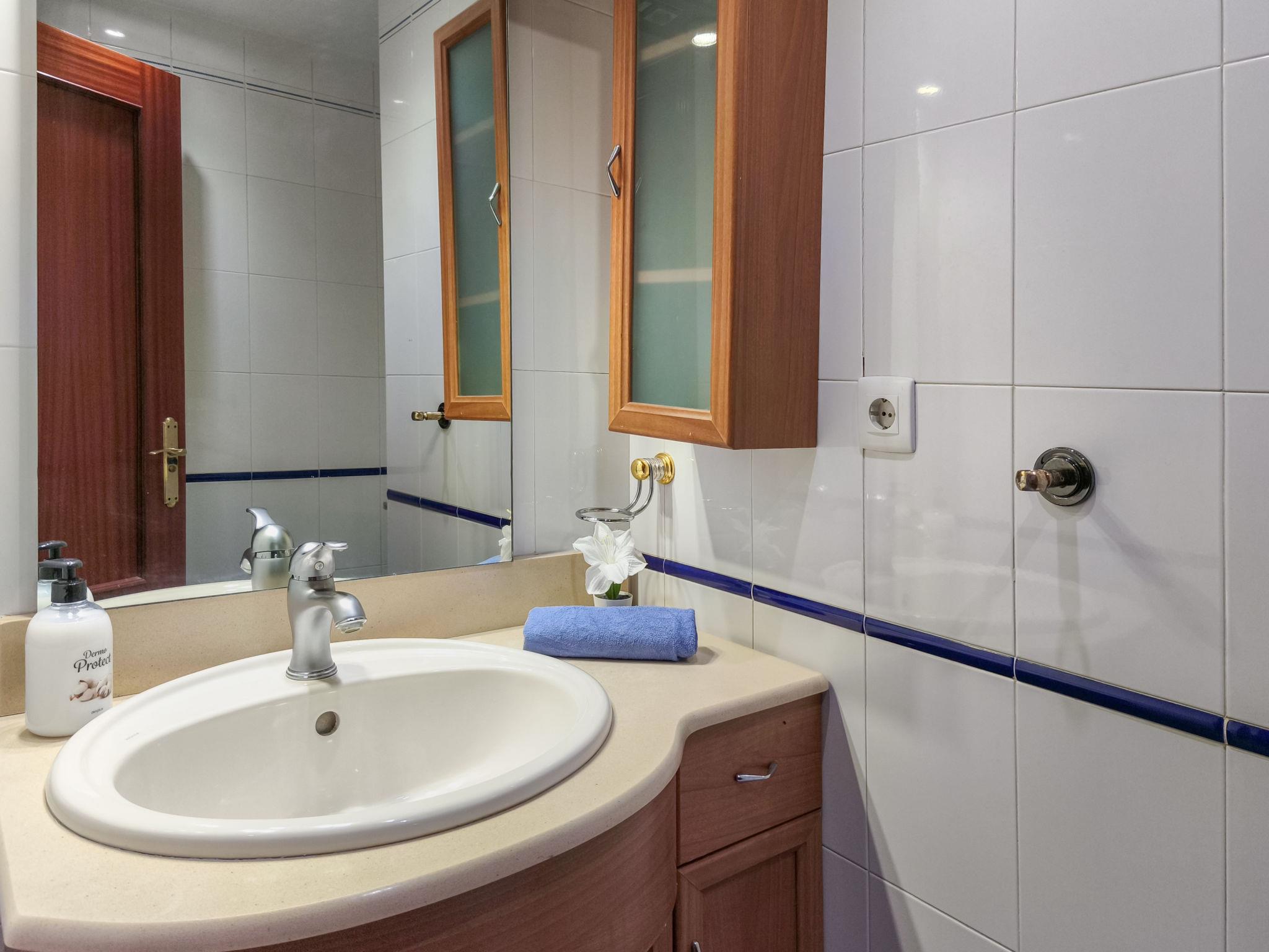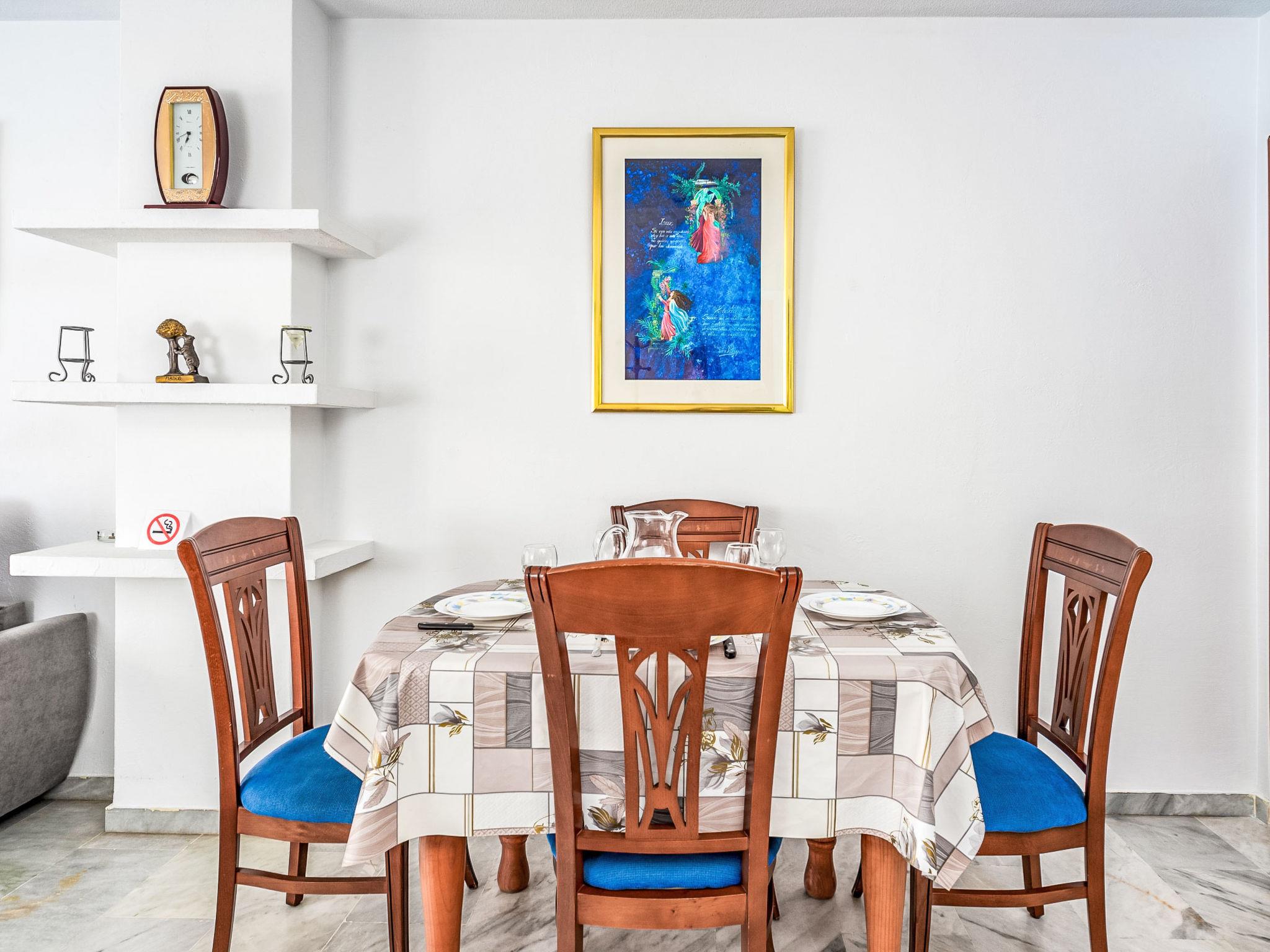 3-room apartment 80 m2 on 4th floor. Simple and practical furnishings: living/dining room 20 m2 with TV, air conditioning and forced-air heating. 1 room with 1 french bed and fan. 1 room with 2 beds (90 cm), fan. Kitchen (4 hot plates, oven, microwave, freezer). Bath/WC, sep. WC. Electric heating. Terrace 13 m2, east facing position and south facing position. Terrace furniture. View of the sea, the swimming pool and the garden. Facilities: washing machine, baby cot. Internet (WiFi, free). Garage space n -3 Nº10. VUT/MA/12585 // Reg. Nr.: ESFCTU0000290290007850020000000000000000VUT/MA/125852