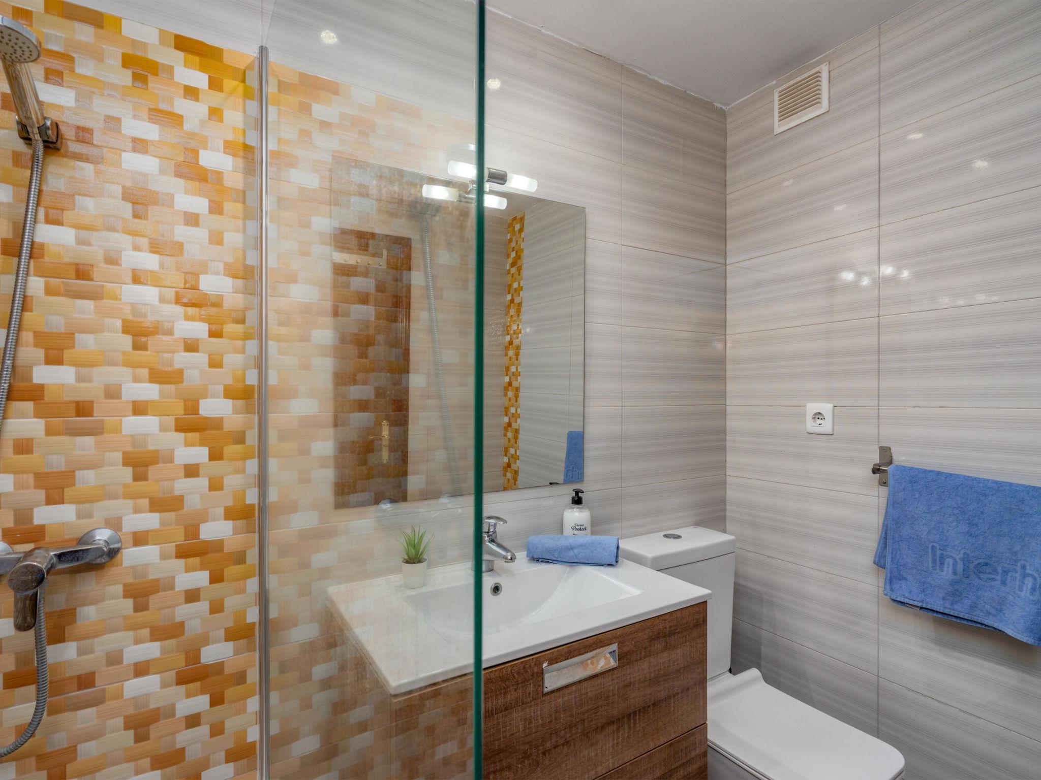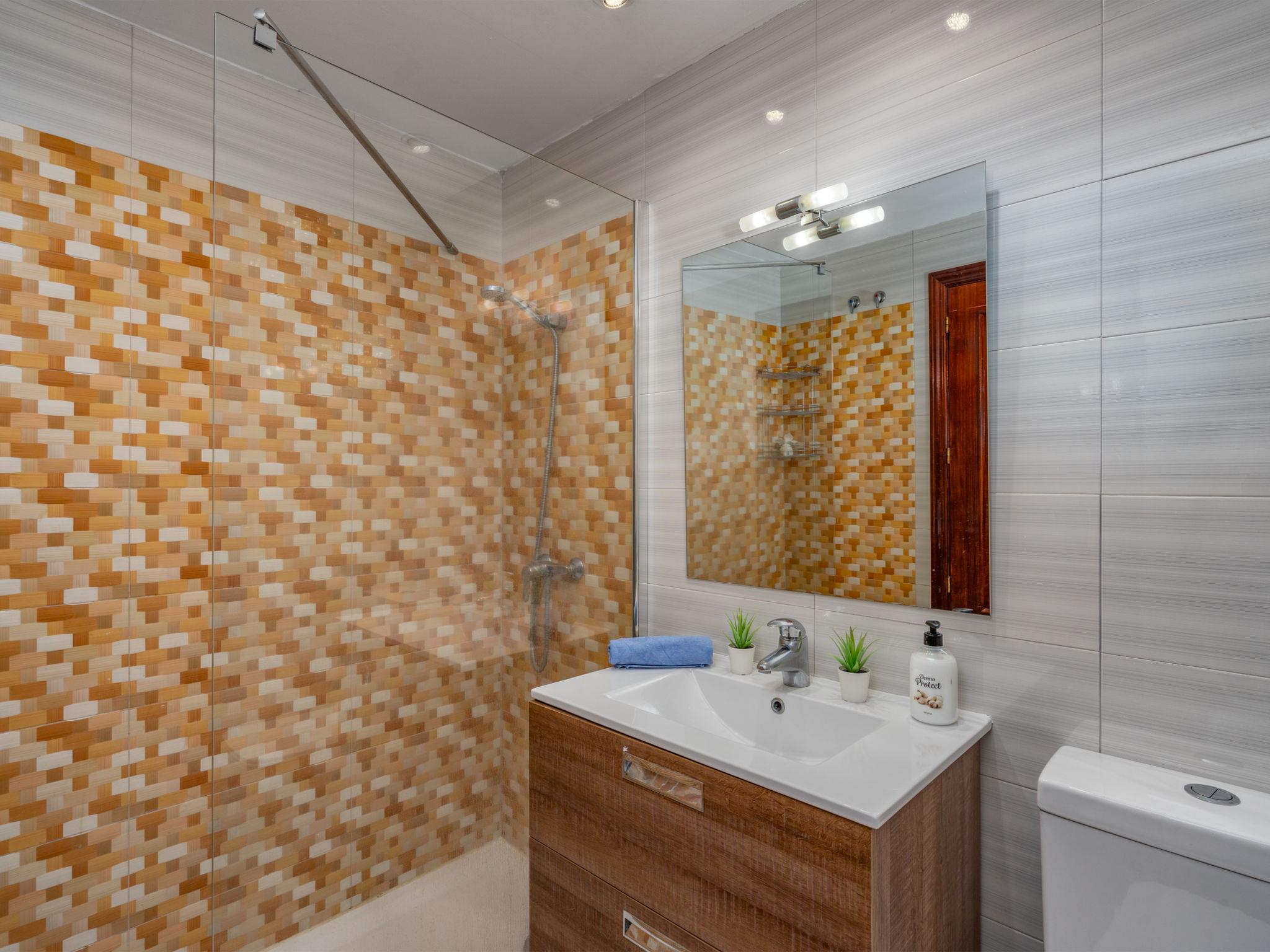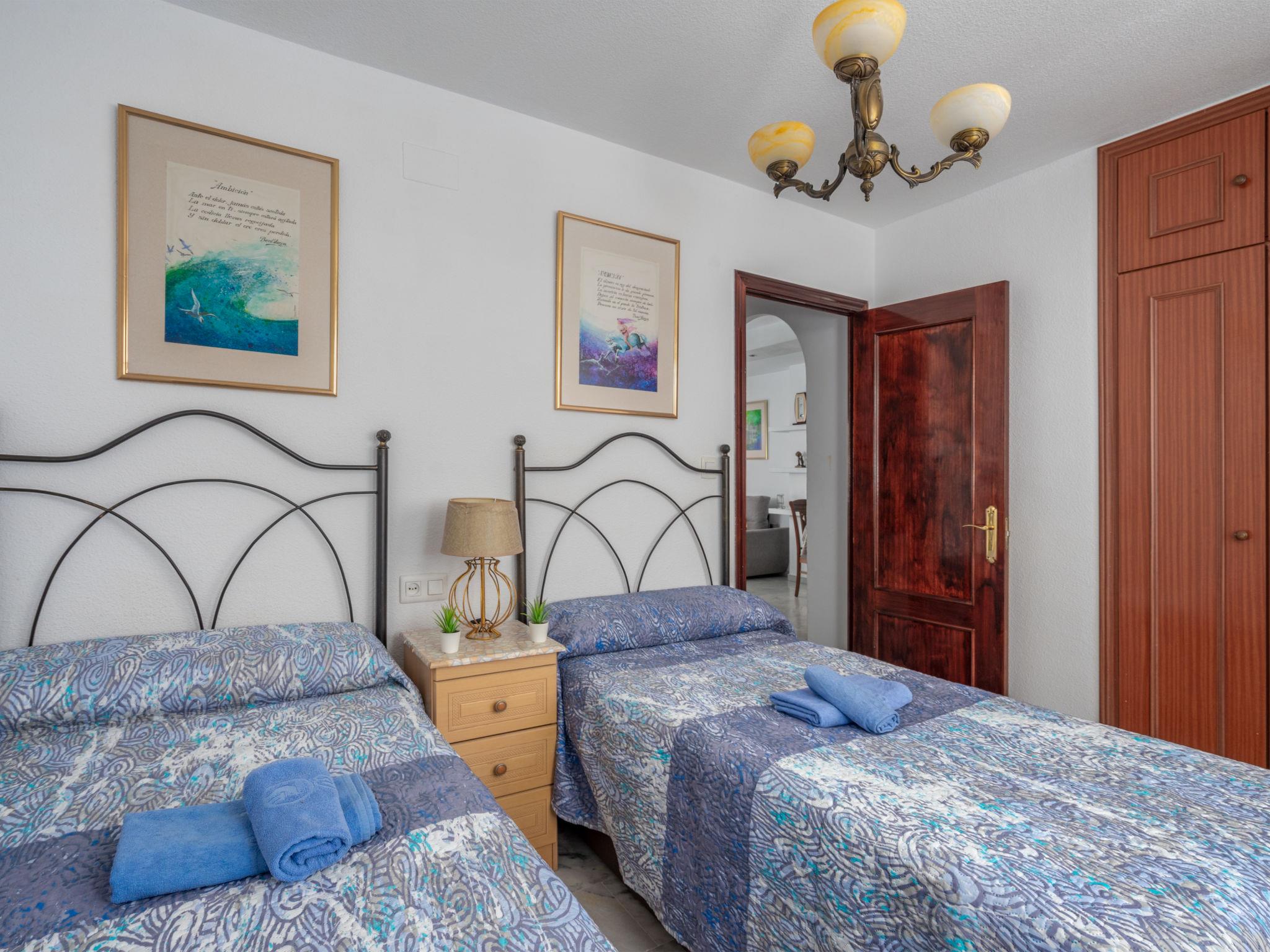 3-room apartment 80 m2 on 4th floor. Simple and practical furnishings: living/dining room 20 m2 with TV, air conditioning and forced-air heating. 1 room with 1 french bed and fan. 1 room with 2 beds (90 cm), fan. Kitchen (4 hot plates, oven, microwave, freezer). Bath/WC, sep. WC. Electric heating. Terrace 13 m2, east facing position and south facing position. Terrace furniture. View of the sea, the swimming pool and the garden. Facilities: washing machine, baby cot. Internet (WiFi, free). Garage space n -3 Nº10. VUT/MA/12585 // Reg. Nr.: ESFCTU0000290290007850020000000000000000VUT/MA/125852