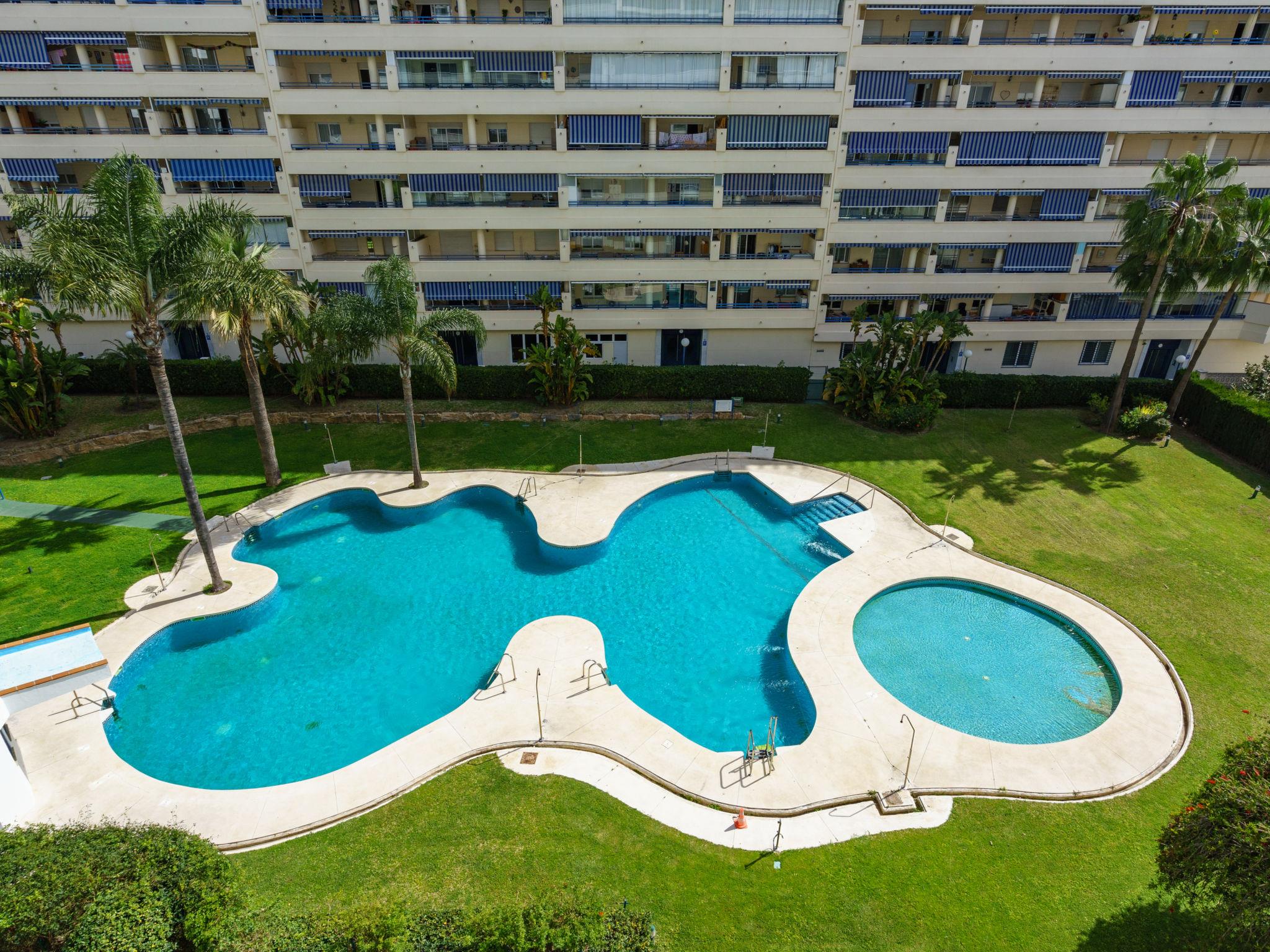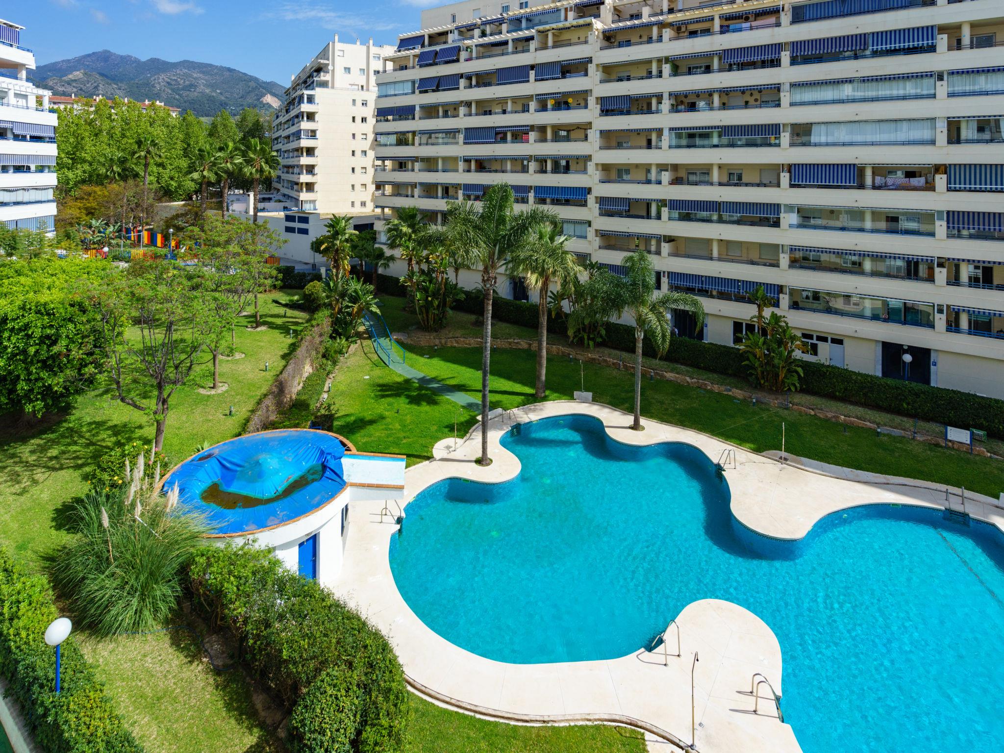 Urb. las Terrazas: Apartment block "Las Terrazas", 9 storeys, built in 2003. In the resort 700 m from the centre of Marbella, in a sunny position, 450 m from the sea. For shared use: large garden 3'000 m2 (fenced) lawn, swimming pool (seasonal availability: 15.Jun. - 15.Sep.). Children's pool. In the house: lift. Supermarket 5 m, restaurant 50 m, bus stop 80 m, sandy beach 450 m. Nearby attractions: Casco Historico Marbella 1.3 km, Plaza de Los Naranjos 1.4 km. The 3 swimming pools are laid out in the shape of a clover. The shared area is 30 m away. Please note: all services nearby.