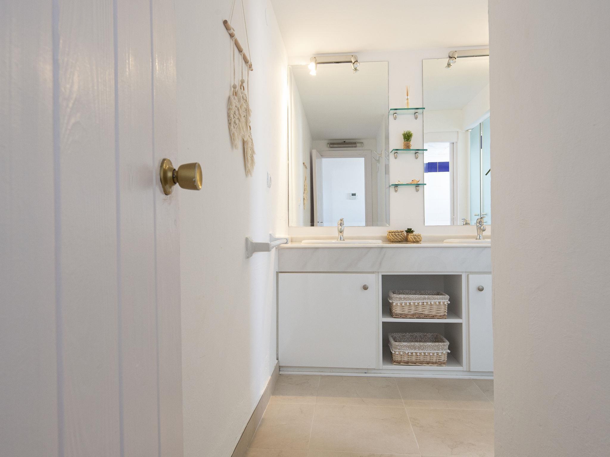 2-room apartment 65 m2. Spacious and bright, modern and romantic furnishings: living/dining room with 2 sleeping facilities (2 x 193 cm, length 105 cm), digital TV. 1 double bedroom with 1 french bed (180 cm, length 200 cm). Kitchen (oven, dishwasher, 4 ceramic glass hob hotplates, toaster, kettle, microwave, freezer, electric coffee machine, Capsules for coffee machine (Nespresso Dior) extra). Shower/WC, double hand-basin. Air-conditioning, forced-air heating. Terrace 12 m2, roofed. Terrace furniture. Partial view of the sea and the port. Facilities: washing machine, iron, children's high chair, baby cot, hair dryer. Internet (WiFi, free). VUT/MA/32057 // Reg. Nr.: ESFCTU0000290410003826470000000000000000VUT/MA/320570