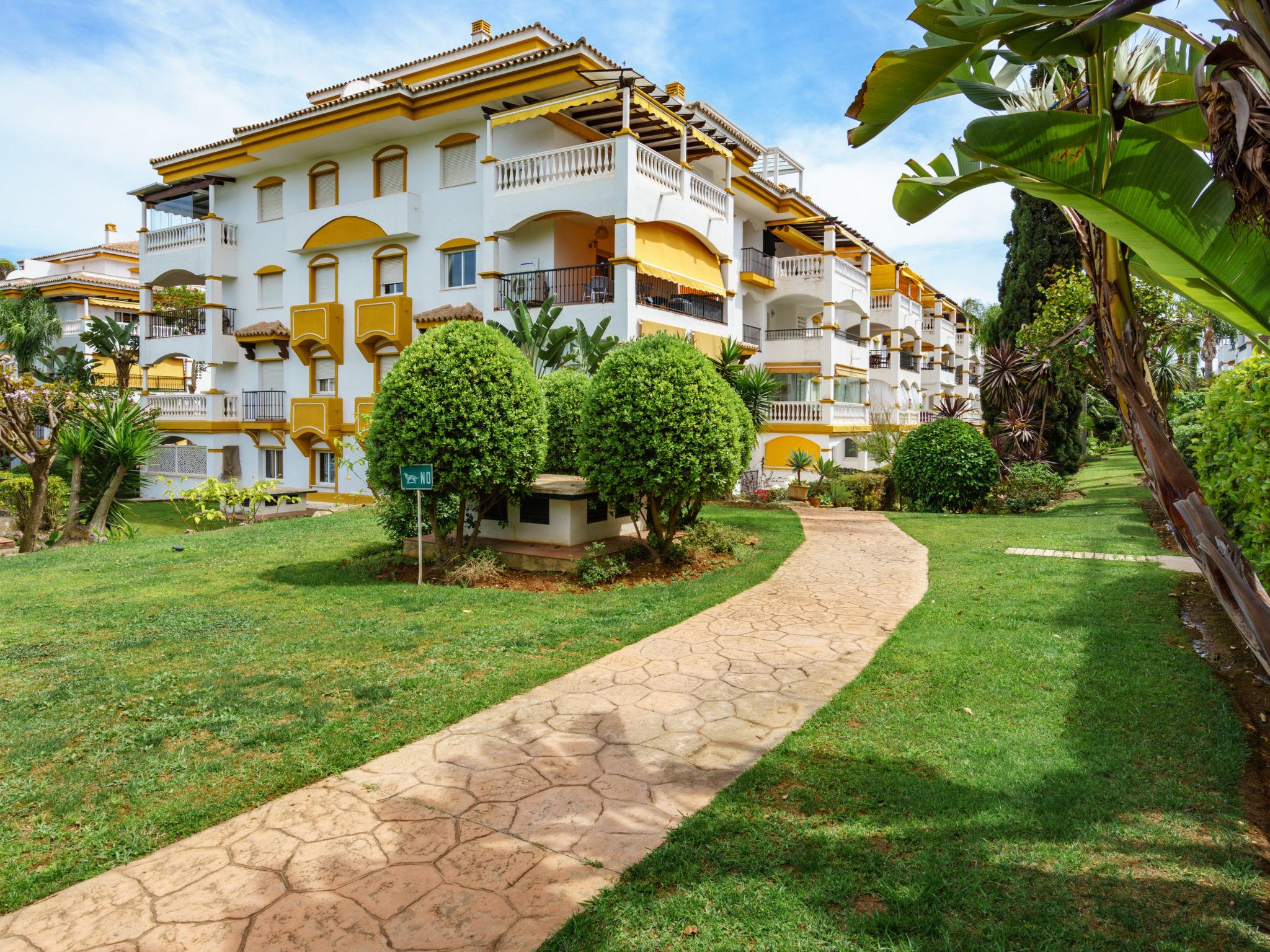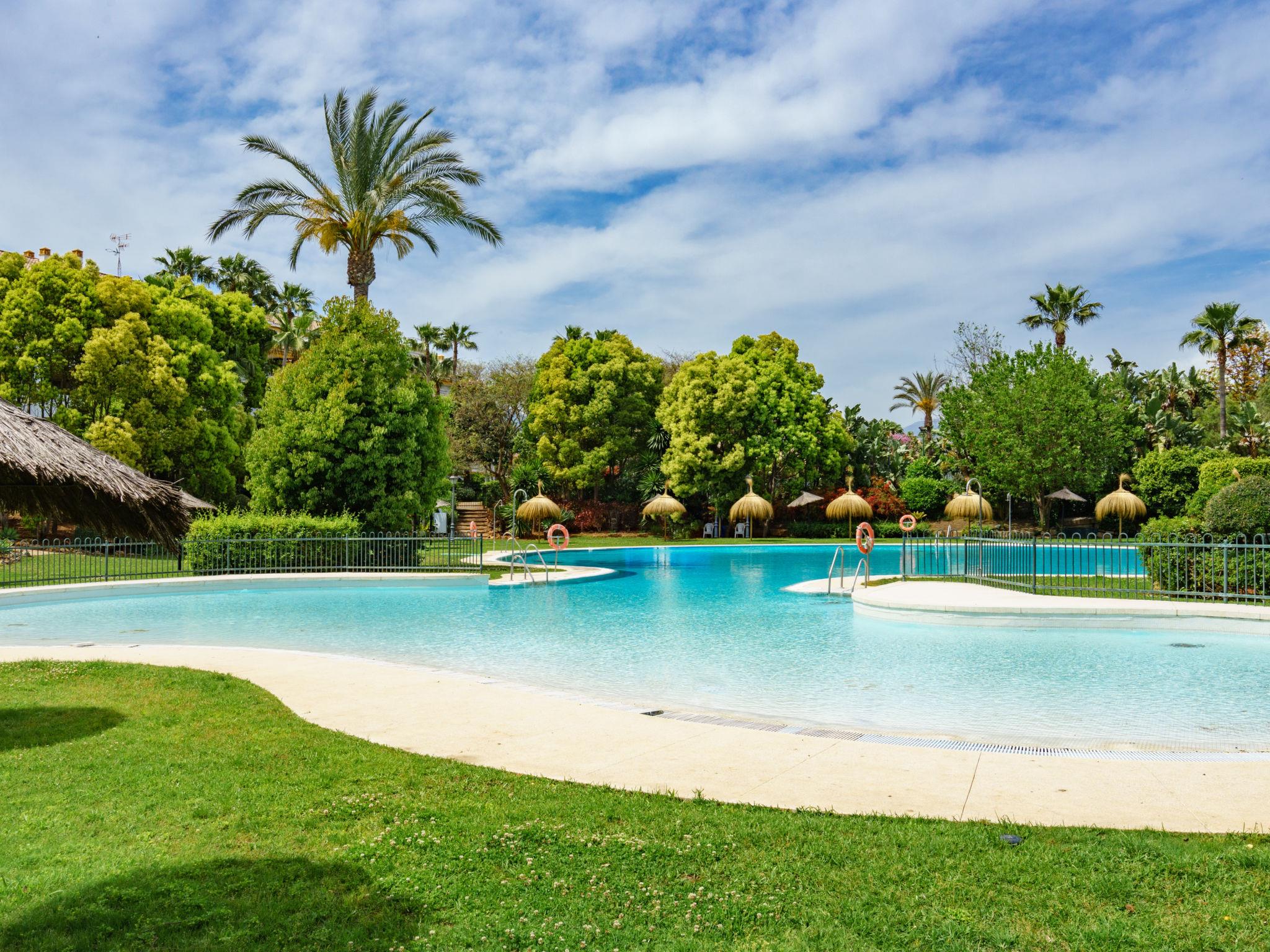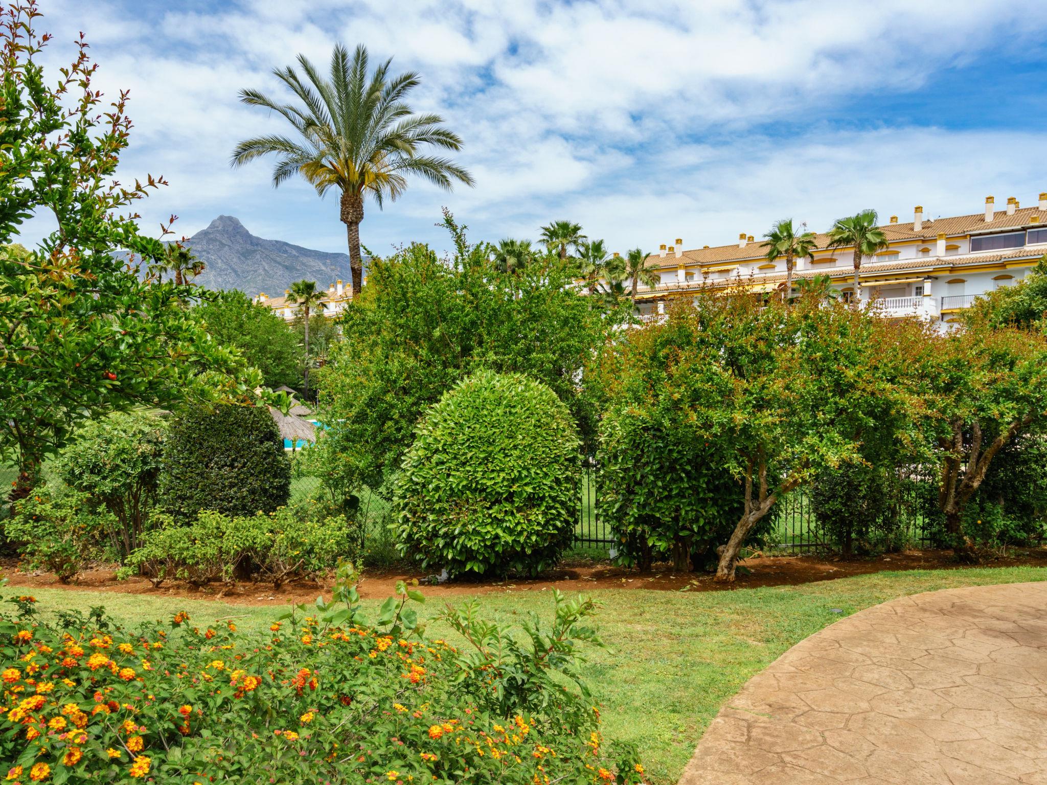 Beautiful, cosy holiday development "Dama de noche". 1.3 km from the centre of Puerto Banus, 7 km from the centre of Marbella, 1.3 km from the sea, 1.3 km from the beach. For shared use: property (fenced), garden with lawn, swimming pool (seasonal availability: 01.Jun. - 30.Sep.). Children's pool, outdoor shower, tennis, children's playground. In the house: lift. Communal covered parking. Shop, grocery 100 m, supermarket 1.3 km, restaurant 100 m, bus stop "Rotonda Rio Verde" 500 m, sandy beach 1.3 km. Golf course (9 hole) 50 m. The owner does not accept any youth groups. 24hr guard. Neighbourhood highly sensitive to noise. Quietness and good behaviour expected. The urbanisation has 6 paddel-tennis courts.
