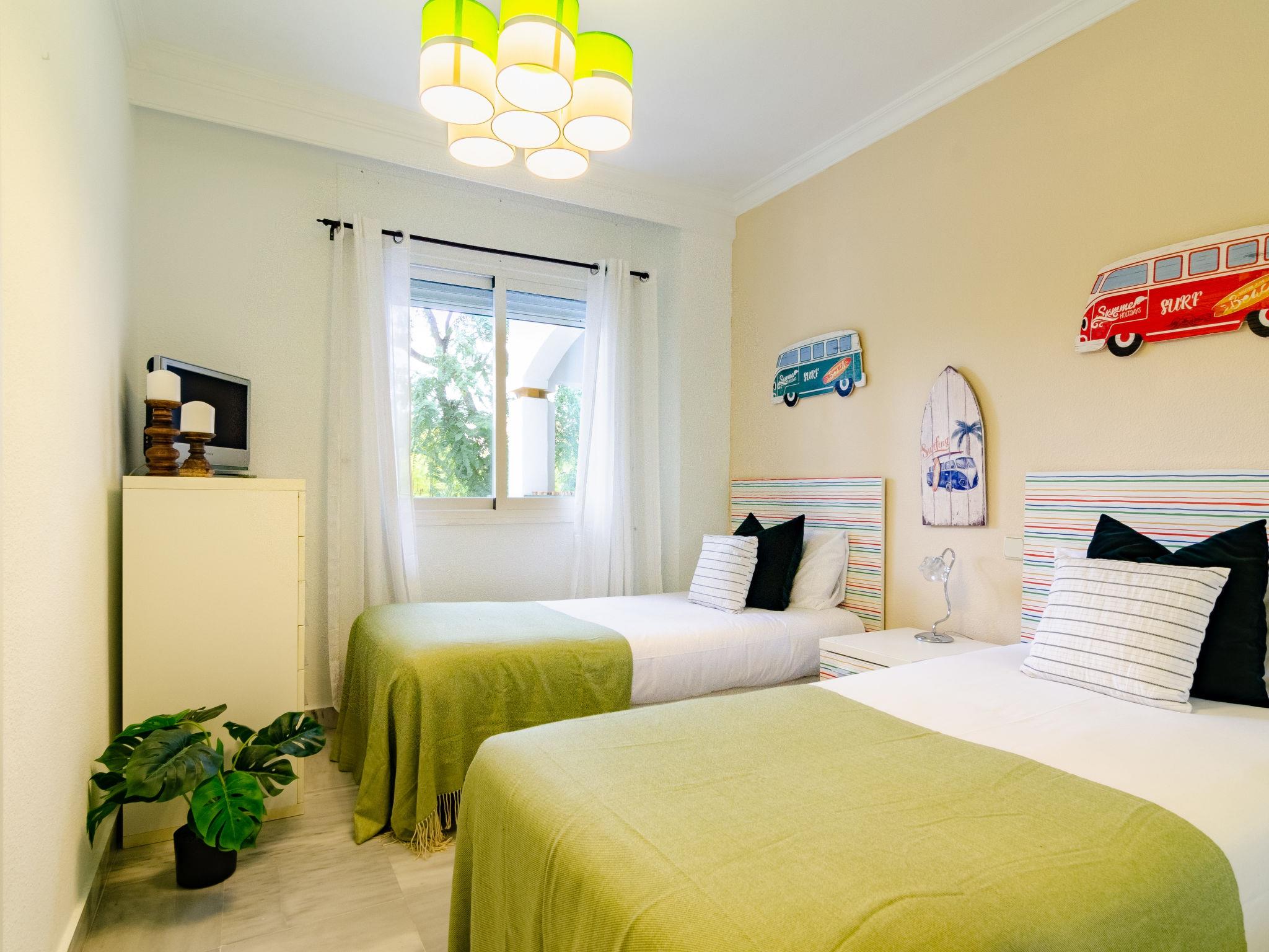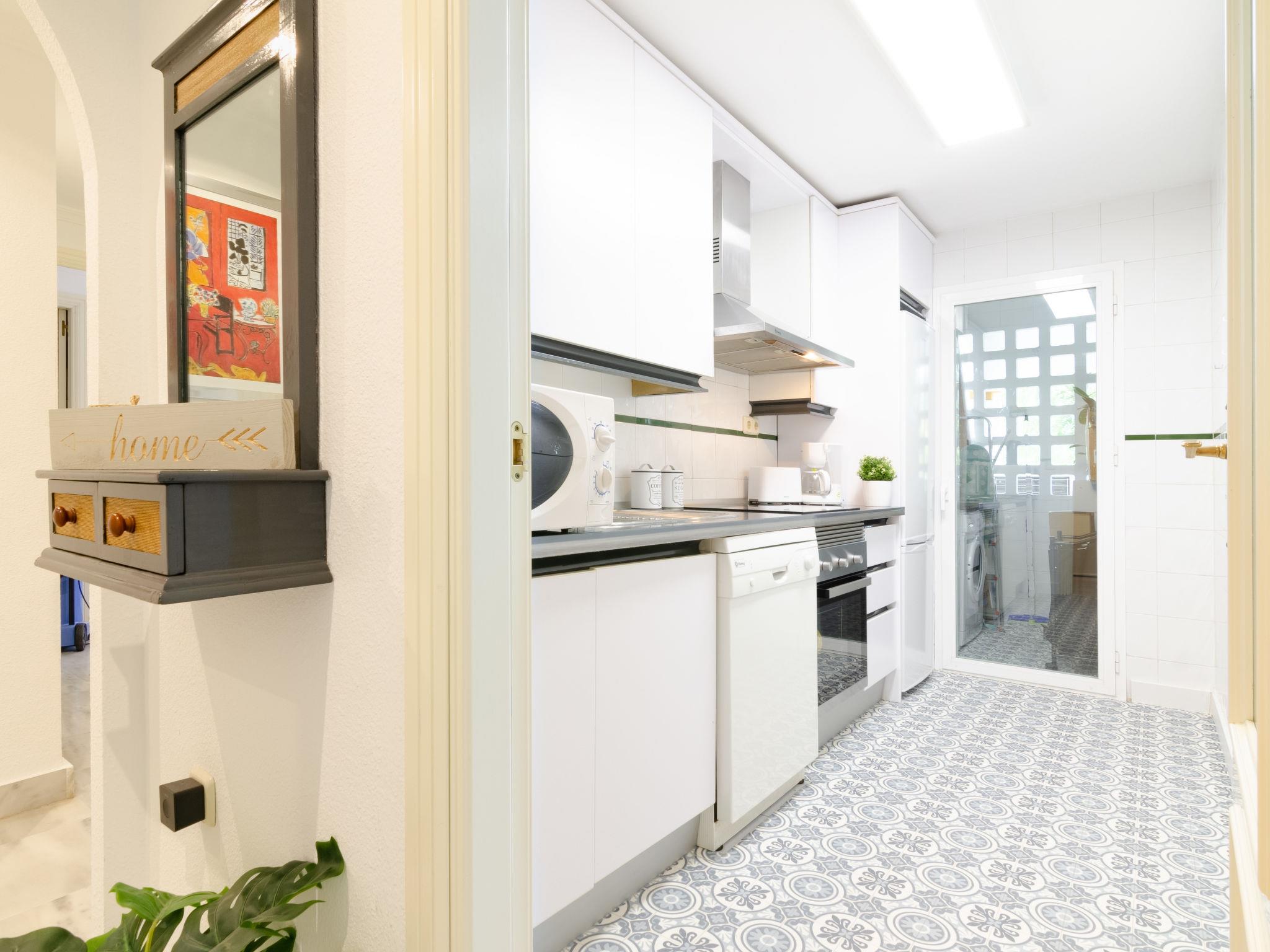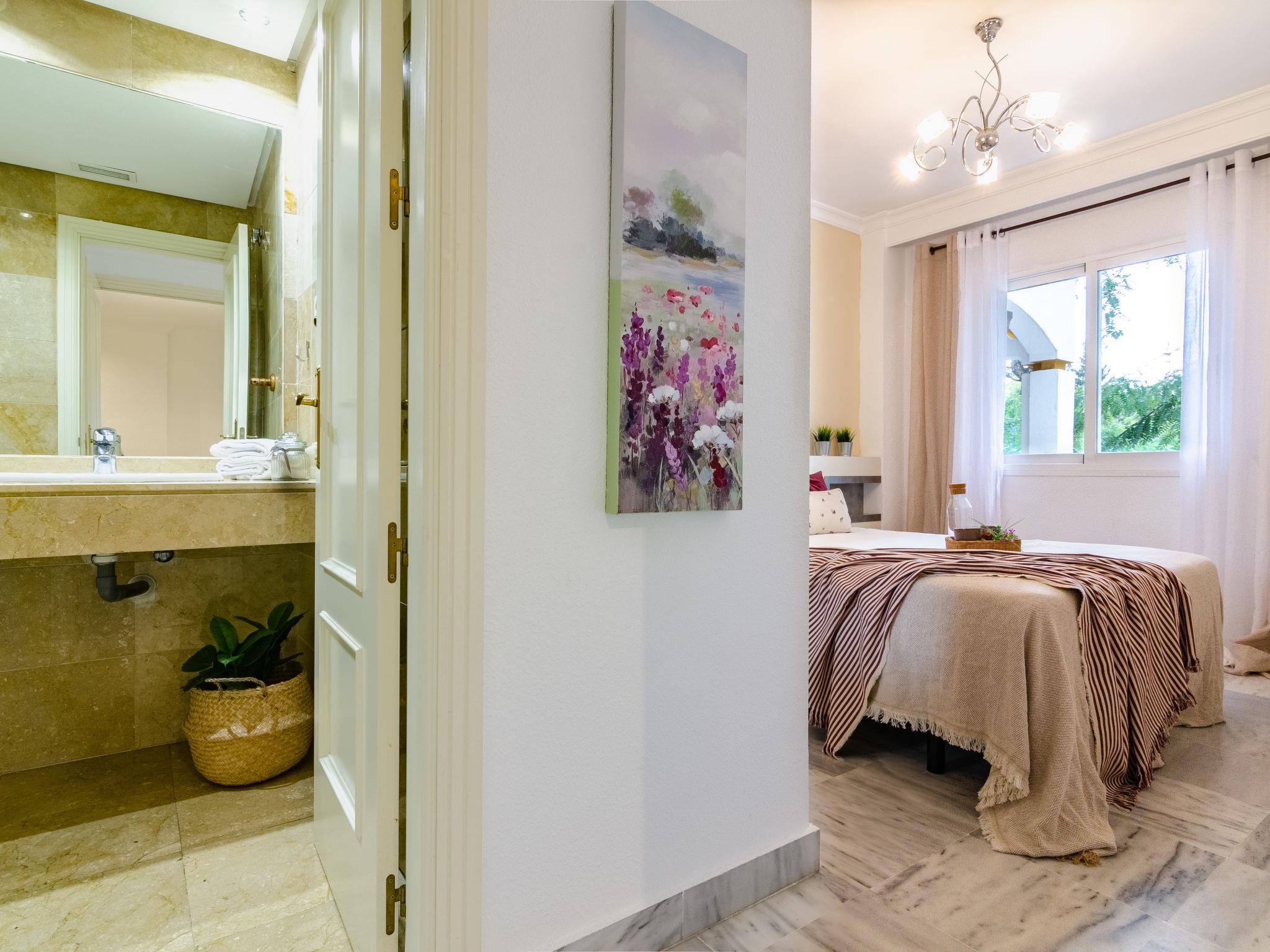 Beautiful, cosy holiday development "Dama de noche". 1.3 km from the centre of Puerto Banus, 7 km from the centre of Marbella, 1.3 km from the sea, 1.3 km from the beach. For shared use: property (fenced), garden with lawn, swimming pool (seasonal availability: 01.Jun. - 30.Sep.). Children's pool, outdoor shower, tennis, children's playground. In the house: lift. Communal covered parking. Shop, grocery 100 m, supermarket 1.3 km, restaurant 100 m, bus stop "Rotonda Rio Verde" 500 m, sandy beach 1.3 km. Golf course (9 hole) 50 m. The owner does not accept any youth groups. 24hr guard. Neighbourhood highly sensitive to noise. Quietness and good behaviour expected. The urbanisation has 6 paddel-tennis courts.