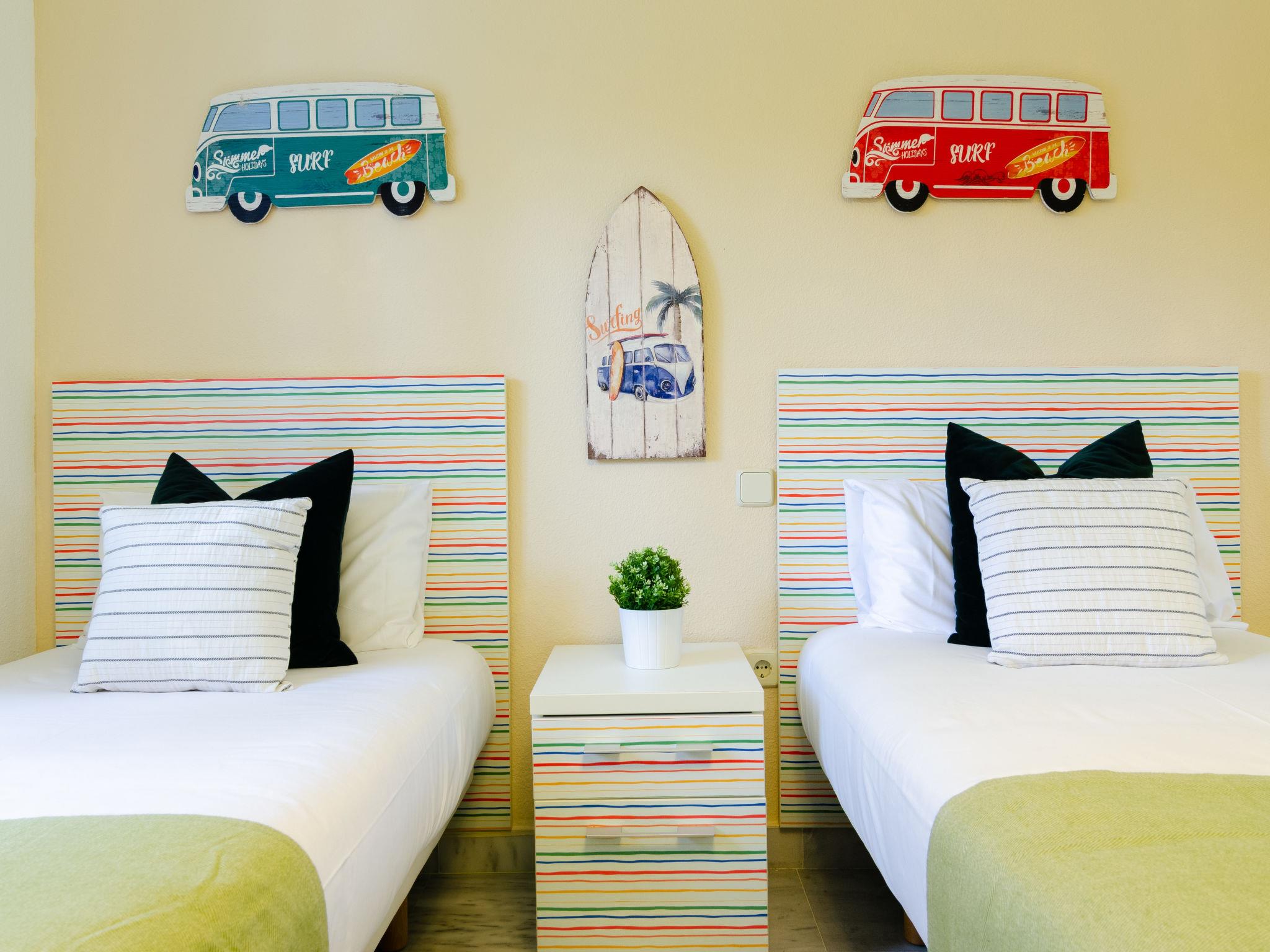"Dama de noche", 3-room apartment 85 m2 on 2nd floor. Living/dining room with 1 sofabed (135 cm, length 90 cm), digital TV. Exit to the terrace. 1 room with 1 french bed (150 cm, length 200 cm), bathroom. 1 room with 2 beds (90 cm, length 190 cm). Kitchen (dishwasher, 4 ceramic glass hob hotplates, toaster, kettle, microwave, freezer, electric coffee machine). Bath/bidet/WC. Electric heating, air-conditioning. Terrace 20 m2. Terrace furniture. Facilities: washing machine, iron, children's high chair, baby cot, hair dryer. Internet (WiFi, free). Garage space n 36. VUT/MA/42557 // Reg. Nr.: ESFCTU0000290410005355000000000000000000VUT/MA/425570
