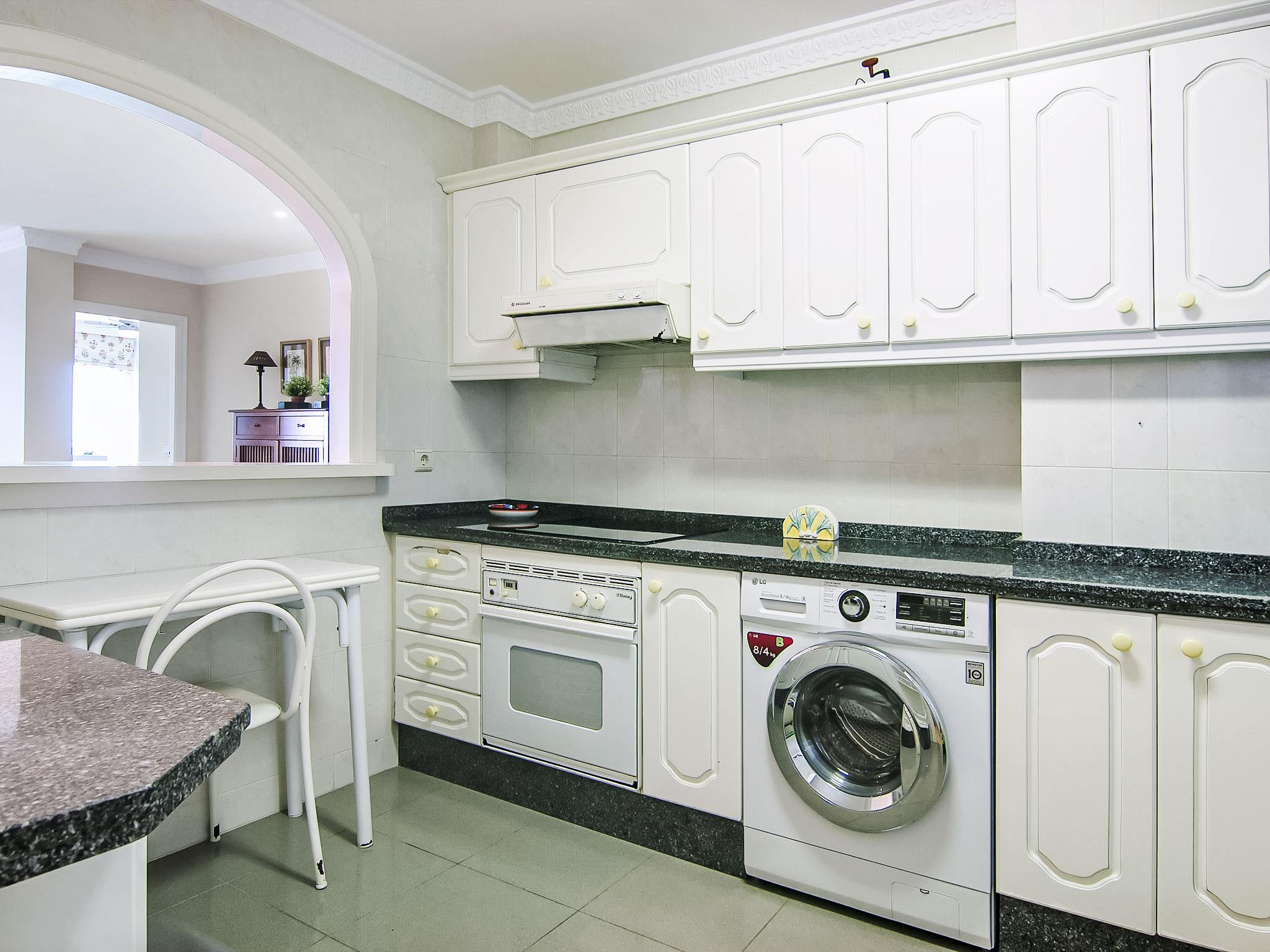 "Playa Real", 3-room apartment 100 m2. Object suitable for 5 adults. Practical and cosy furnishings: living/dining room with digital TV, electric heating and air conditioning. Exit to the terrace. 1 room with 1 french bed (135 cm, length 180 cm), shower/bidet/WC. 1 room with 1 bed (90 cm, length 190 cm), 1 x 2 bunk beds (90 cm, length 190 cm). Kitchen (4 ceramic glass hob hotplates, microwave, freezer, electric coffee machine) with hatch. Shower/WC. Terrace. Terrace furniture. Very beautiful view of the sea. Facilities: washing machine, iron, children's high chair, baby cot, hair dryer. Internet (WiFi, free). Please note: suitable for families. Non-smokers only. VUT/MA/25024 // Reg. Nr.: ESFCTU0000290280000444160000000000000000VFT/MA/250241
