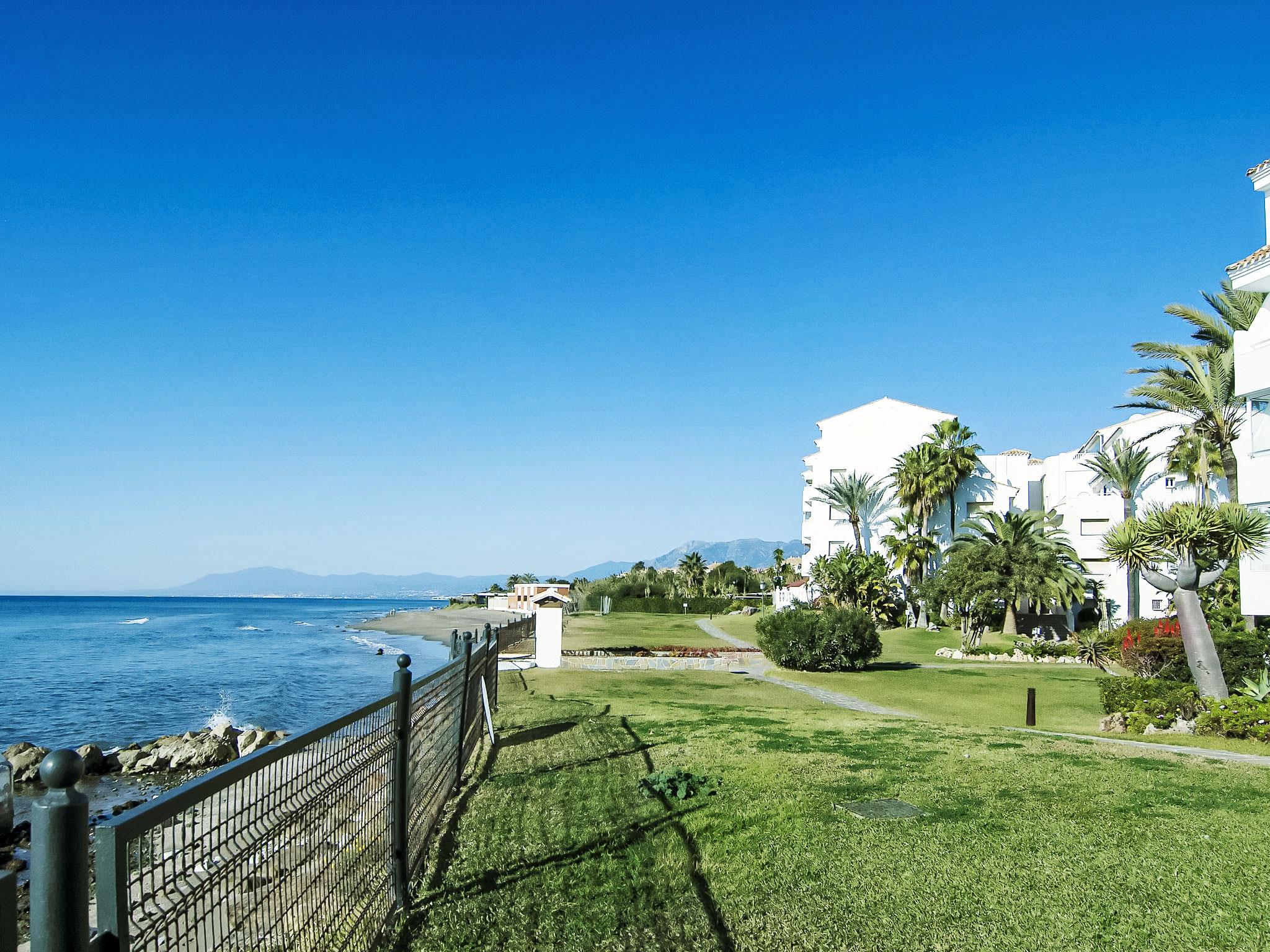 Beautiful, cosy apartment block "Playa Real". 15 km from the centre of Marbella, 25 km from the centre of Puerto Banus, in the district Elviria, from the sea, 50 m from the beach, south facing position. For shared use: large terraced garden with lawn, swimming pool kidney-shaped (seasonal availability: 01.Jun. - 30.Sep.). WC in the pool area, outdoor shower, parking (limited number of spaces). Supermarket 200 m, shopping centre 2 km, restaurant, bar, bakery, café, pub garden 200 m, bus stop "Camping Marbella Playa" 600 m, sandy beach 50 m. Golf course (18 hole) 3 km. Please note: suitable for families, baby equipment (included). Main road close by 1 km from the property.