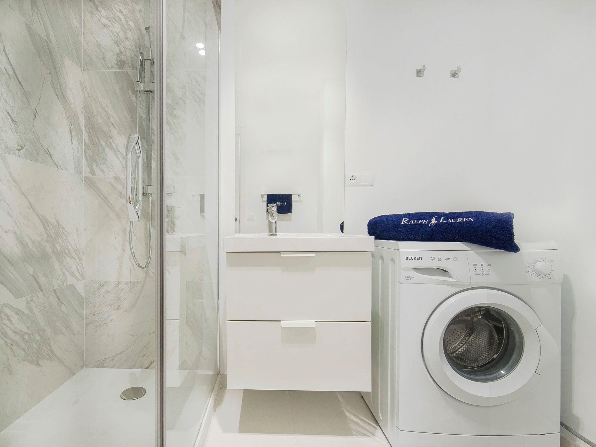 Inside, there is a comfortable atmosphere, with a smart layout consisting of a cosy living room and a fully equipped kitchen equipped with a coffee machine, dishwasher and kettle. The flat houses two bedrooms; one with a double bed and one with bunk beds, ideal for families or small groups of up to four people. The private bathroom, equipped with a shower, sink and toilet, provides all the necessary comfort. For your convenience, the flat is equipped with air conditioning throughout and a washing machine for sole use.