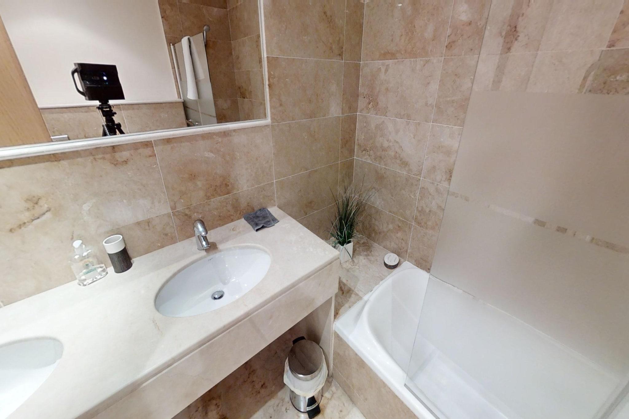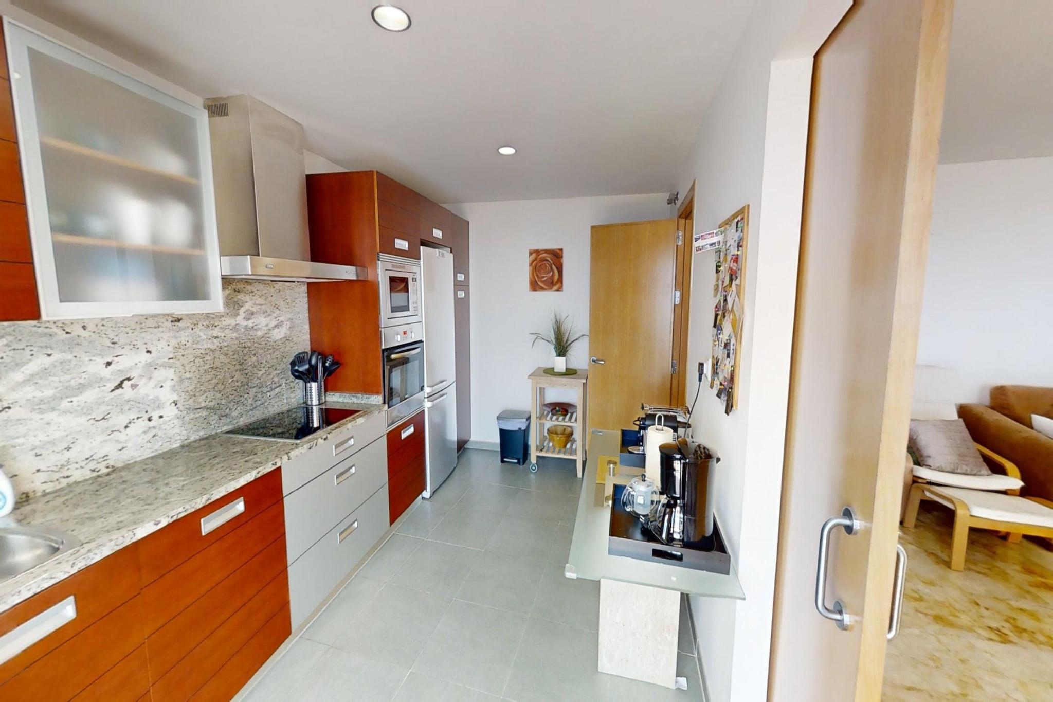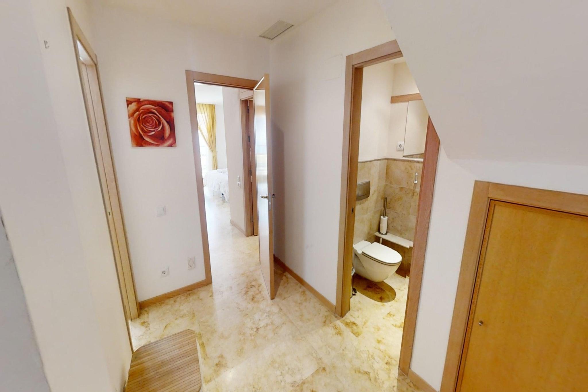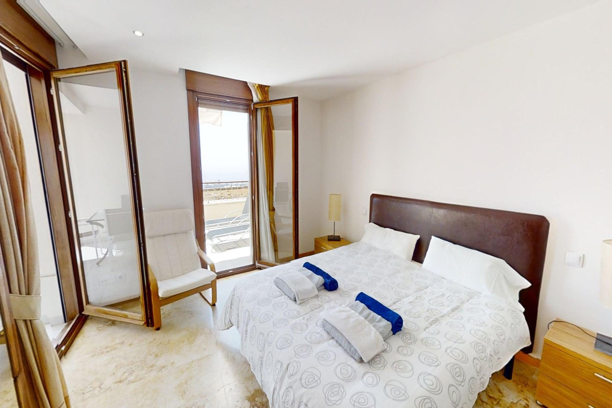 Nyd en afslappende ferie ved kysten i denne lyse og rummelige lejlighed i Marbella, der er gennemtænkt designet til at rumme op til 4 gæster. Med store, solbeskinnede terrasser med udsigt over Middelhavet tilbyder dette ophold den ideelle balance mellem indendørs komfort og udendørs fritid – perfekt for familier eller små grupper, der søger en afslappet ferie ved havet. Indvendigt har lejligheden to komfortable soveværelser, to fuldt udstyrede moderne badeværelser og et separat toilet, hvilket sikrer privatliv og bekvemmelighed for alle gæster. Opholdsstuen åbner op til et indbydende fællesrum med komfortable siddepladser og direkte adgang til terrassen, mens det veludstyrede køkken er udstyret med alle nødvendige apparater, så du nemt kan tilberede måltider under dit ophold. Aircondition i hele lejligheden holder det indendørs miljø behageligt køligt, selv i de varmere sommermåneder. Træd ud og nyd de private terrasser – perfekte til morgenkaffe, udendørs spisning eller blot for at nyde havbrisen. Gæsterne har også adgang til en fælles swimmingpool i boligkomplekset, der er ideel til at køle af efter en dag på stranden. Der er også parkering og Wi-Fi til rådighed for at sikre en behagelig og problemfri ferieoplevelse. Området omkring Marbellas østkyst, herunder det nærliggende Elviria, er kendt for sine smukke sandstrande, livlige strandklubber, naturskønne vandrestier og vandaktiviteter såsom sejlads og paddleboarding. Lokale restauranter, caféer og golfbaner ligger alle inden for rækkevidde, mens Marbellas historiske gamle bydel byder på charmerende gader, boutique-shopping og et pulserende natteliv kun en kort køretur væk.